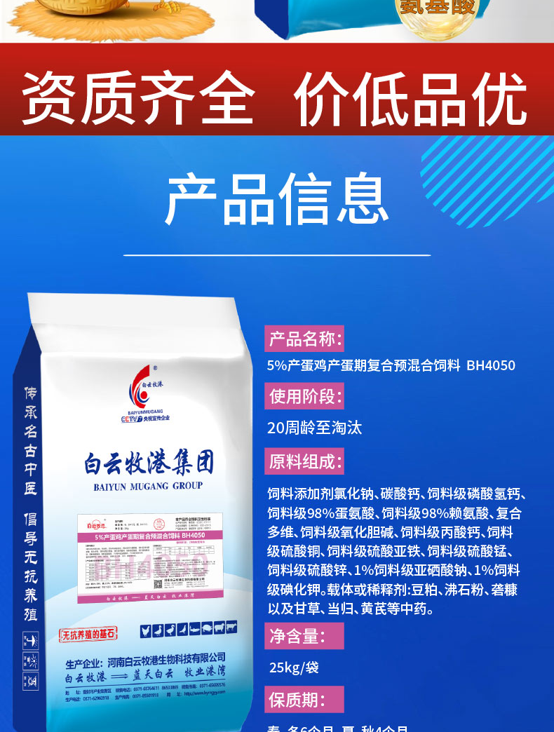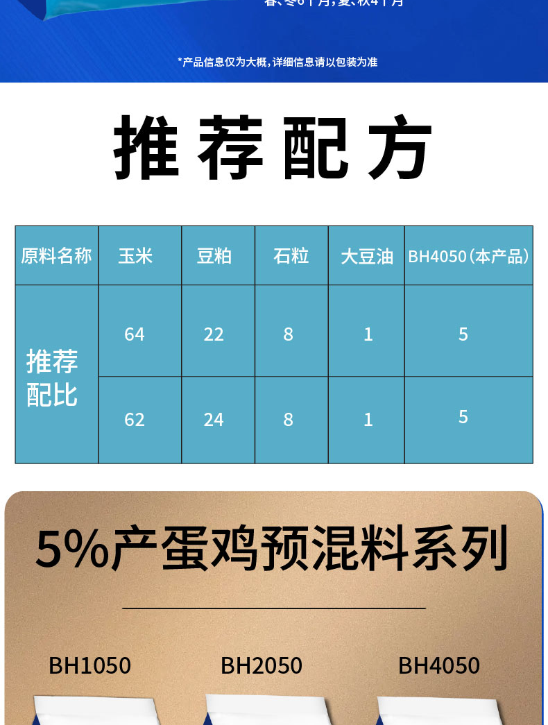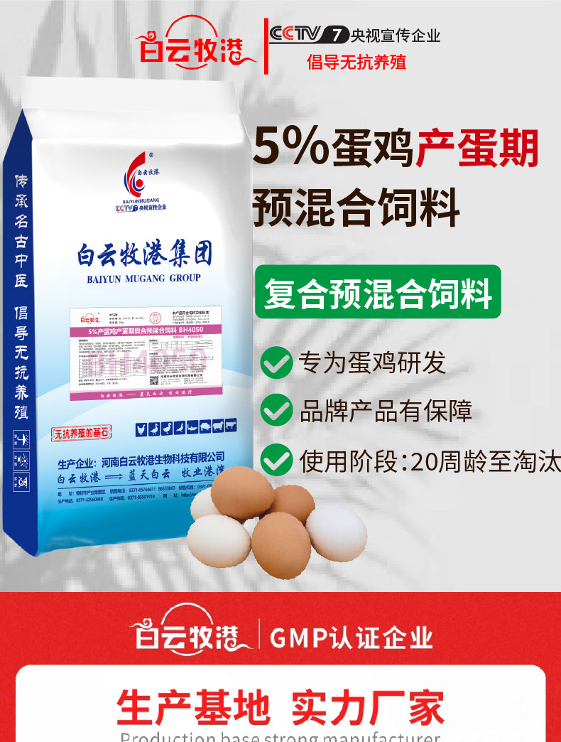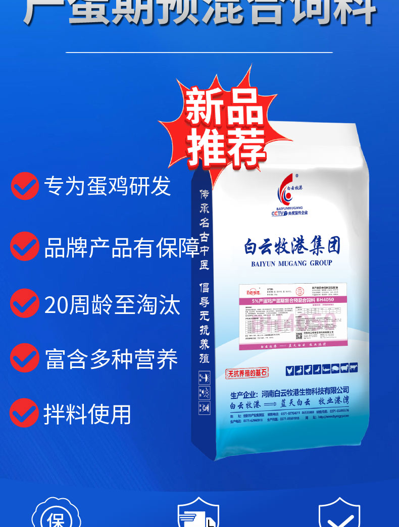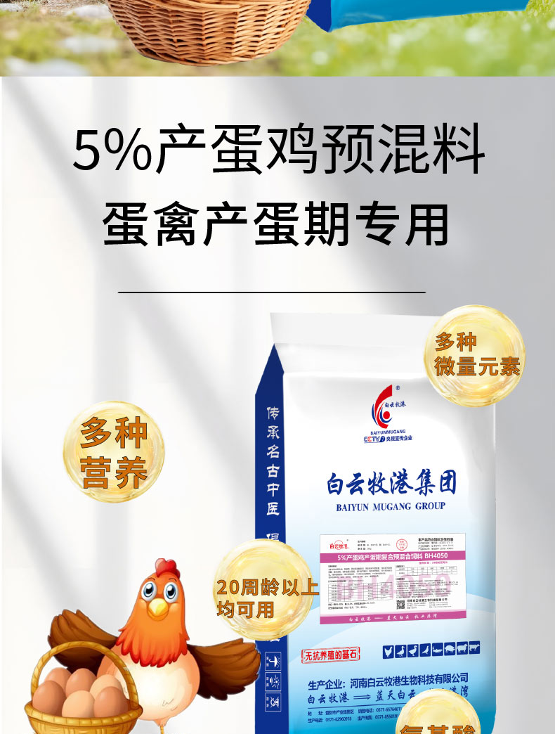 Baiyun Mugang 5% layer hen premix peak egg production period chicken feed layer hen laying period chicken feed backup chicken egg laying period 1 bag BH2050 (applicable stage 7-20 weeks old)