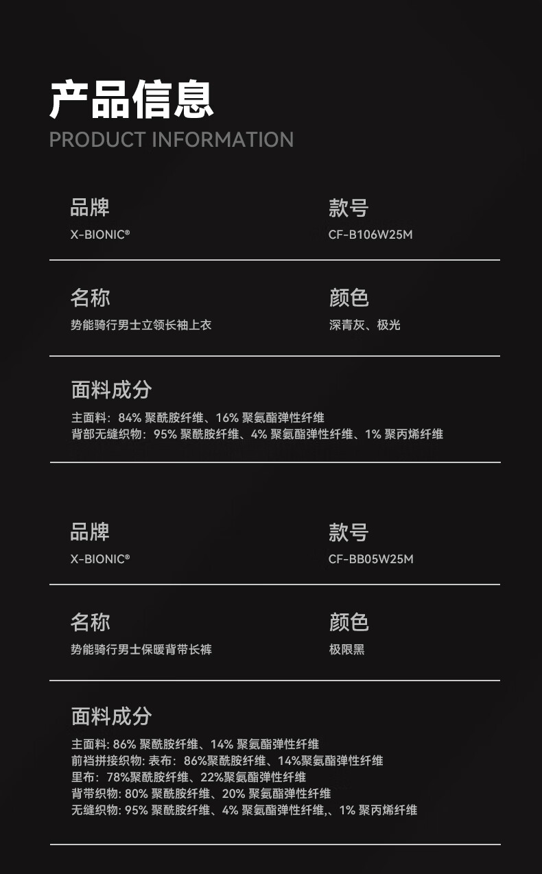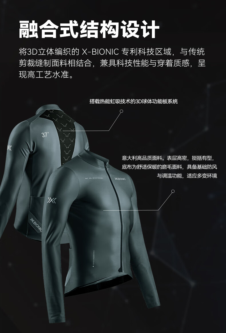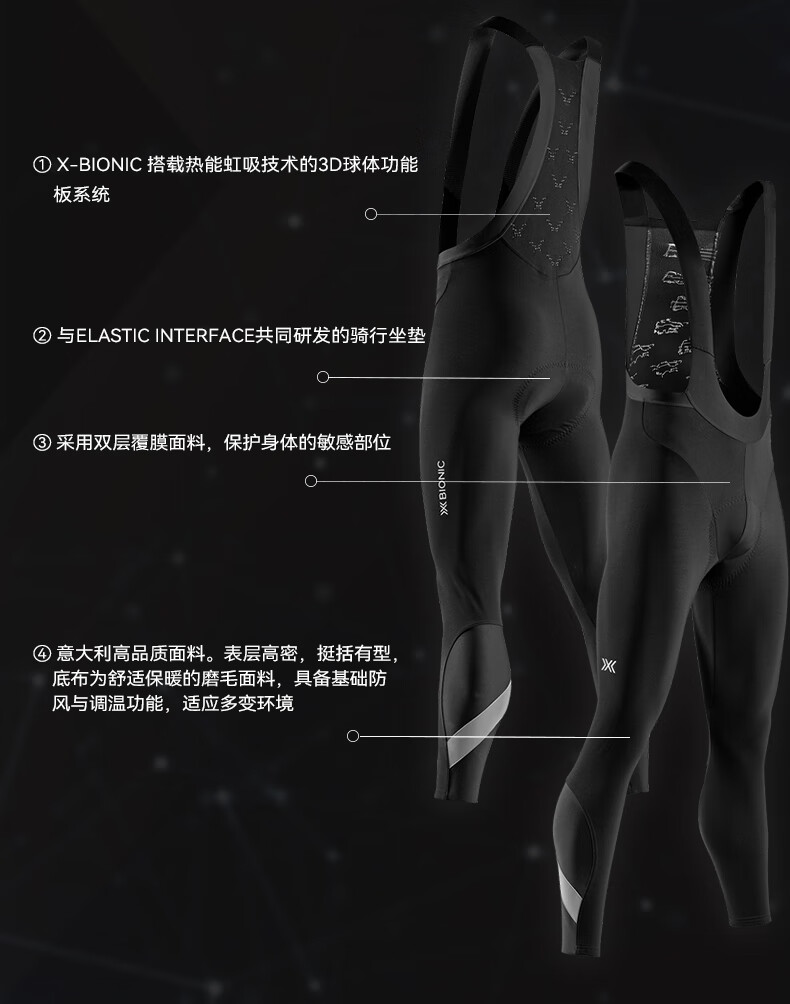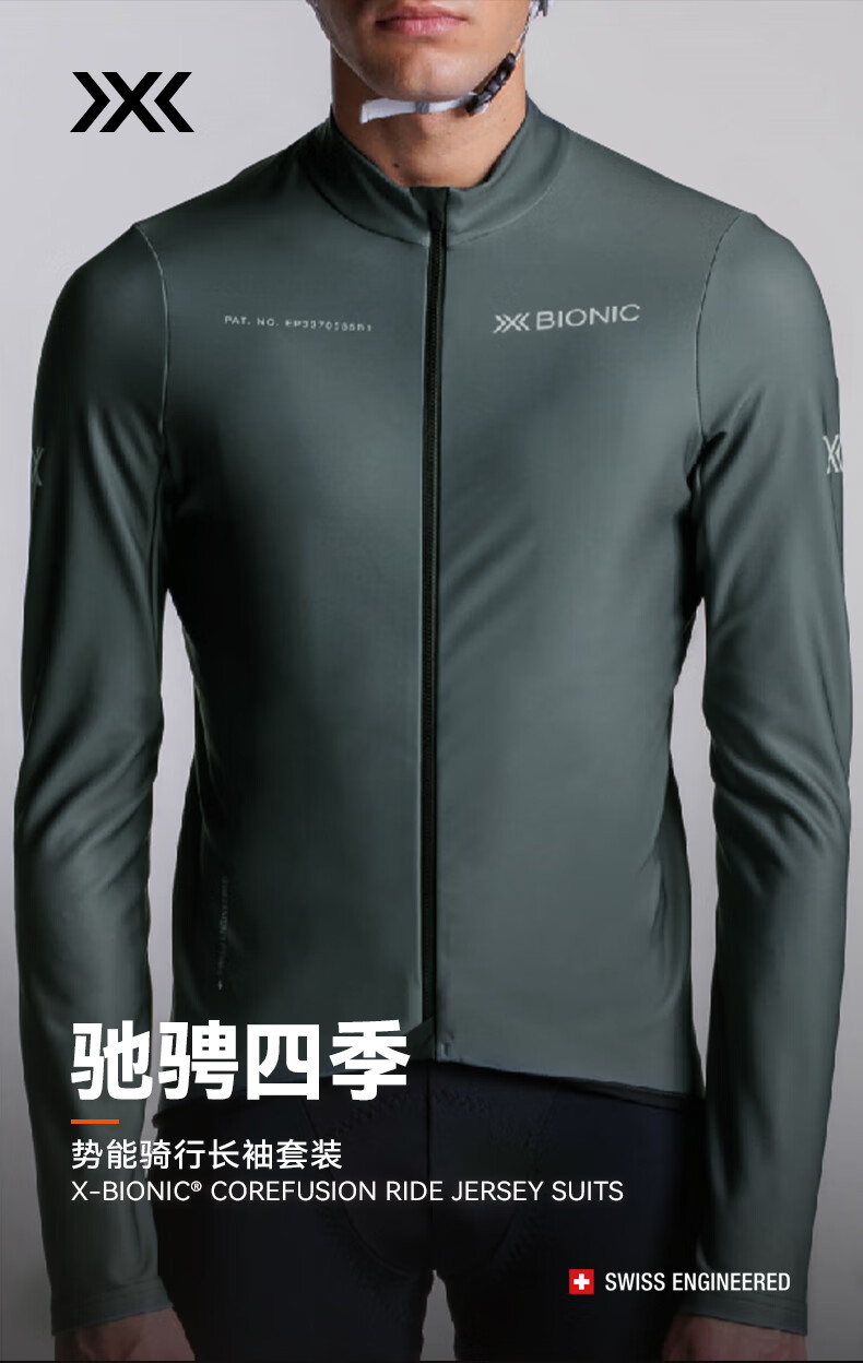 XBIONIC potential energy cycling men's stand-up collar long-sleeved top warm suspender trousers sweat-wicking breathable road cycling jersey long-sleeved top/dark gray 2XL