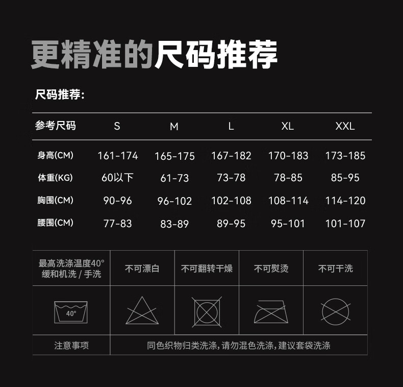 China (cm) 165 / 88-90 170 / 96-98 175 / 108-110 180 / 118-122 185 / 126-130