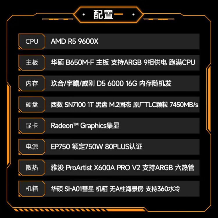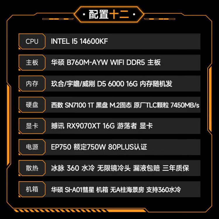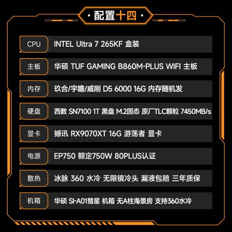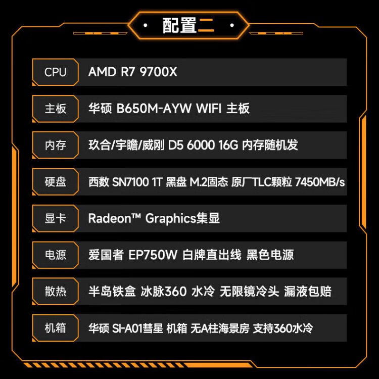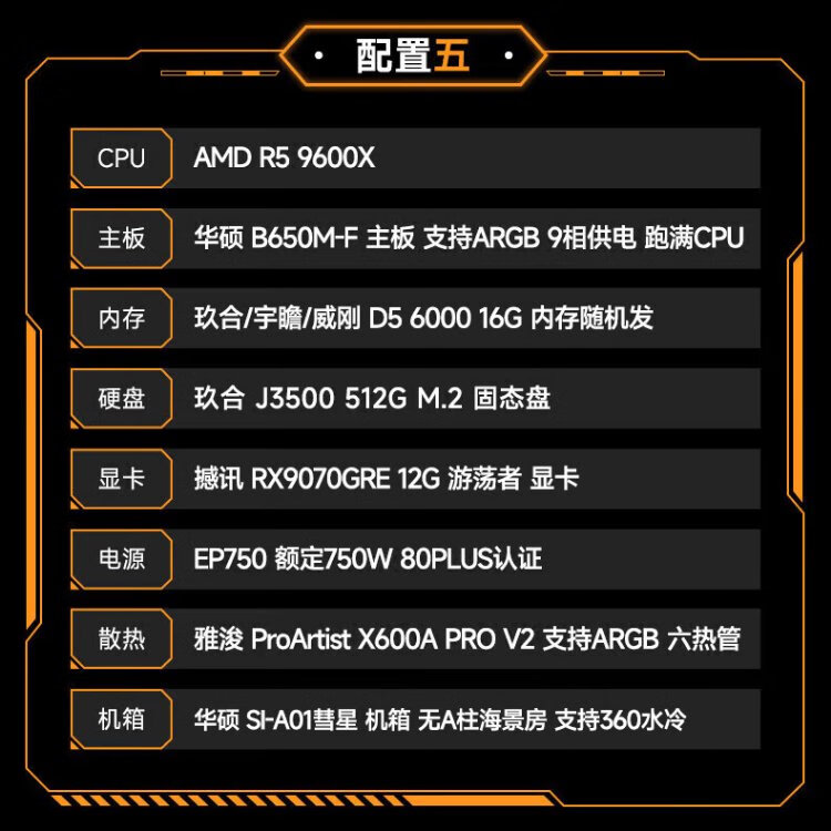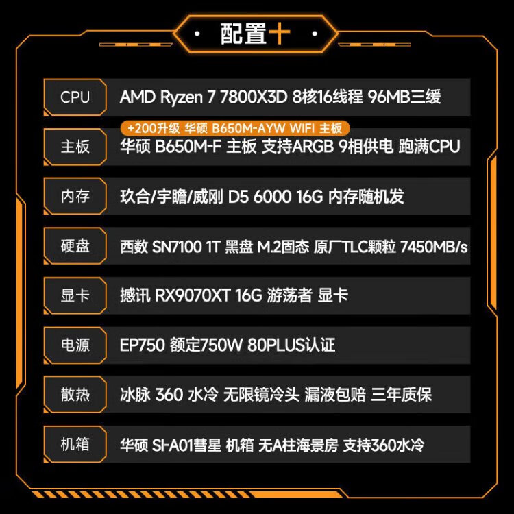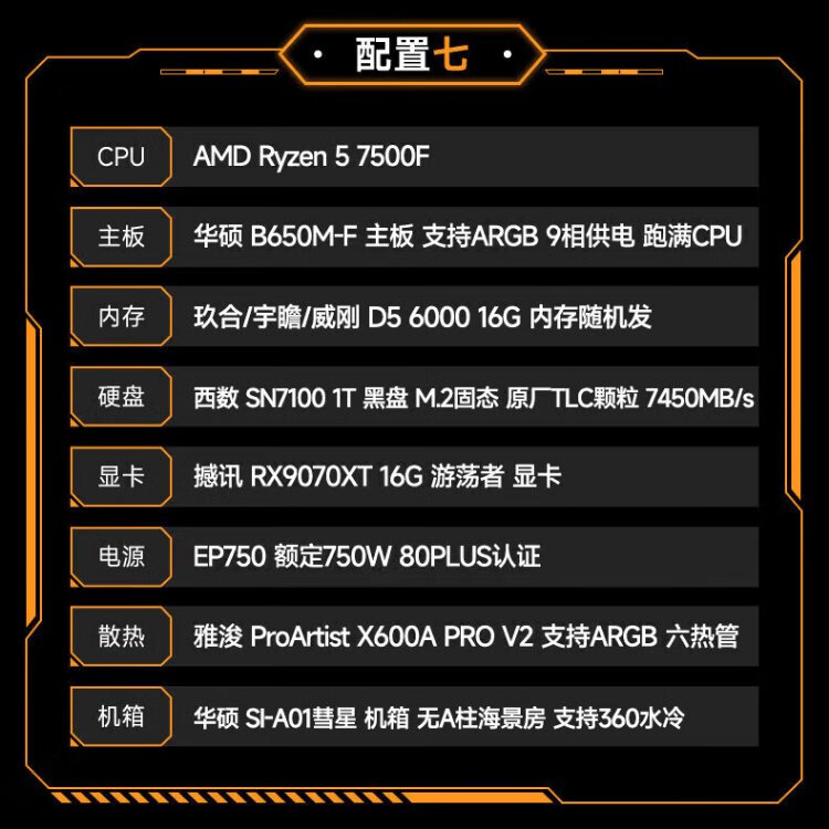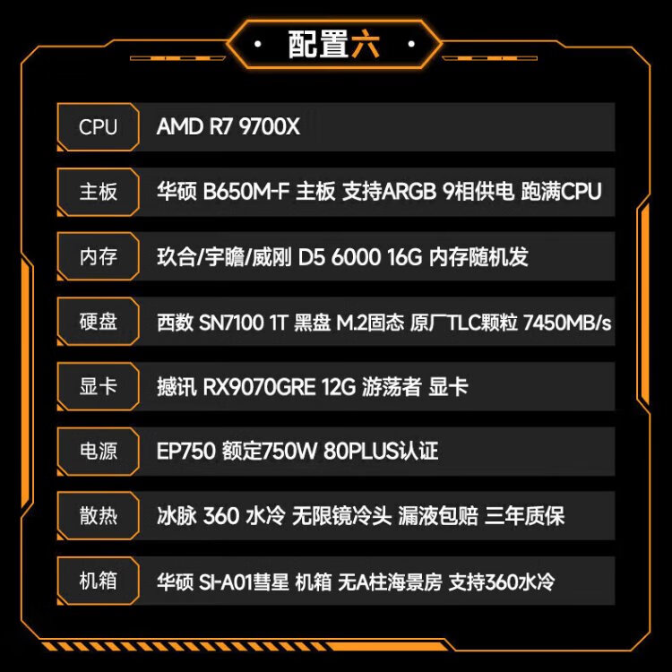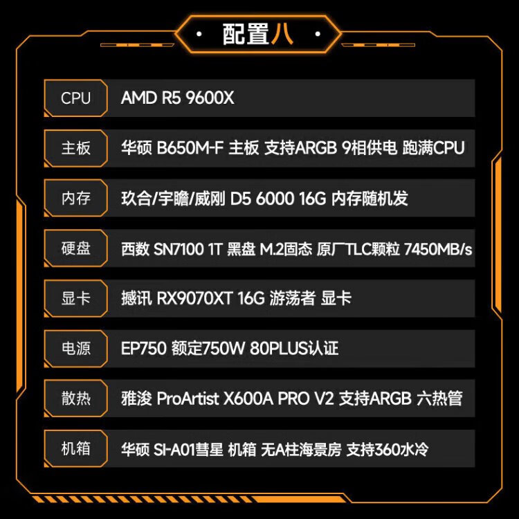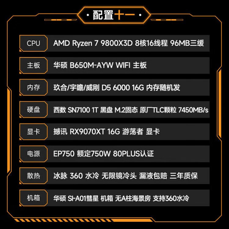 ASUS AMD 9070XT/9600X/9700X/7800X3D/9800X3D ROG ammunition depot TUF assembly computer e-sports game live broadcast AI rendering host DIY complete machine configuration seven 7500F+9070XT
