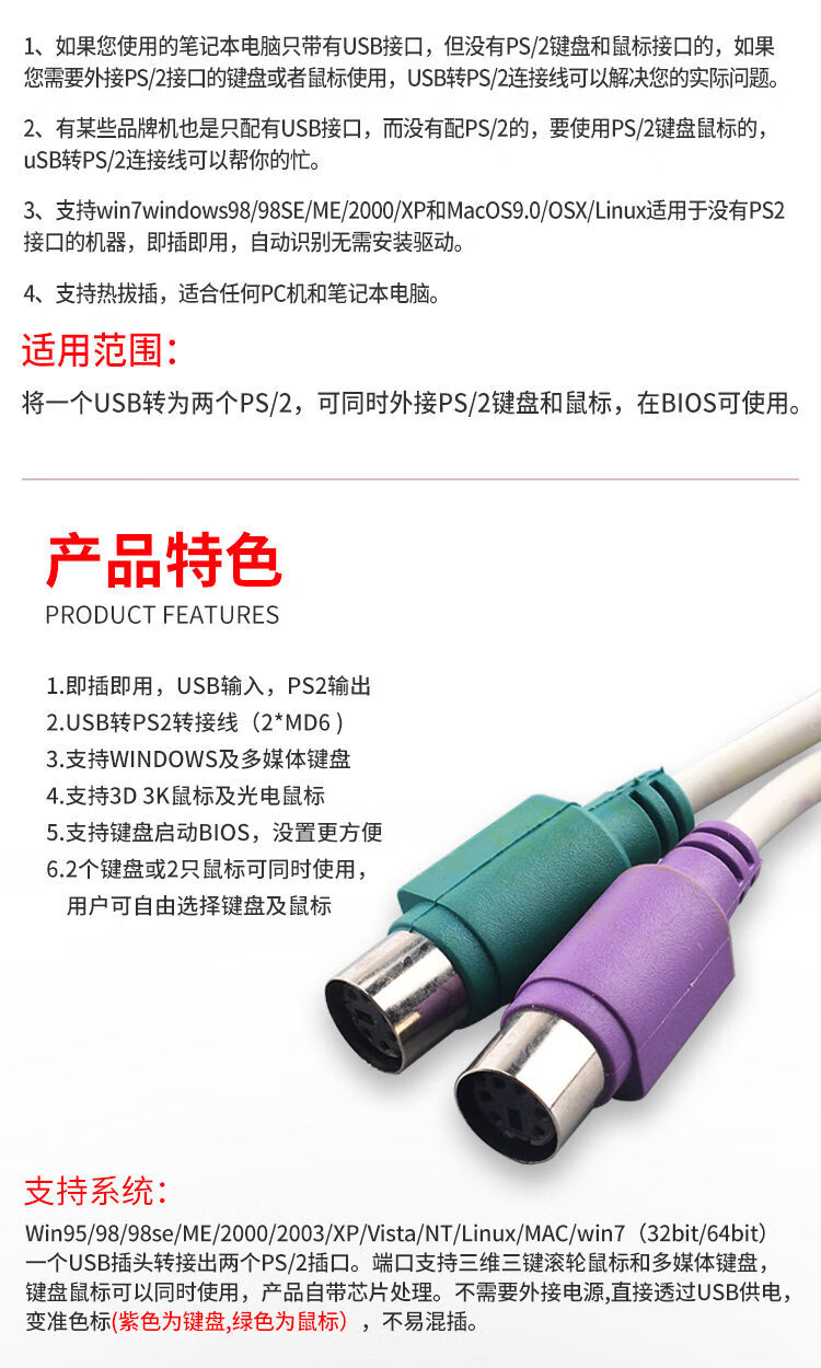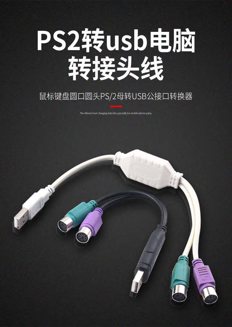 PS2 to usb computer adapter cable mouse keyboard round port round head ps/2 female to USB male interface converter blue USB to PS2 female head driver-free