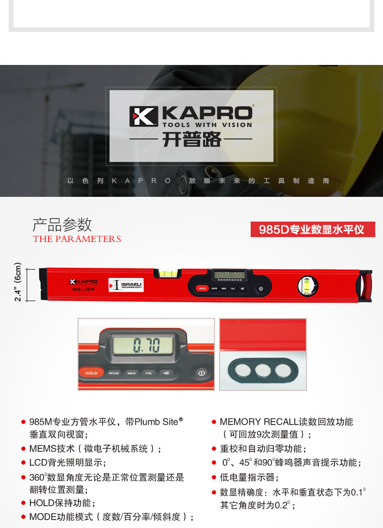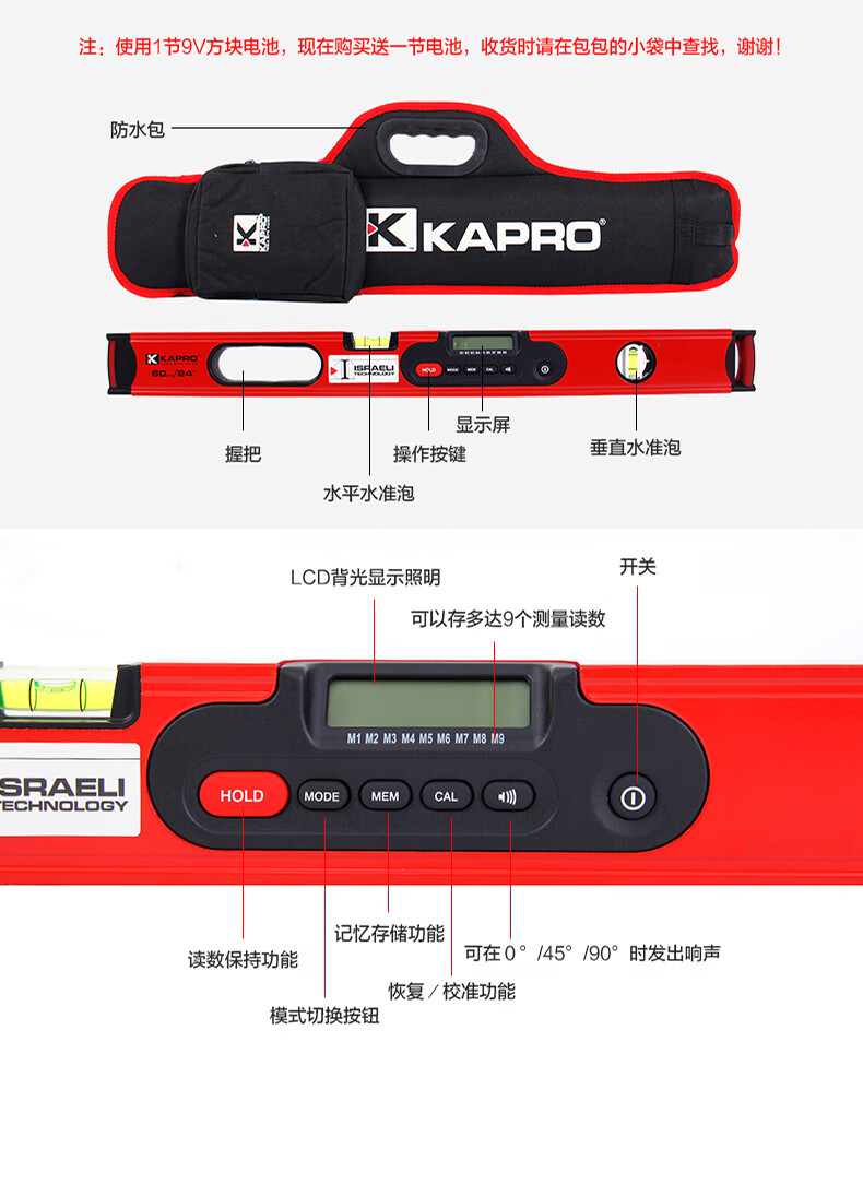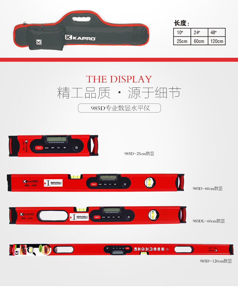 KAPRO Israel KAPRO Cape Road digital display level high-precision level heavy-duty with tape bag 985D-60cm (comes with waterproof bag and battery) 0.5mm/m The actual product shall prevail 0-120 Aluminum alloy