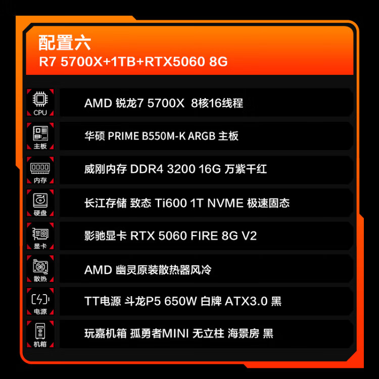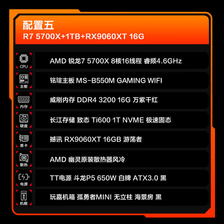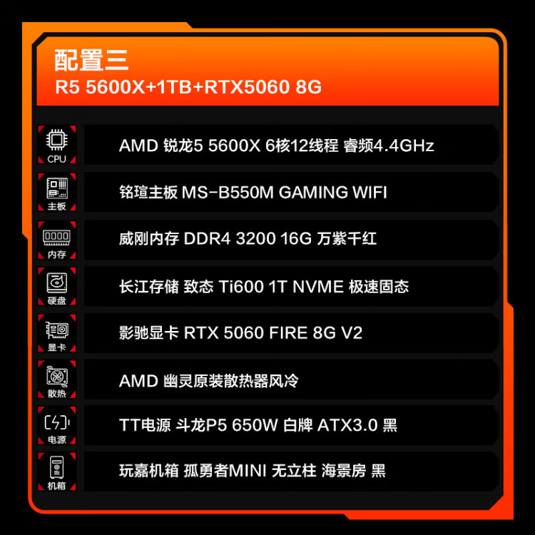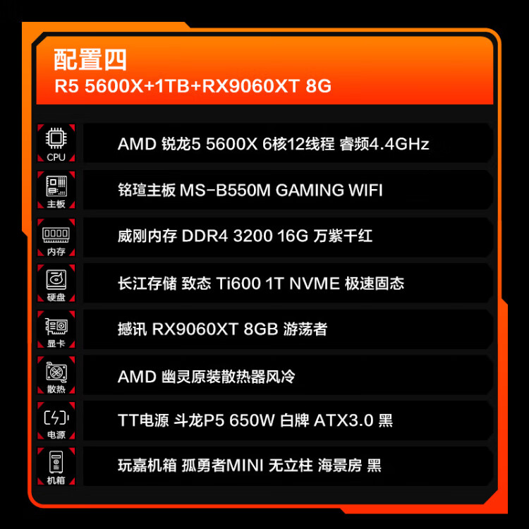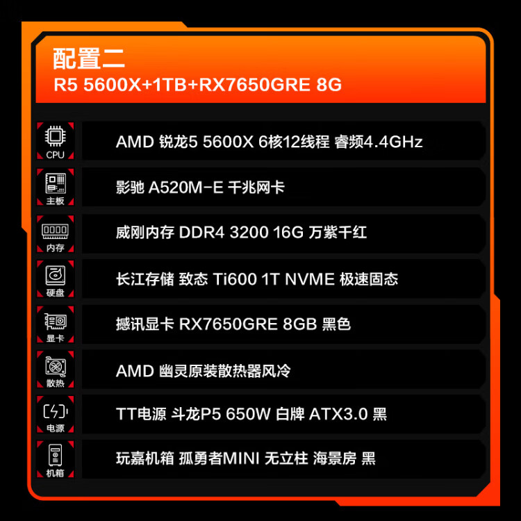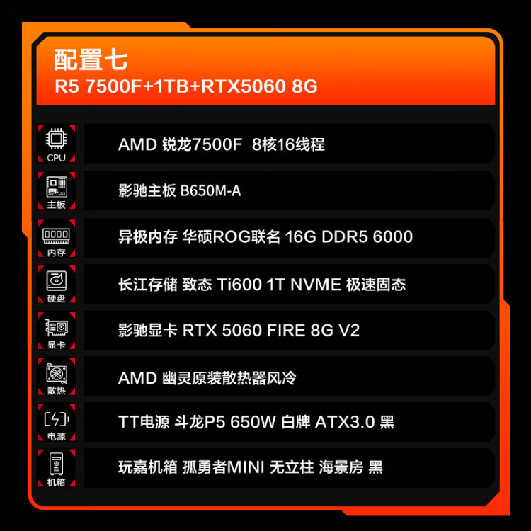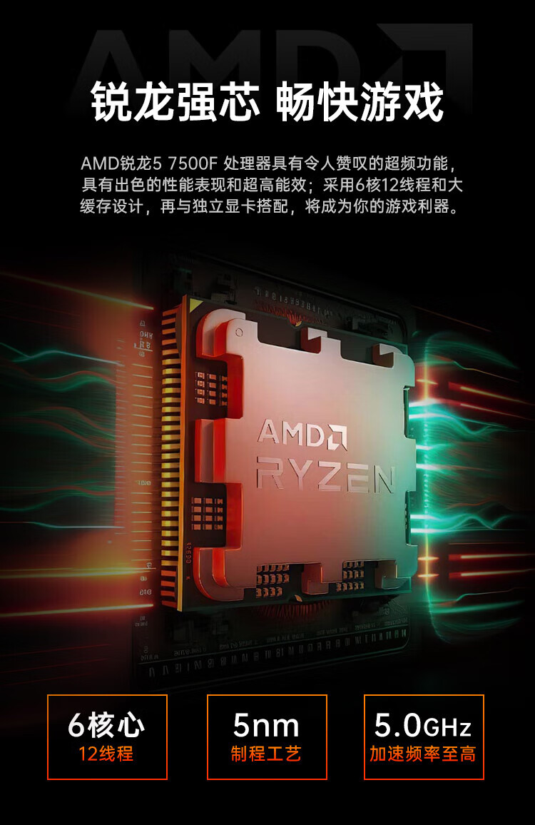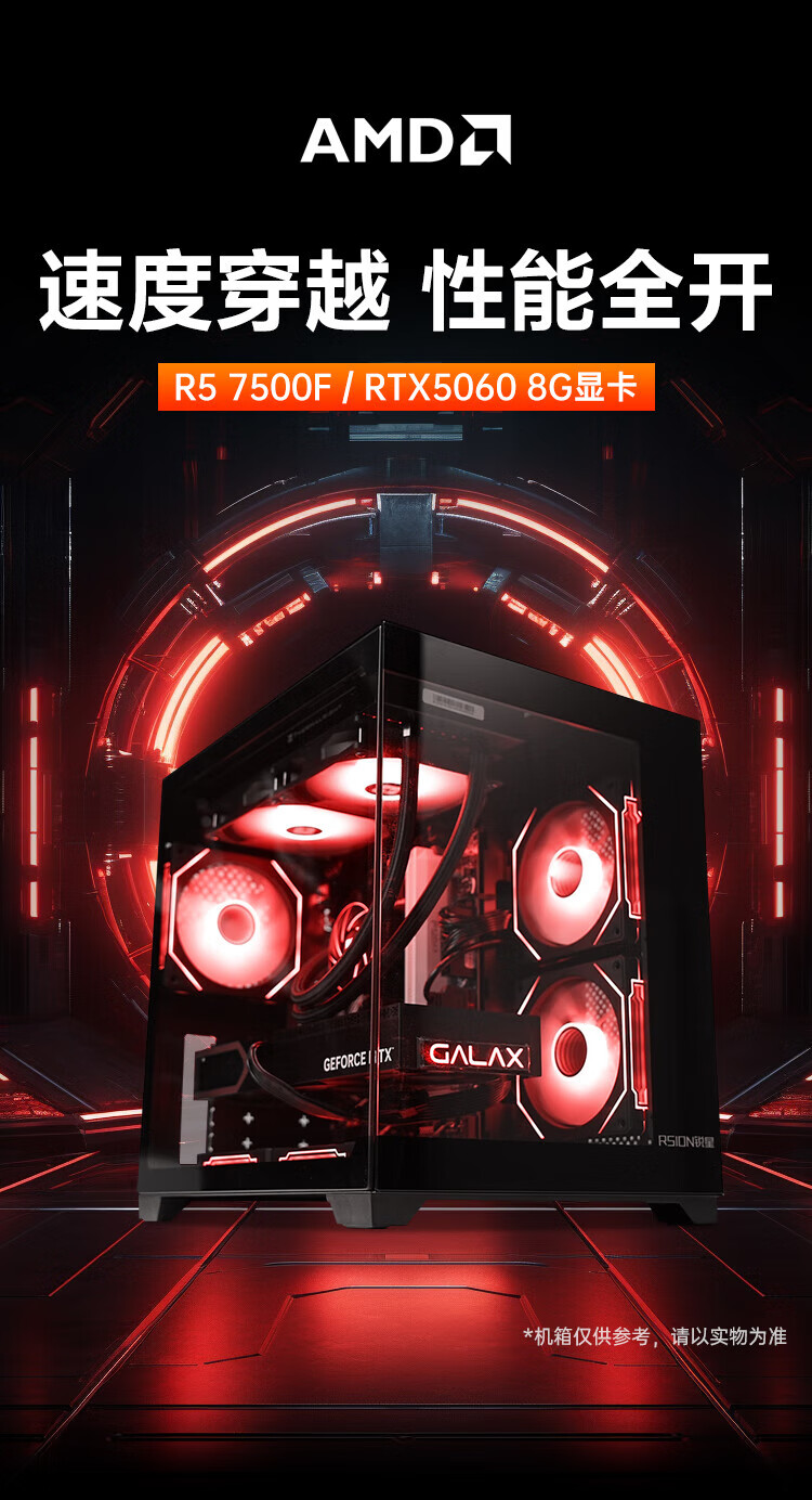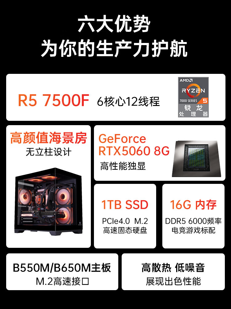 ShakeXun 7500F 5600X host/5060/4060/7650gre graphics card AMD game e-sports design rendering live broadcast desktop computer DIY assembly machine complete machine sea view room configuration one 5600+7650gre