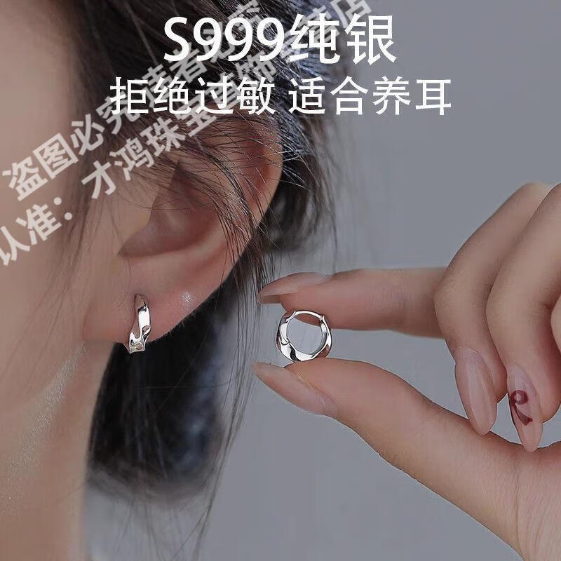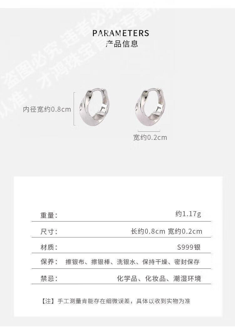 KZD Old Phoenix 999 Ear Hole Mobius Geometric Hoop Earrings Earrings Niche Silver Earrings 1 pair of storage box sterling silver earrings