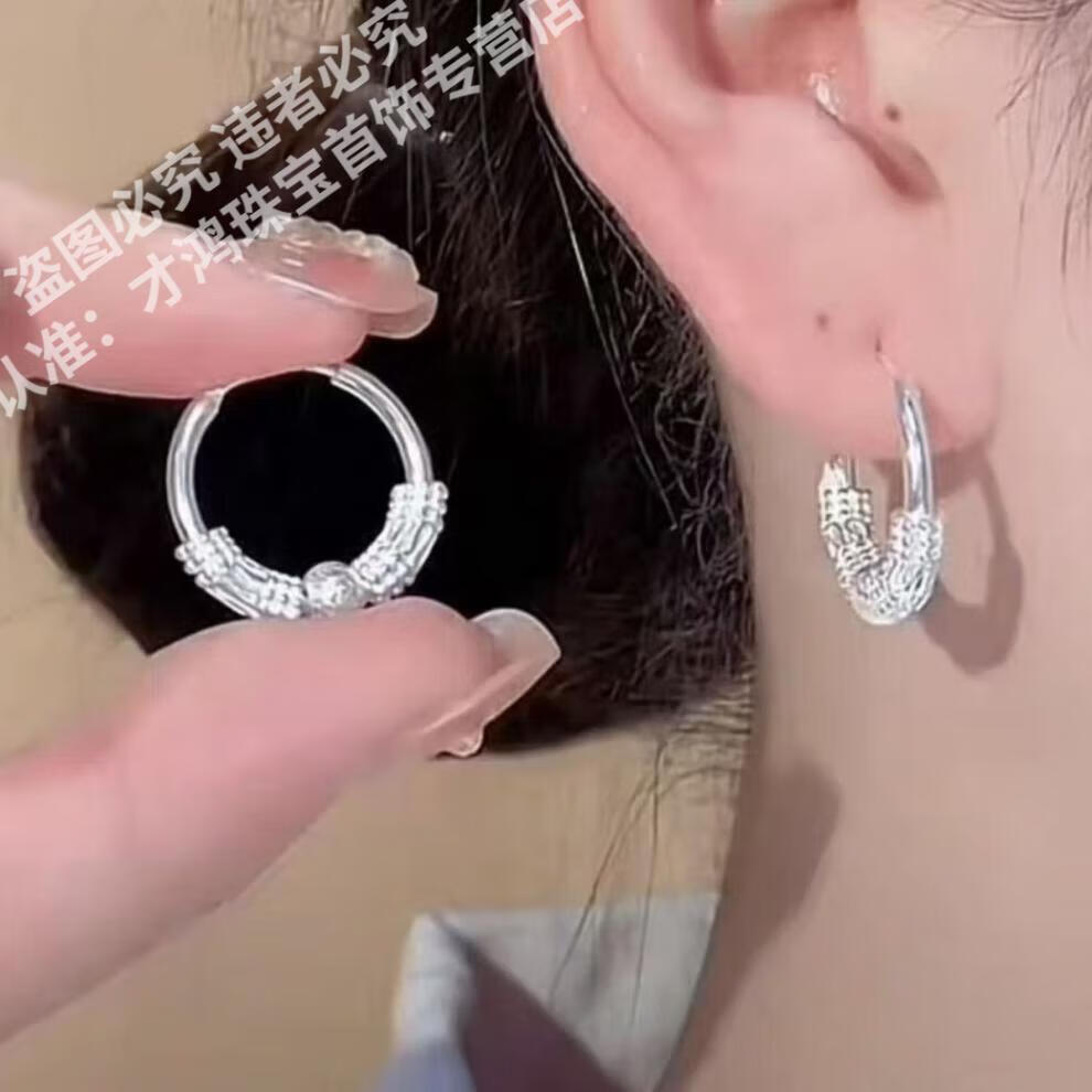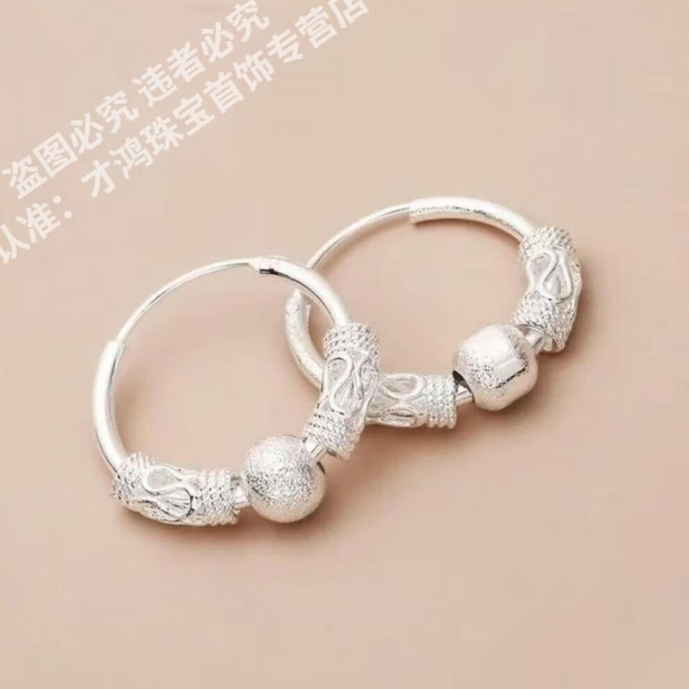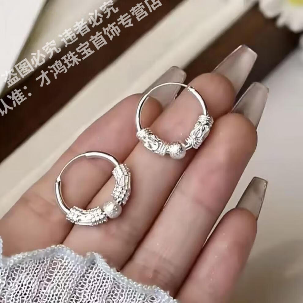 KZD Old Phoenix 999 pure silver earrings niche design ear buckles light luxury earrings earrings unpopular sterling silver pair sterling silver transfer bead earrings