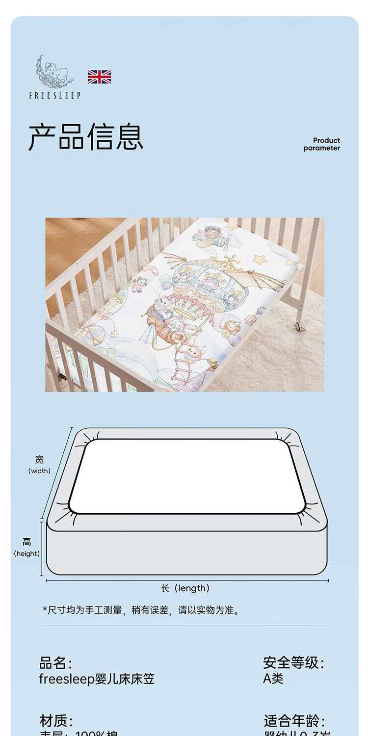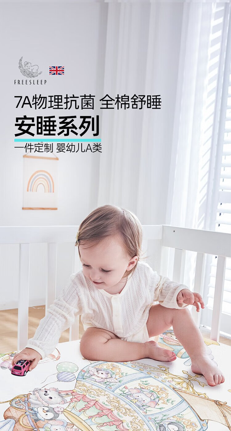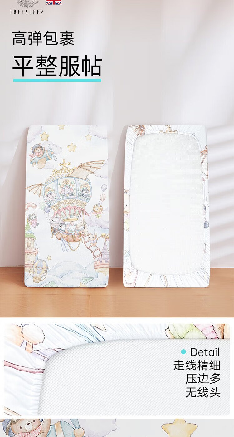FREESLEEP crib fitted sheet pure cotton Class A diaper sheet mattress cover spliced waterproof children's baby special autumn and winter customized Star Astronaut-100% cotton 7A antibacterial gift box 105*60