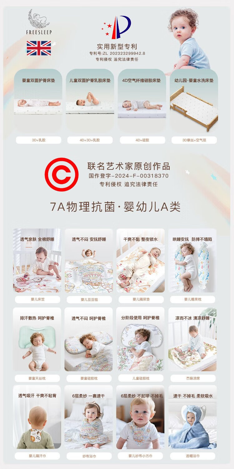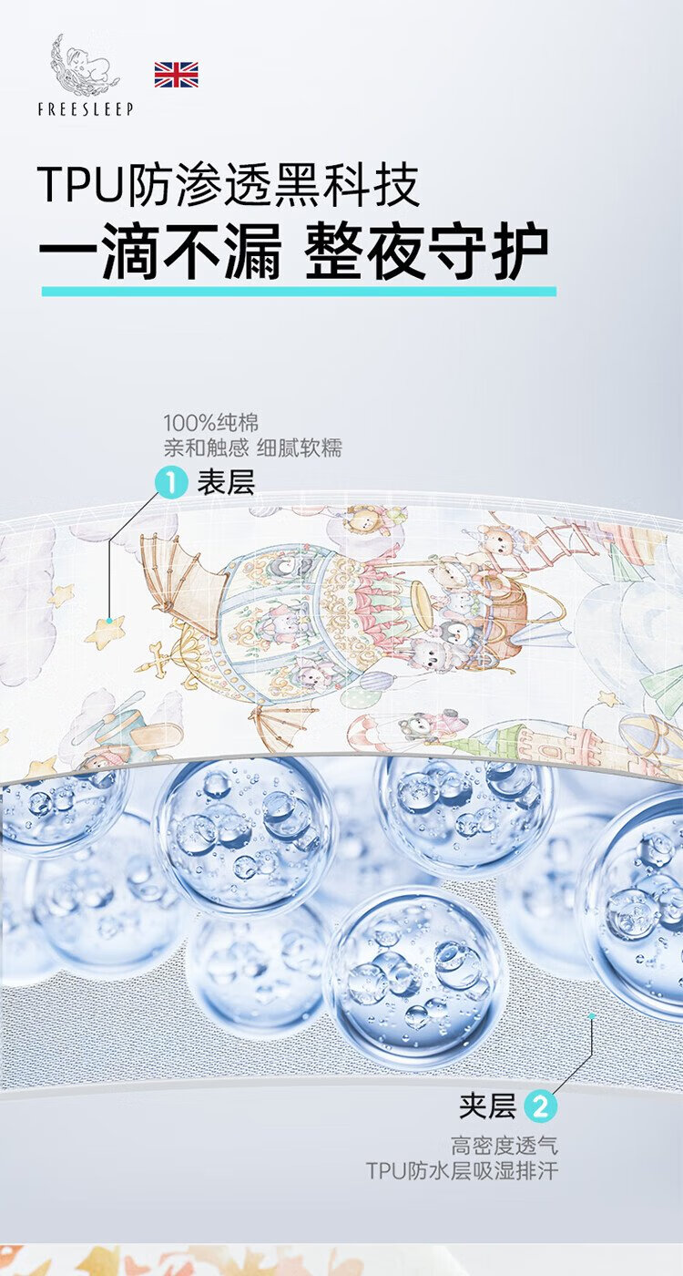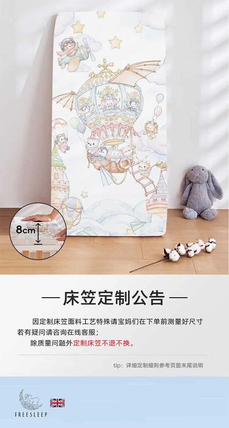 FREESLEEP crib fitted sheet pure cotton Class A diaper sheet mattress cover spliced waterproof children's baby special autumn and winter customized Star Astronaut-100% cotton 7A antibacterial gift box 105*60