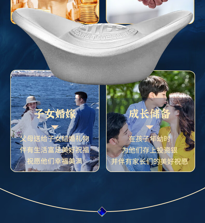 Bank of China Billion Gold Pure Silver 9999 Pure Silver Investment Silver Ingot Silver Bar Ingot Broken Silver Collection Stored Value Send Birthday Gift Boat Shape Lucky Treasure Ingot 20g Official Authentic