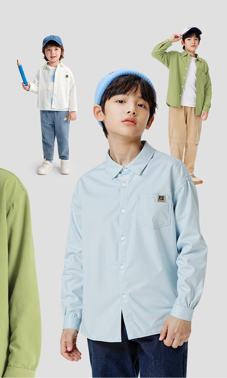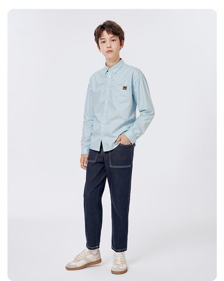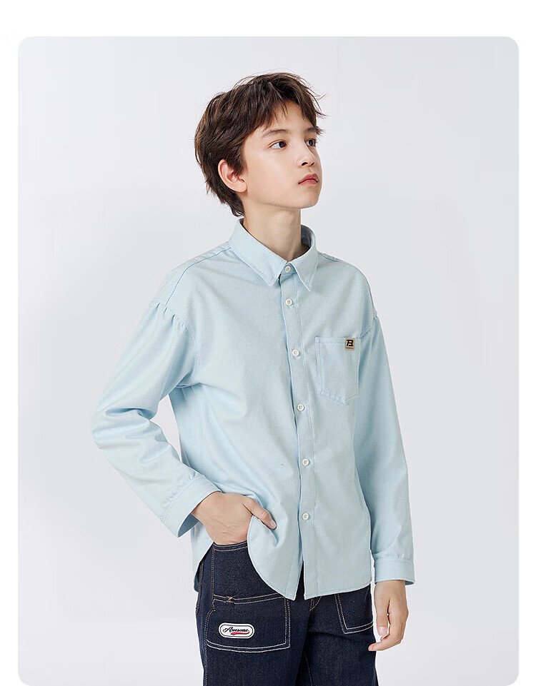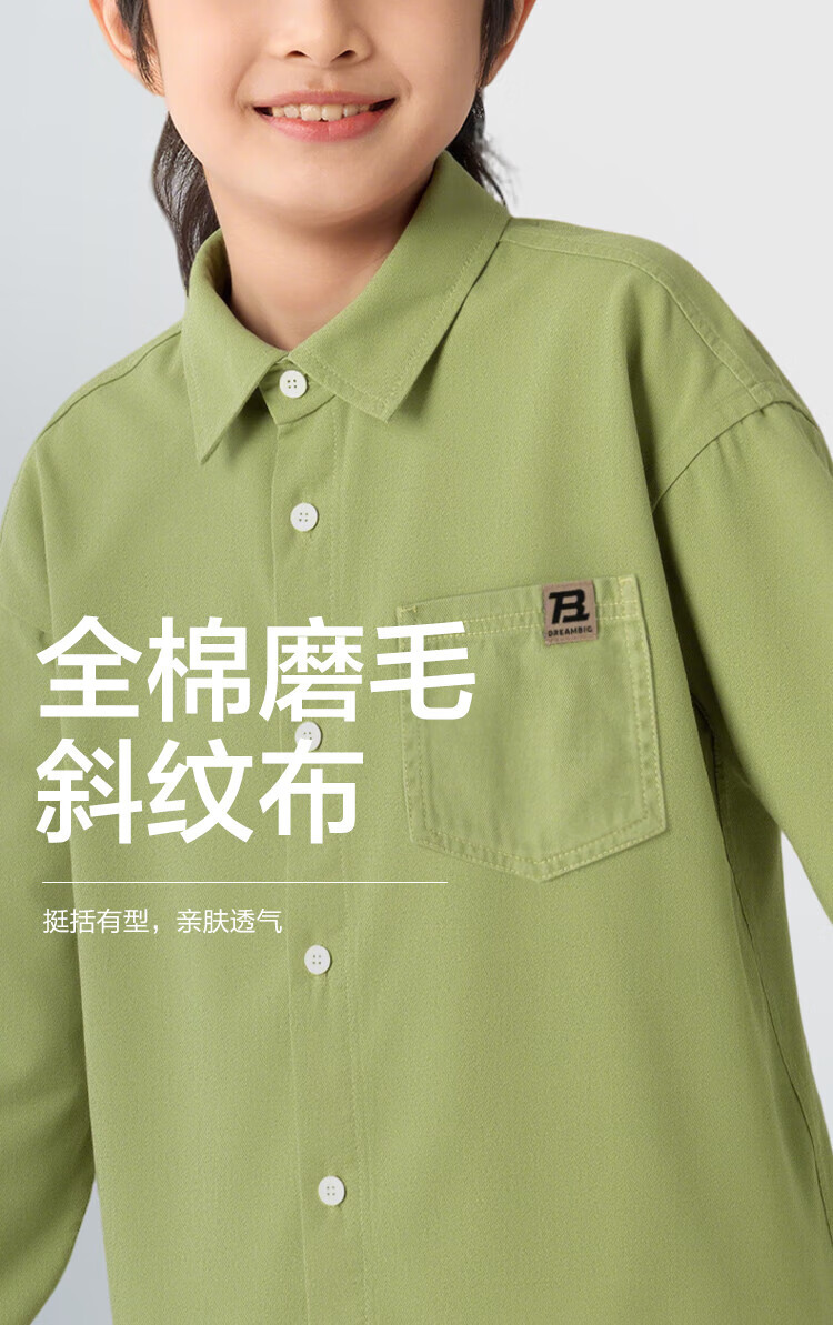 Balabala children's shirt boys long-sleeved parent-child wear 2025 new autumn wear fully brushed college style loose and versatile skin-friendly white 10101 90