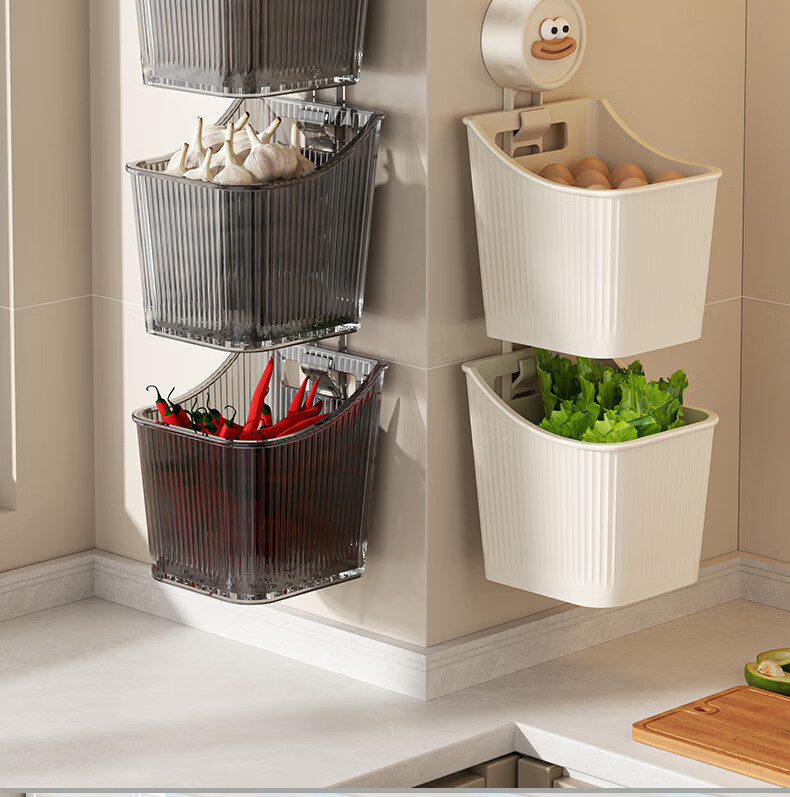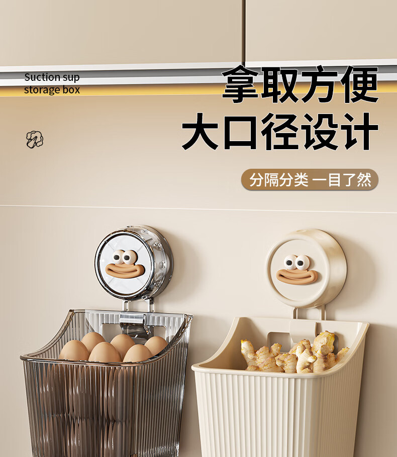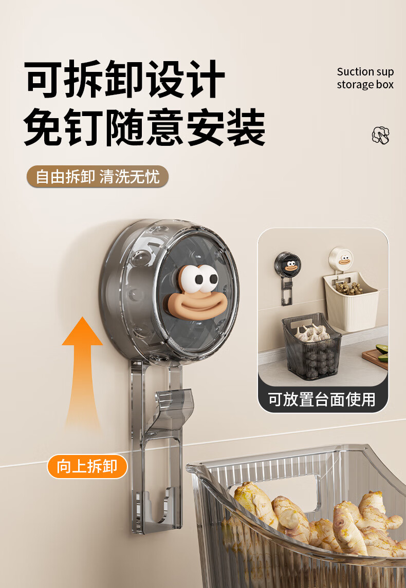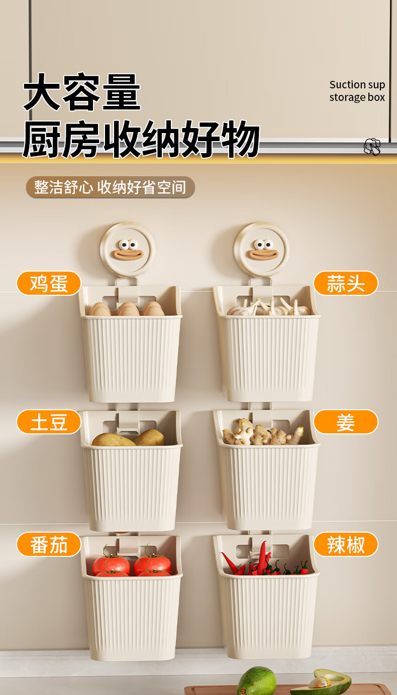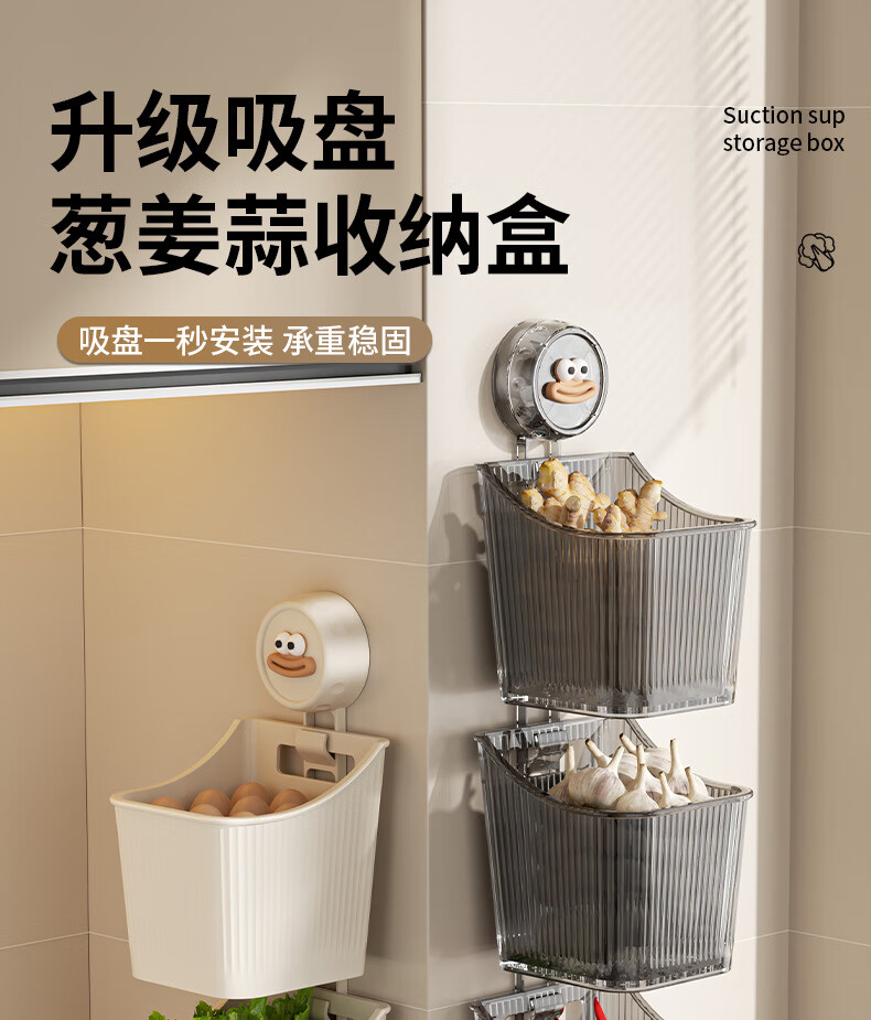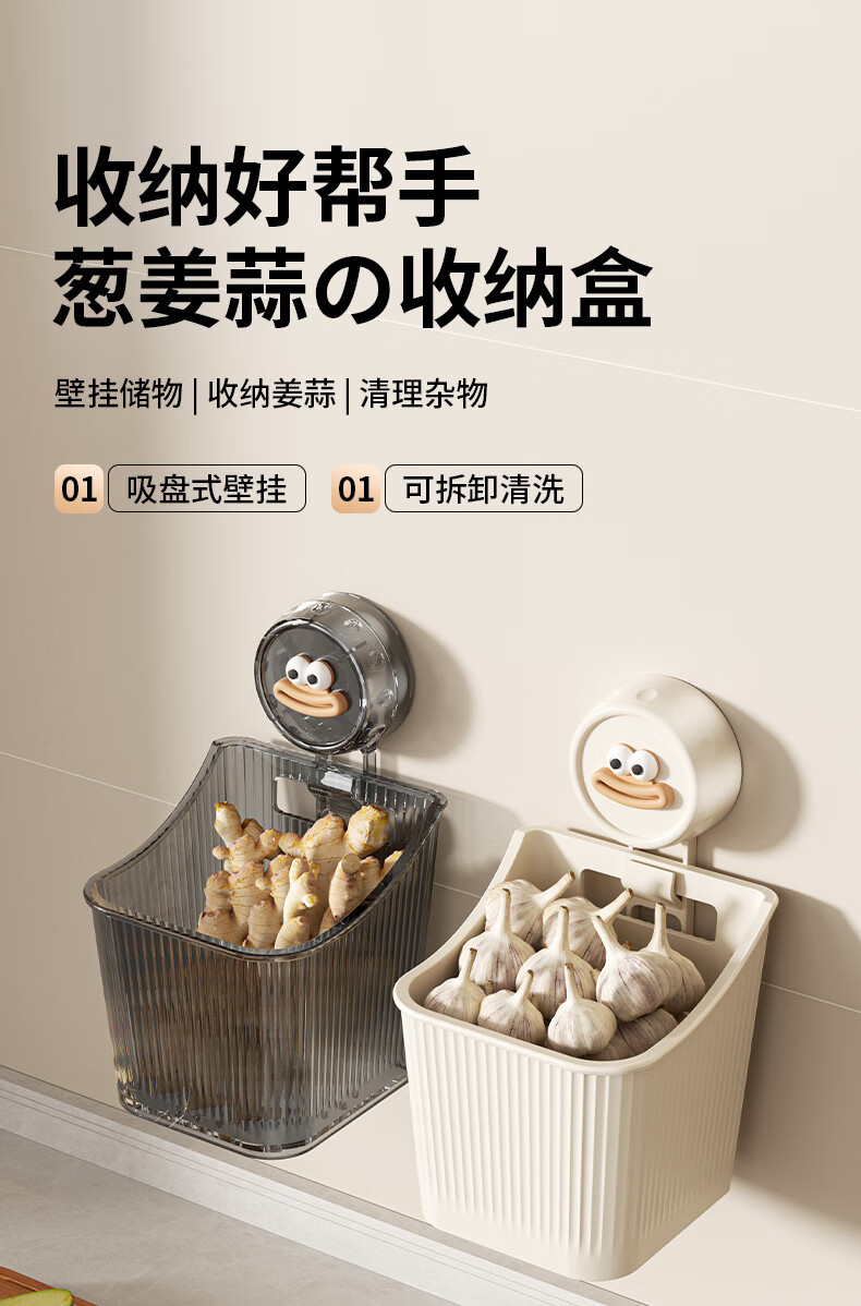 Danle suction cup onion ginger garlic storage box kitchen shelf storage box onion ginger garlic storage artifact hanging basket ginger garlic suction cup - milky white 1 layer