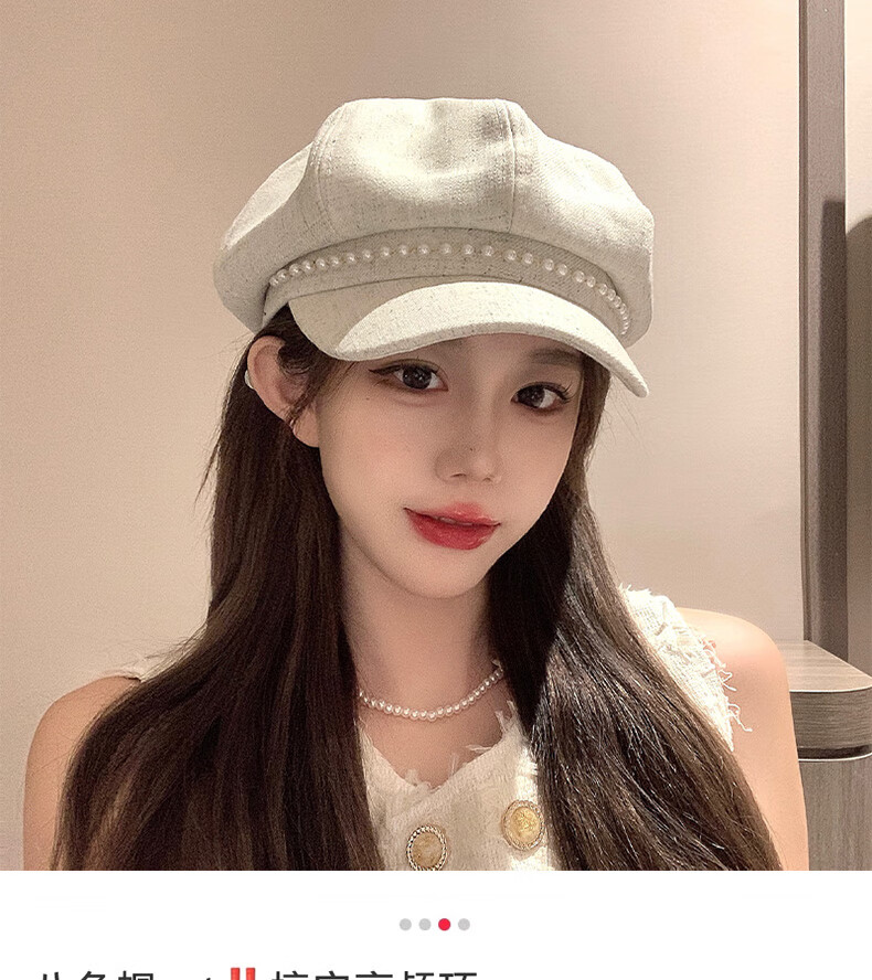 CGEDIAO off-white pearl beret women's 2025 new autumn and Korean version versatile face-showing small retro newsboy octagonal hat #1194-beige M (54-58c) can basically be worn