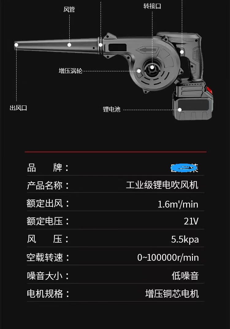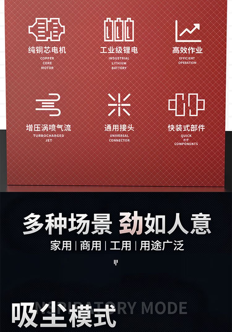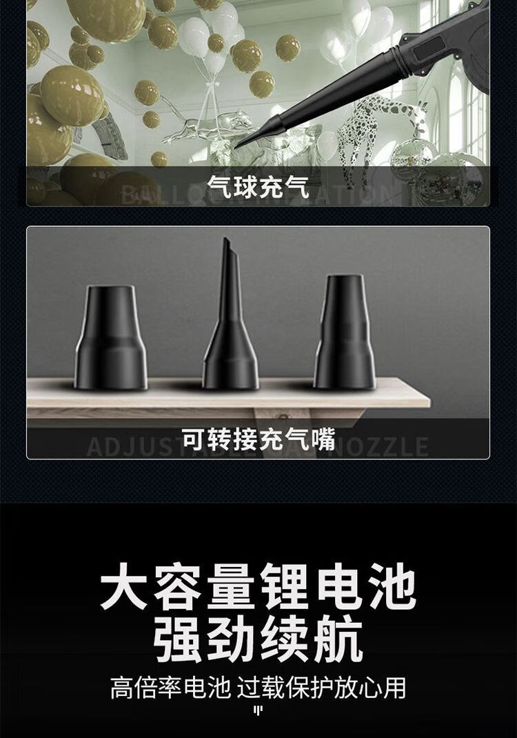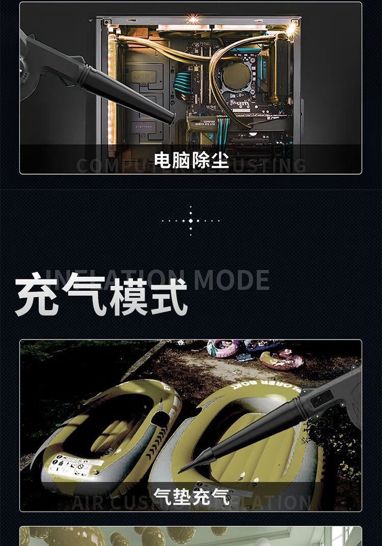Dual-purpose blower for blowing and sucking, rechargeable lithium hair dryer, high-power industrial computer, vehicle-mounted cleaning dust collector, dual-purpose blowing and sucking (luxury configuration), 10 cells, one battery, one charge