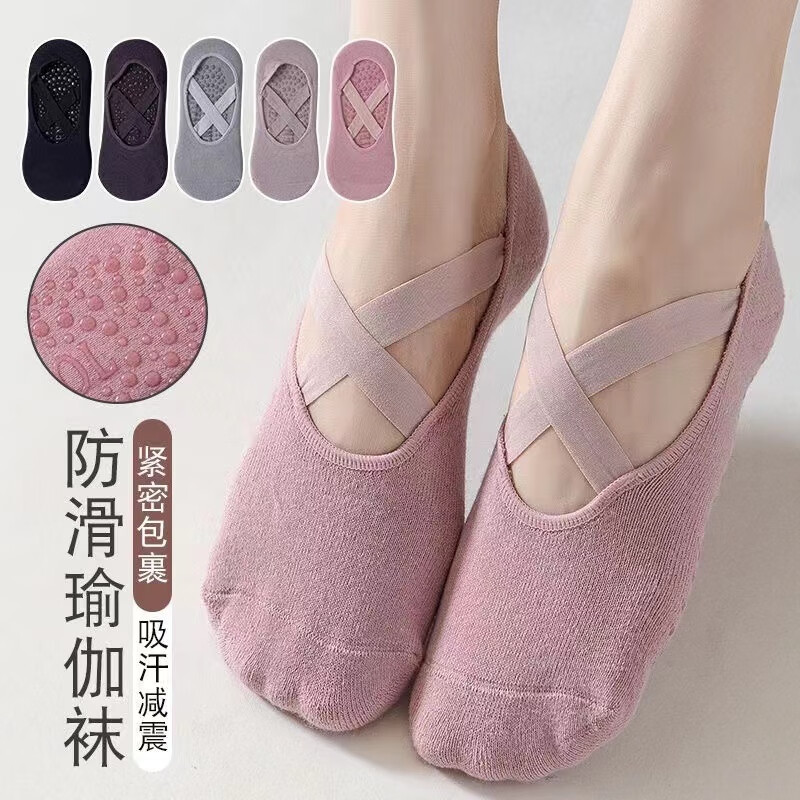 Yoga socks professional non-slip silicone non-slip soft bottom adult floor socks women's terry bottom Pilates dance socks slate gray + lotus root powder 2 pairs