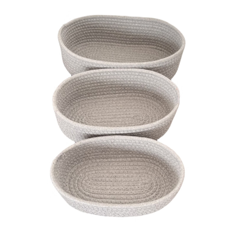 Finger willow storage box desktop miscellaneous storage basket cosmetics snack entrance hand-woven cotton storage basket boat-shaped basket gray small size 22*12*7cm