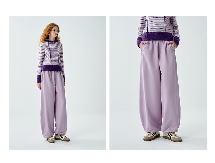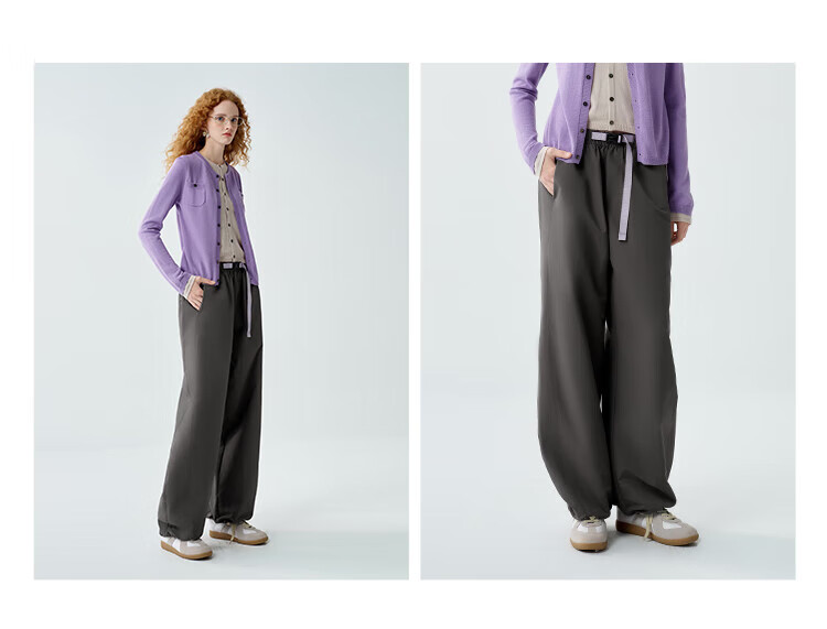PLAIN PEOPLE Light Commuting Retro Workwear Belt Leg Pants Loose Casual Pants Women 2025 Autumn New Style Light Purple M