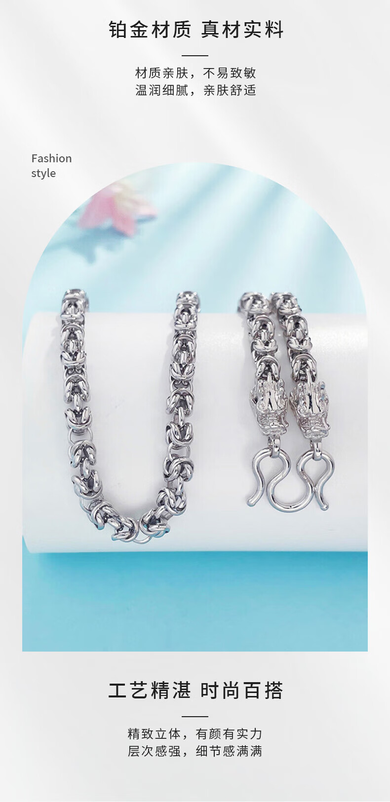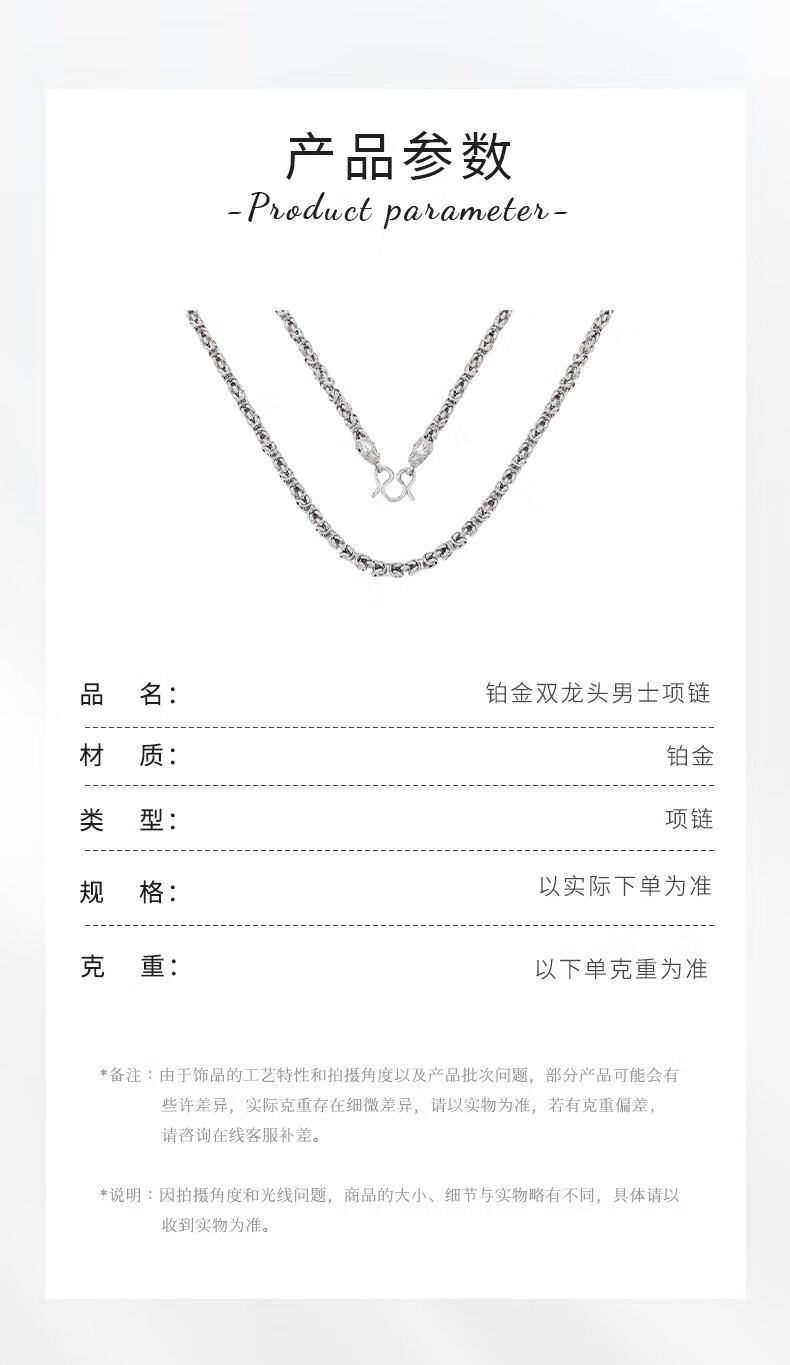 Laomiao platinum necklace men's pt950 double faucet platinum chain birthday gift for boyfriend and husband, about 47.07g - chain length 62cm