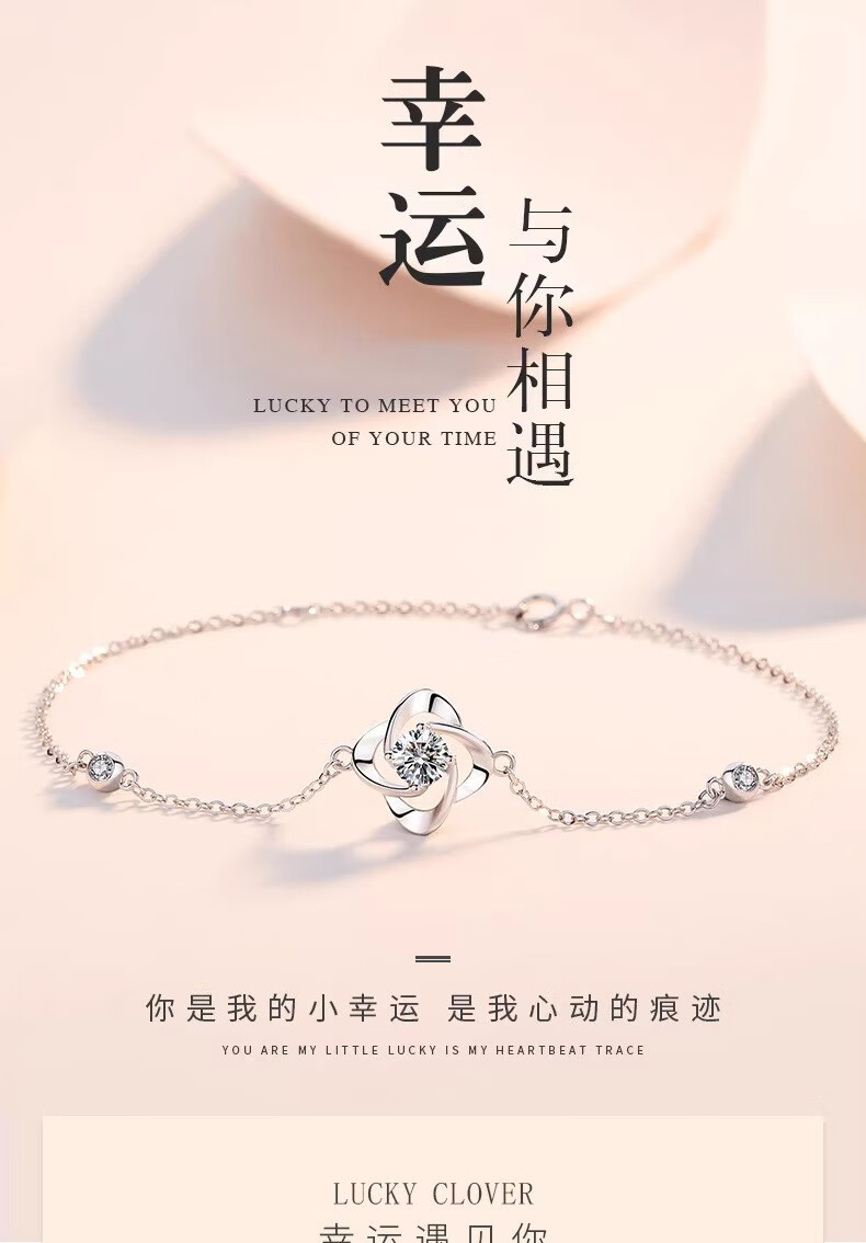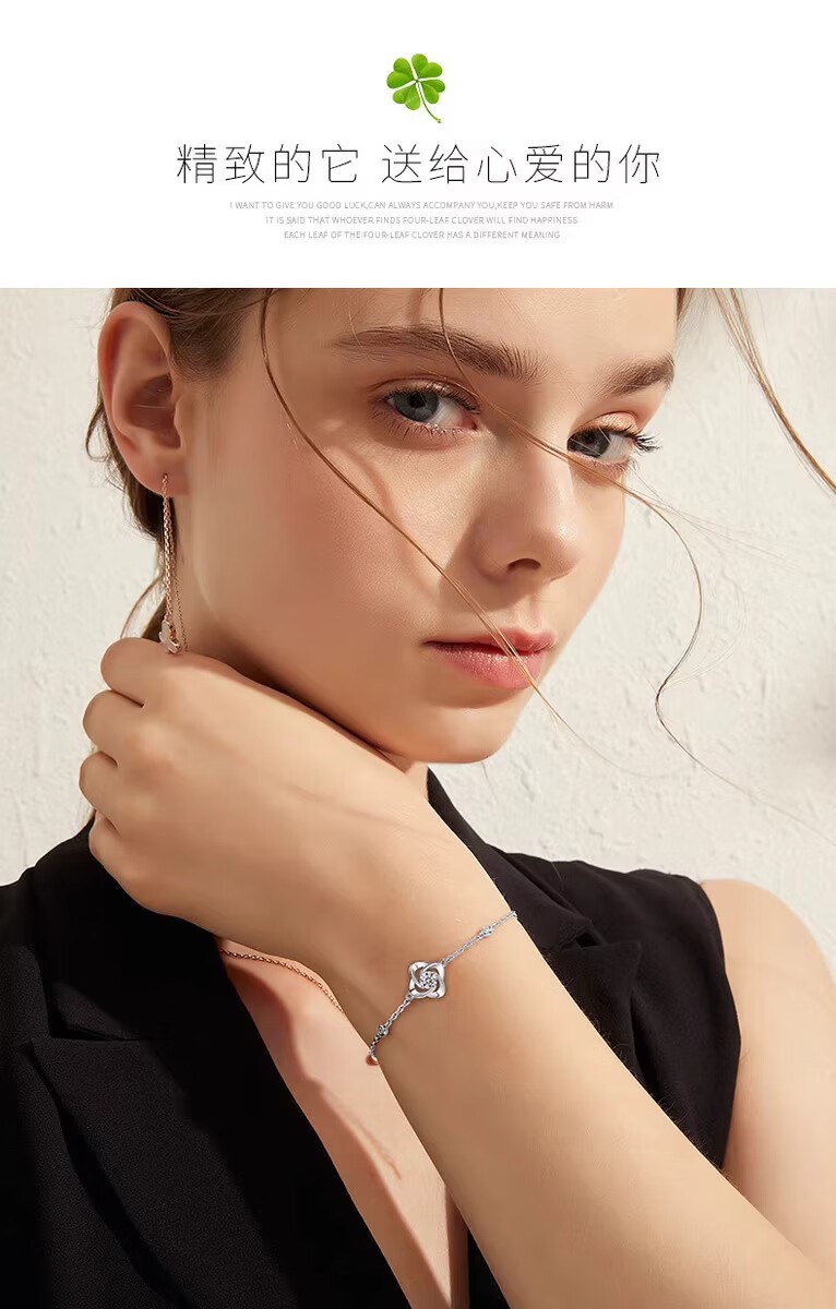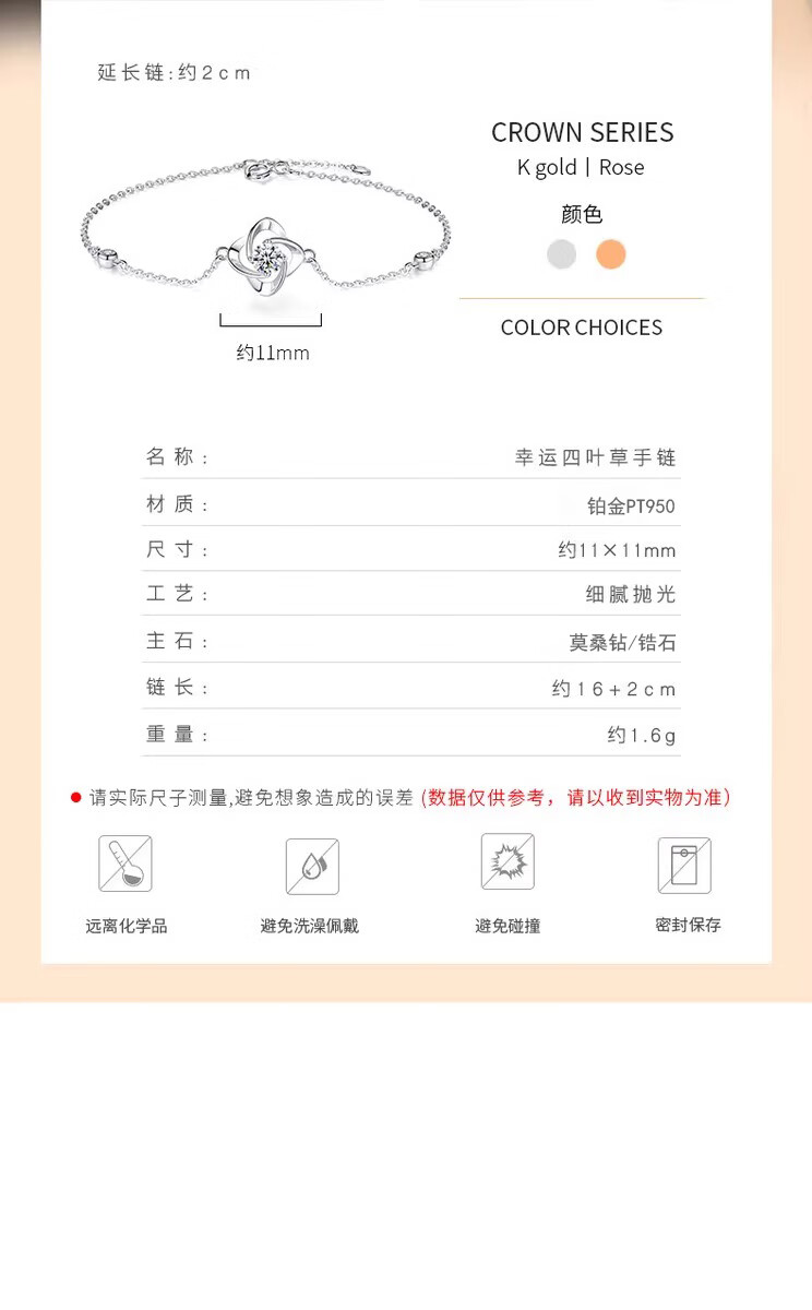 Ji Shizhe four-leaf clover pt950 platinum platinum bracelet for women 2025 new Chinese Valentine's Day birthday gift for girlfriend and wife four-leaf clover moissanite bracelet + exquisite gift box