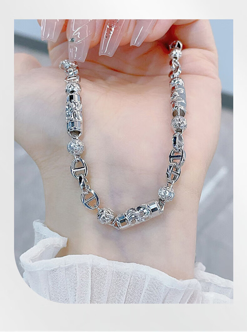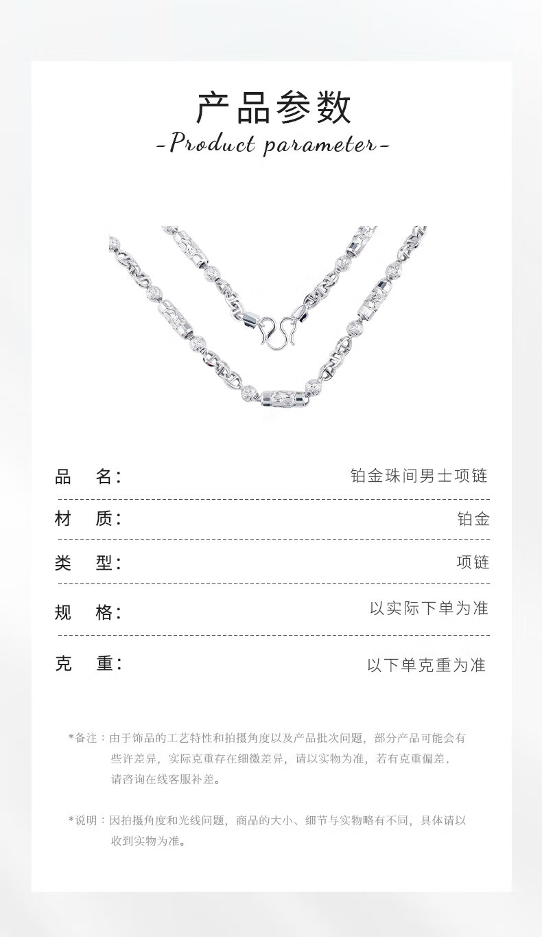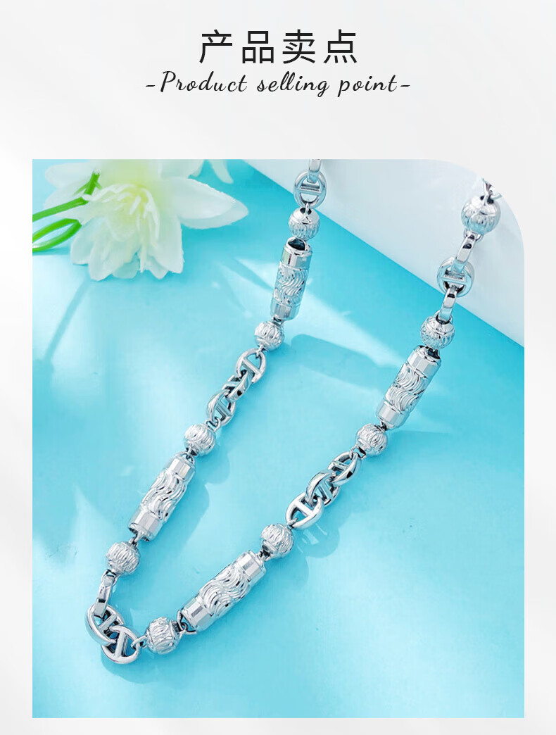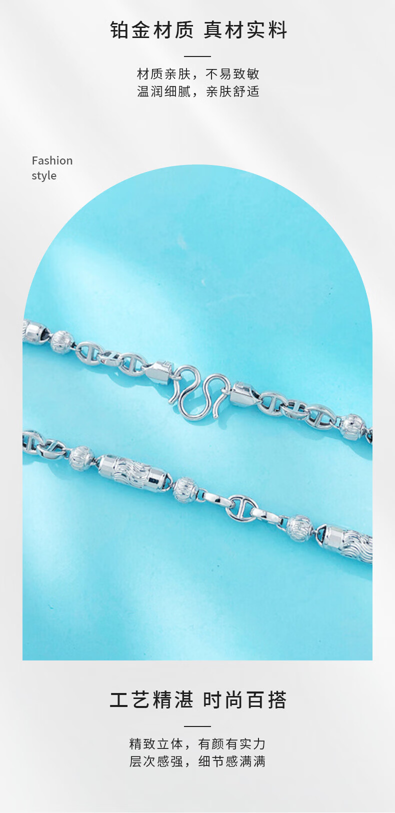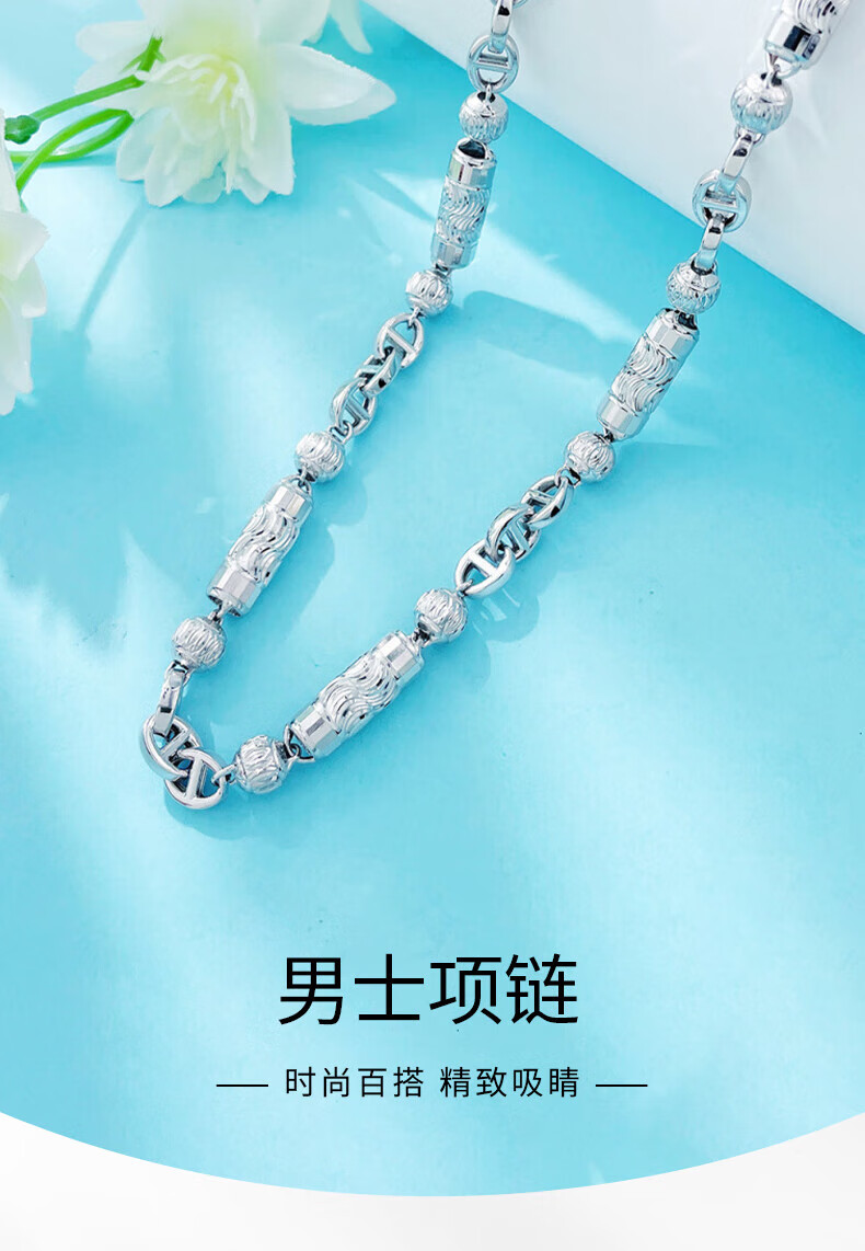 Laomiao platinum necklace men's pt950 platinum round bead pig nose necklace birthday Chinese Valentine's Day gift for boyfriend and husband, about 45.56g - chain length 62m