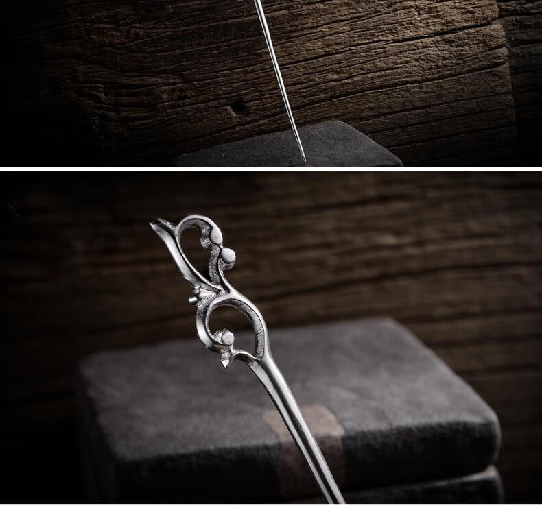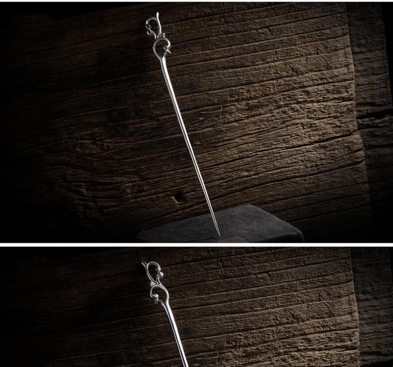 MHFDO Old Phoenix 999 sterling silver retro classical sprout hairpin Chinese style hair accessories cheongsam Hanfu hairpin A013 retro sprout hairpin 16cm