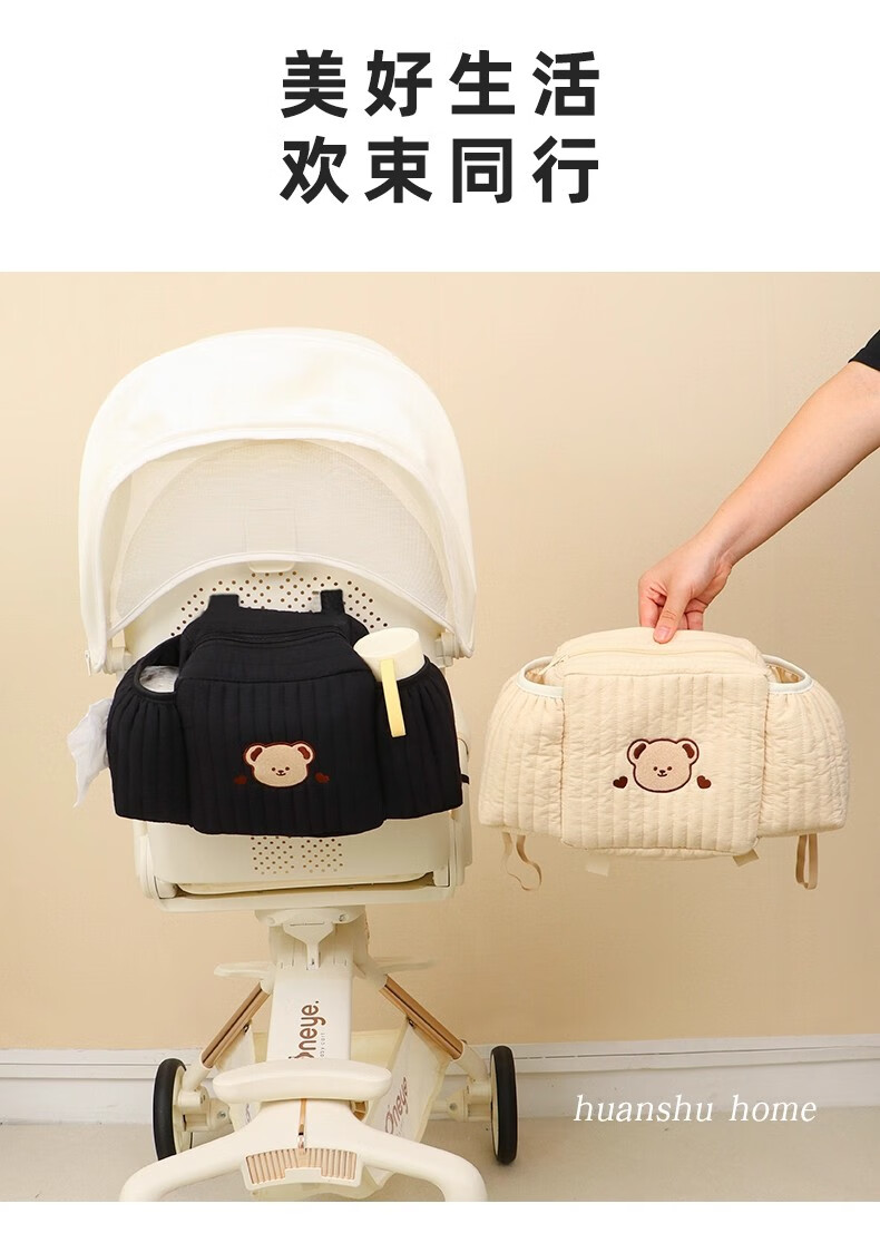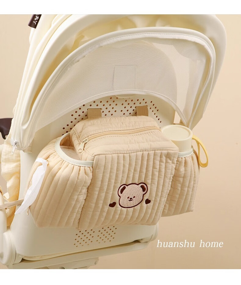 OIMG stroller hanging bag, baby walking artifact, large capacity storage accessories, trolley, electric car, front storage bag, storage bag, beige - ins classified storage/does not affect car collection 35*18*10cm