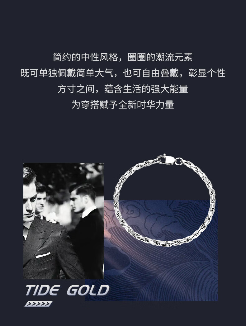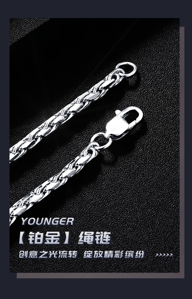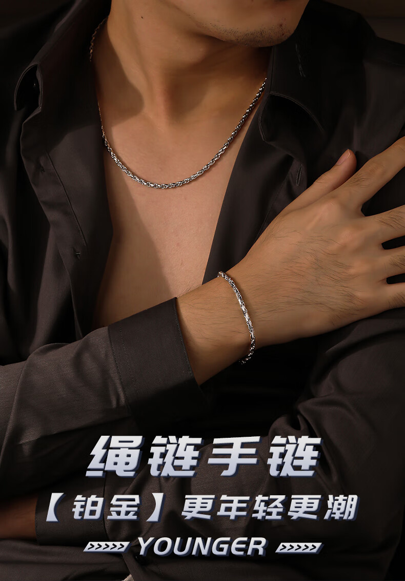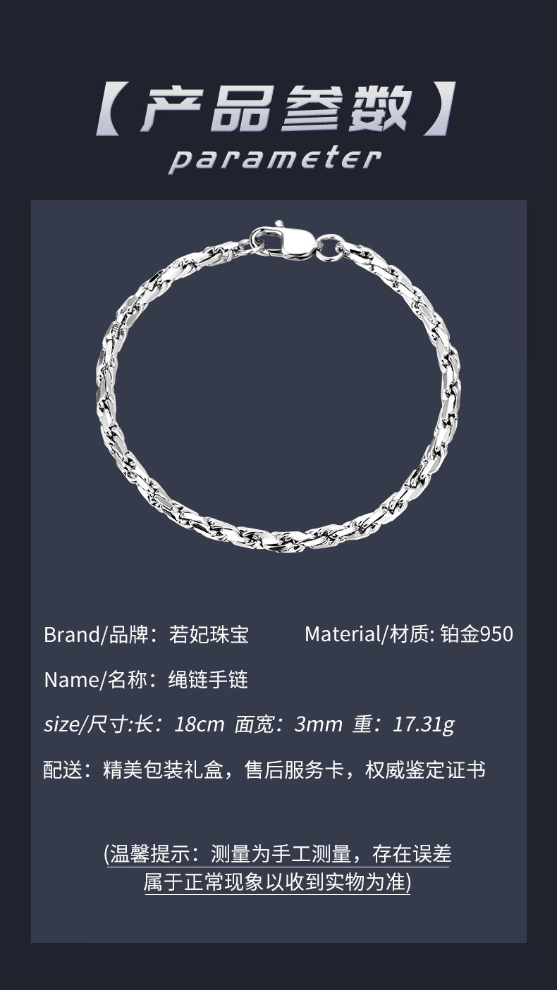 Ruofei platinum bracelet men's pt950 platinum men's bracelet solid simple platinum bracelet men's plain chain rope chain gift length 16cm weight 15-16g thick about 3.0mm