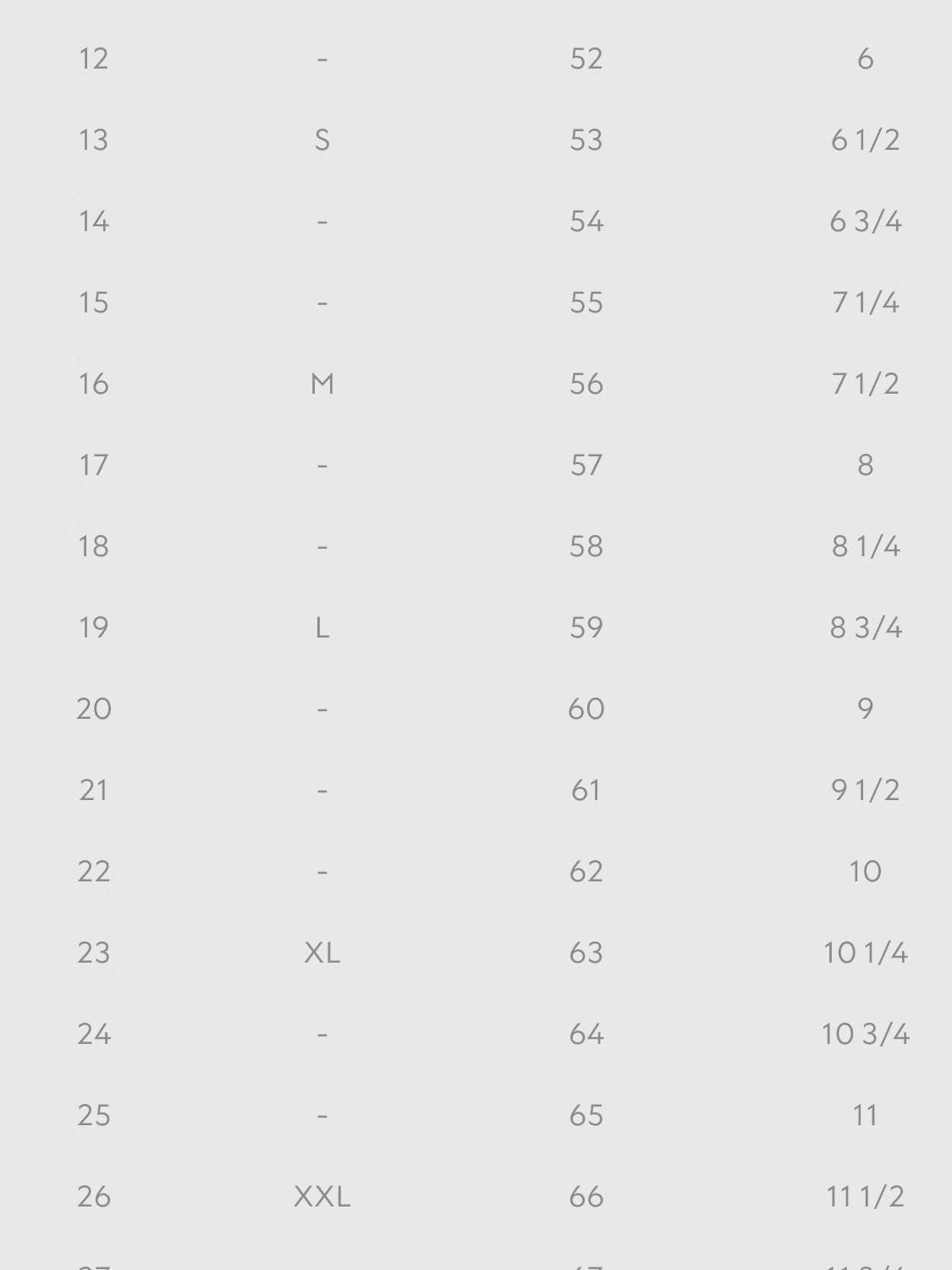Size (cm) 42 44 46 48 50