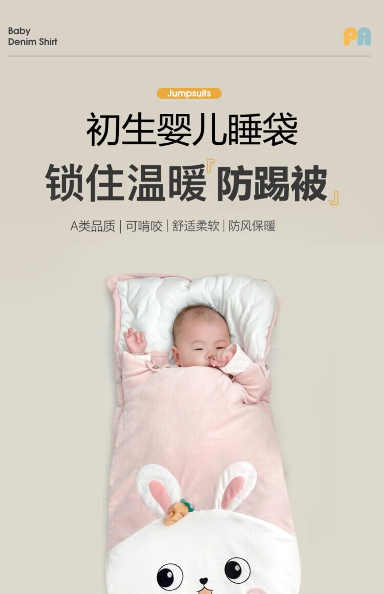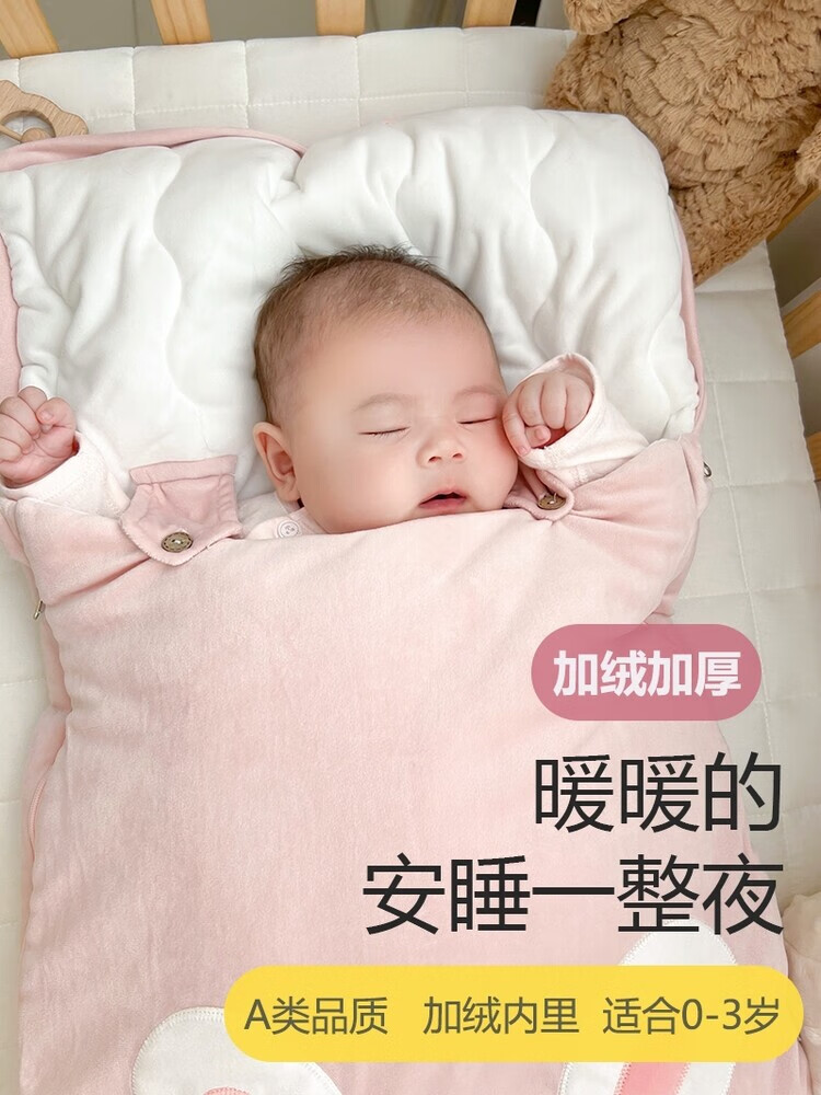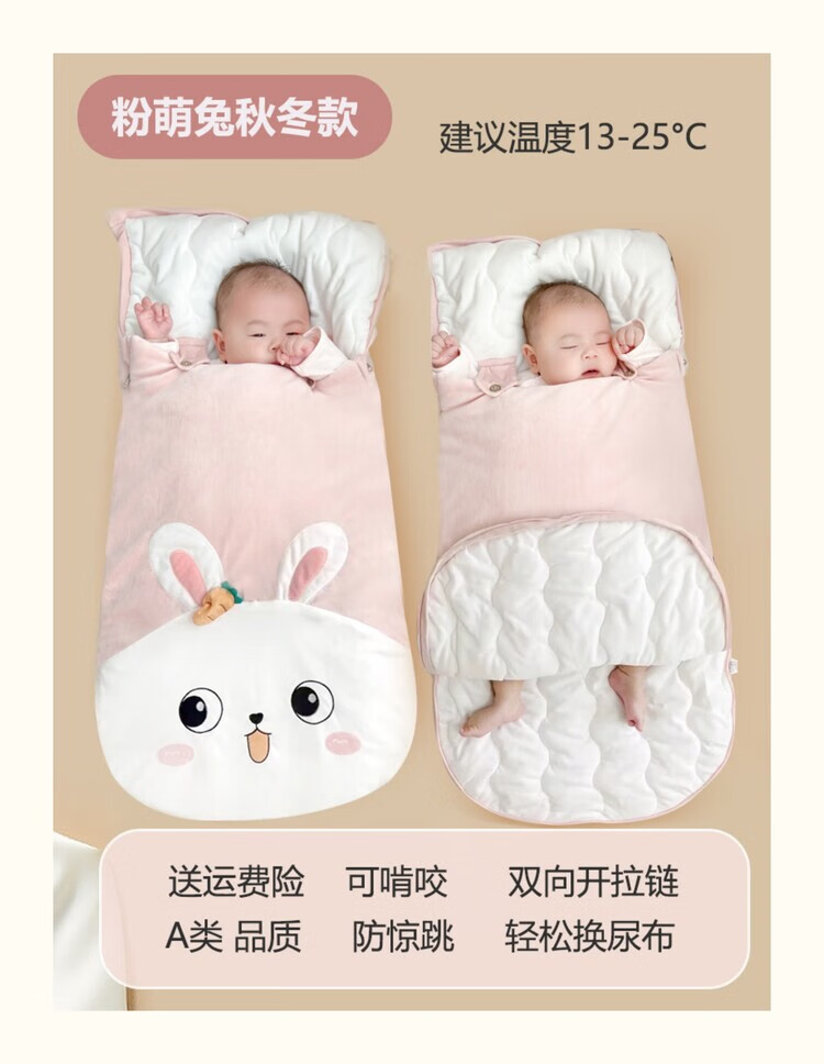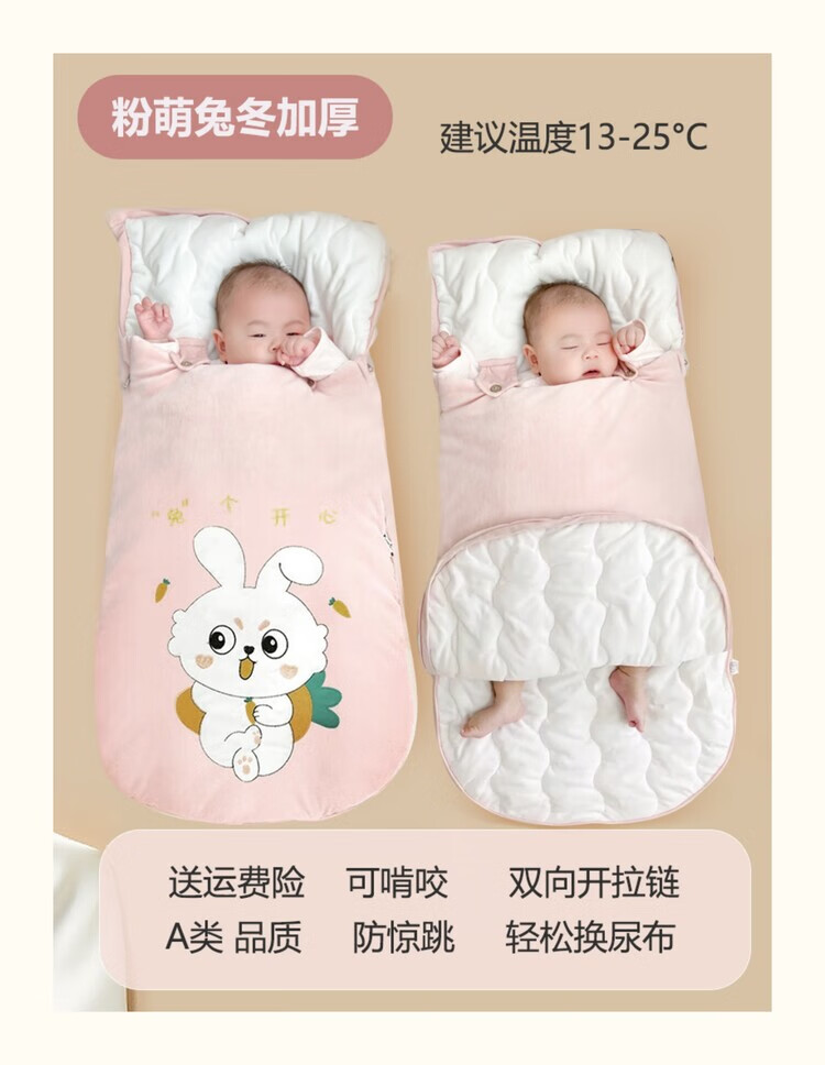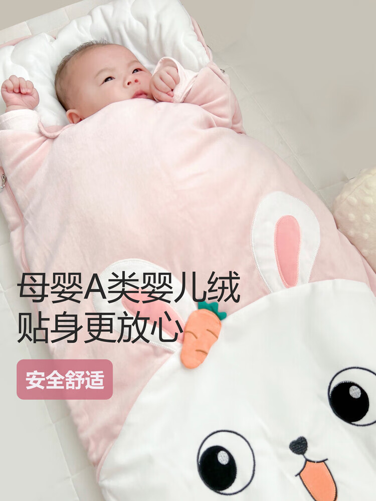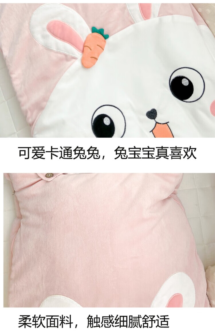 Qiaran Baby Sleeping Bag Autumn and Winter Thickened Newborn Anti-Kick Quilt Dual-purpose Constant Temperature Warm Quilt for Newborns 0-3 Months Pink Rabbit Winter Style Plus Velvet Thickening Temperature 0-18 Velvet Lining Height 96x50 Width cm (Suitable for 0-1.8 Years Old