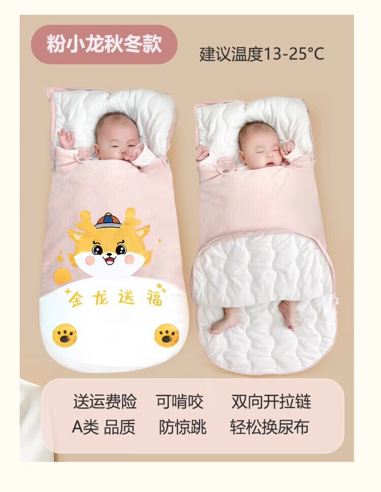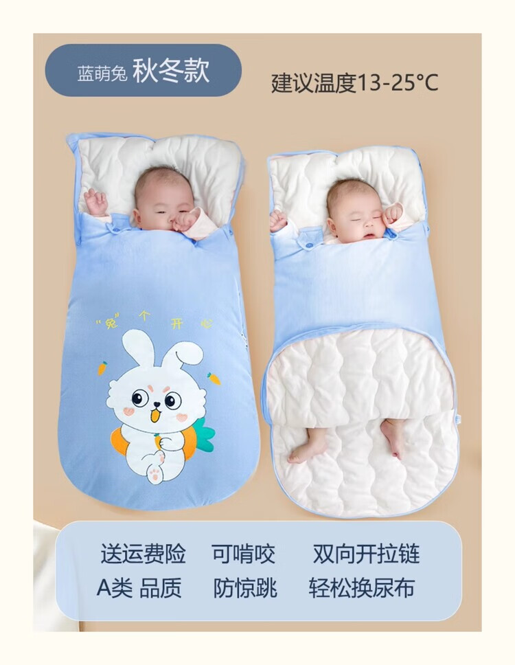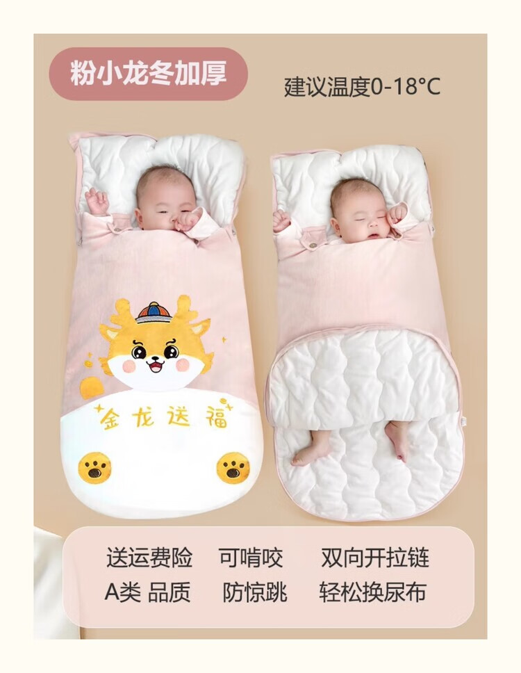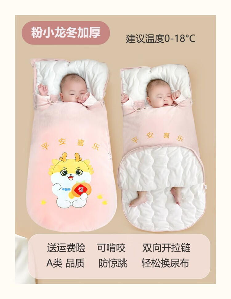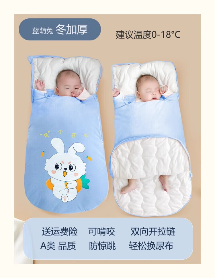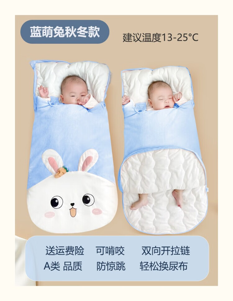 Qiaran Baby Sleeping Bag Autumn and Winter Thickened Newborn Anti-Kick Quilt Dual-purpose Constant Temperature Warm Quilt for Newborns 0-3 Months Pink Rabbit Winter Style Plus Velvet Thickening Temperature 0-18 Velvet Lining Height 96x50 Width cm (Suitable for 0-1.8 Years Old