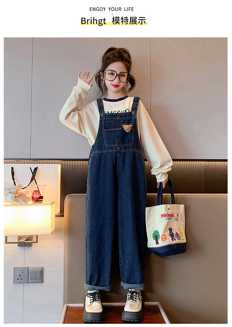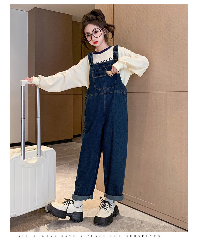 Same day delivery girls suit spring and autumn 2025 new children's overalls girls autumn fashionable two-piece set overalls 150 cm