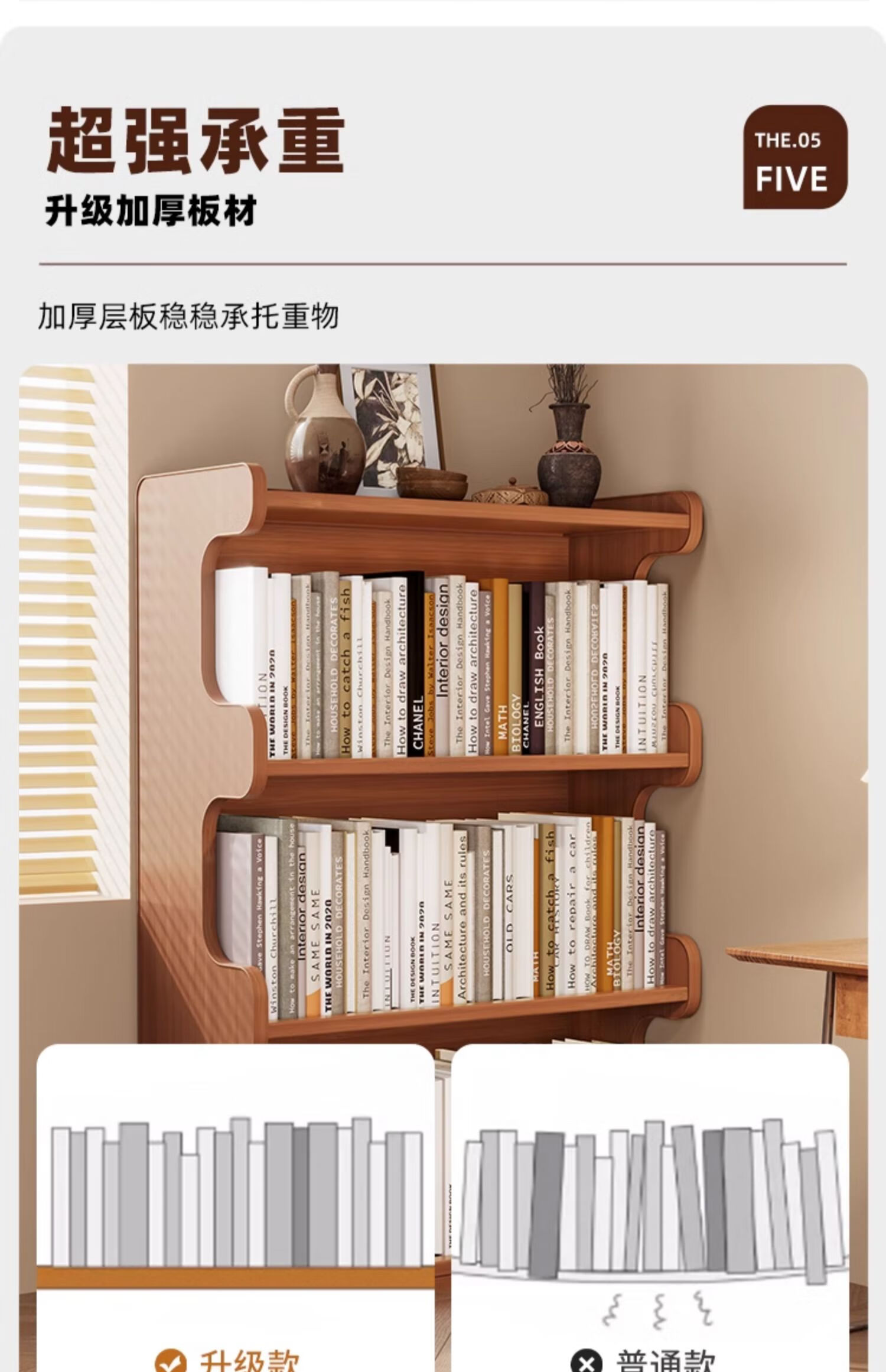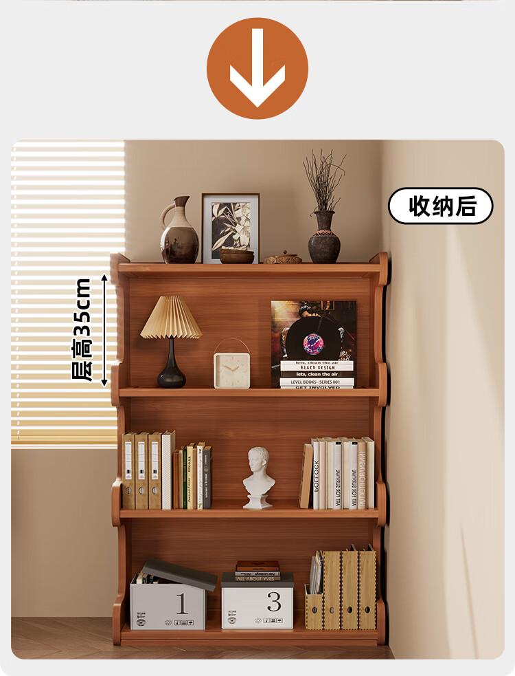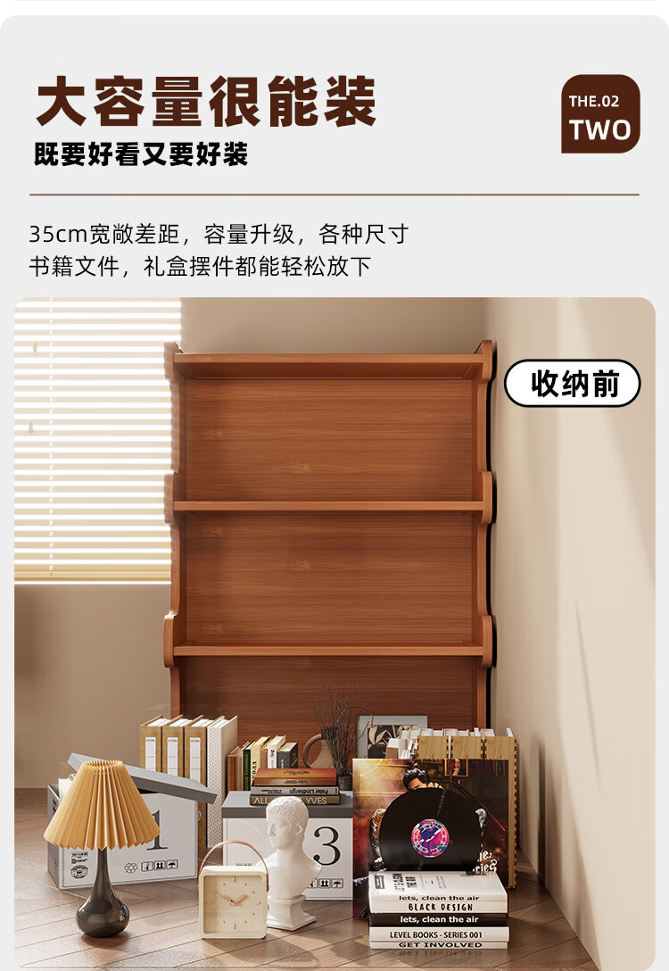 Nifeng bookshelf storage rack floor-standing bookcase simple living room storage cabinet integrated wall-mounted multi-layer home storage display cabinet brown-3 layers 60-curved bookcase