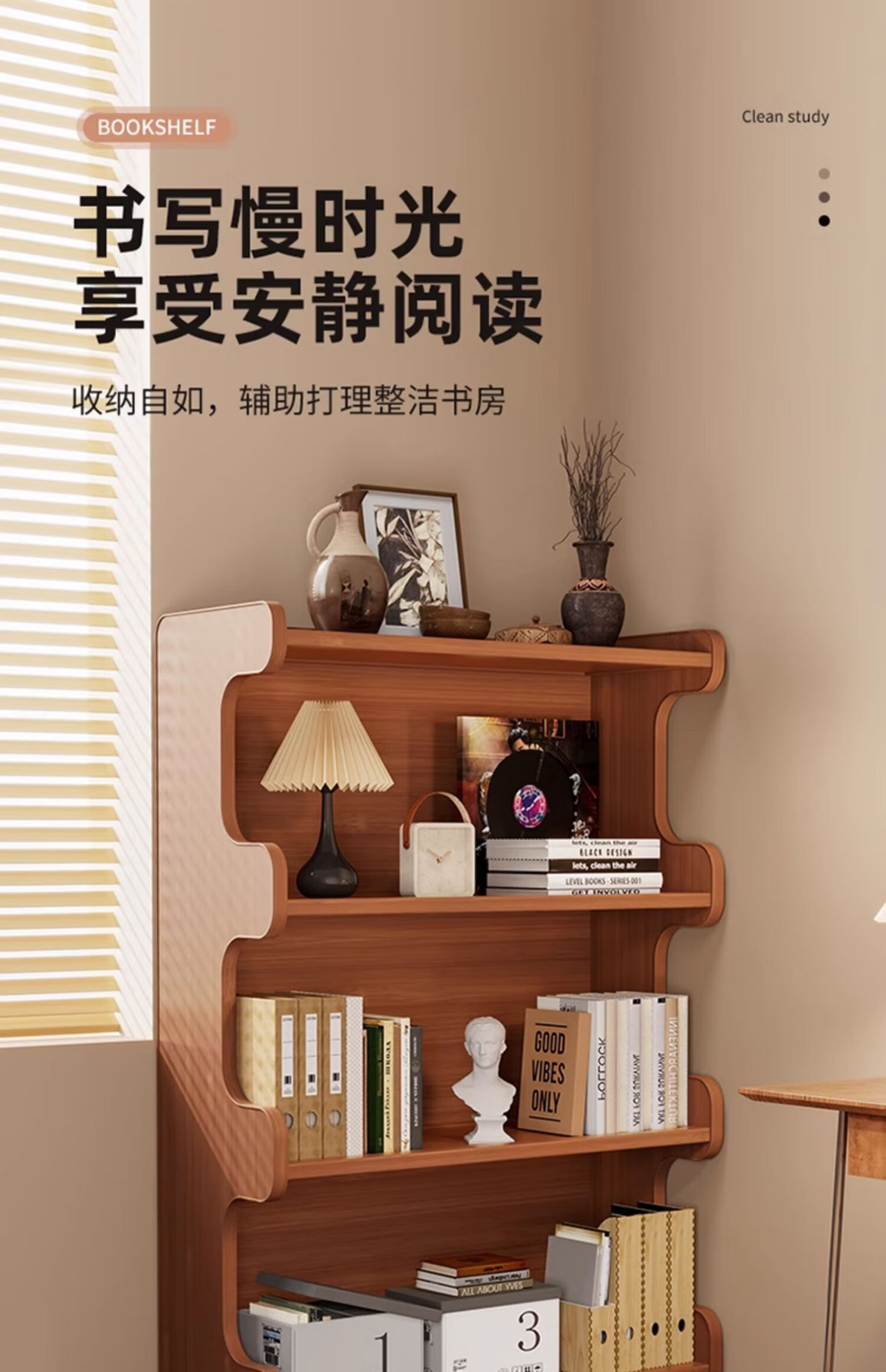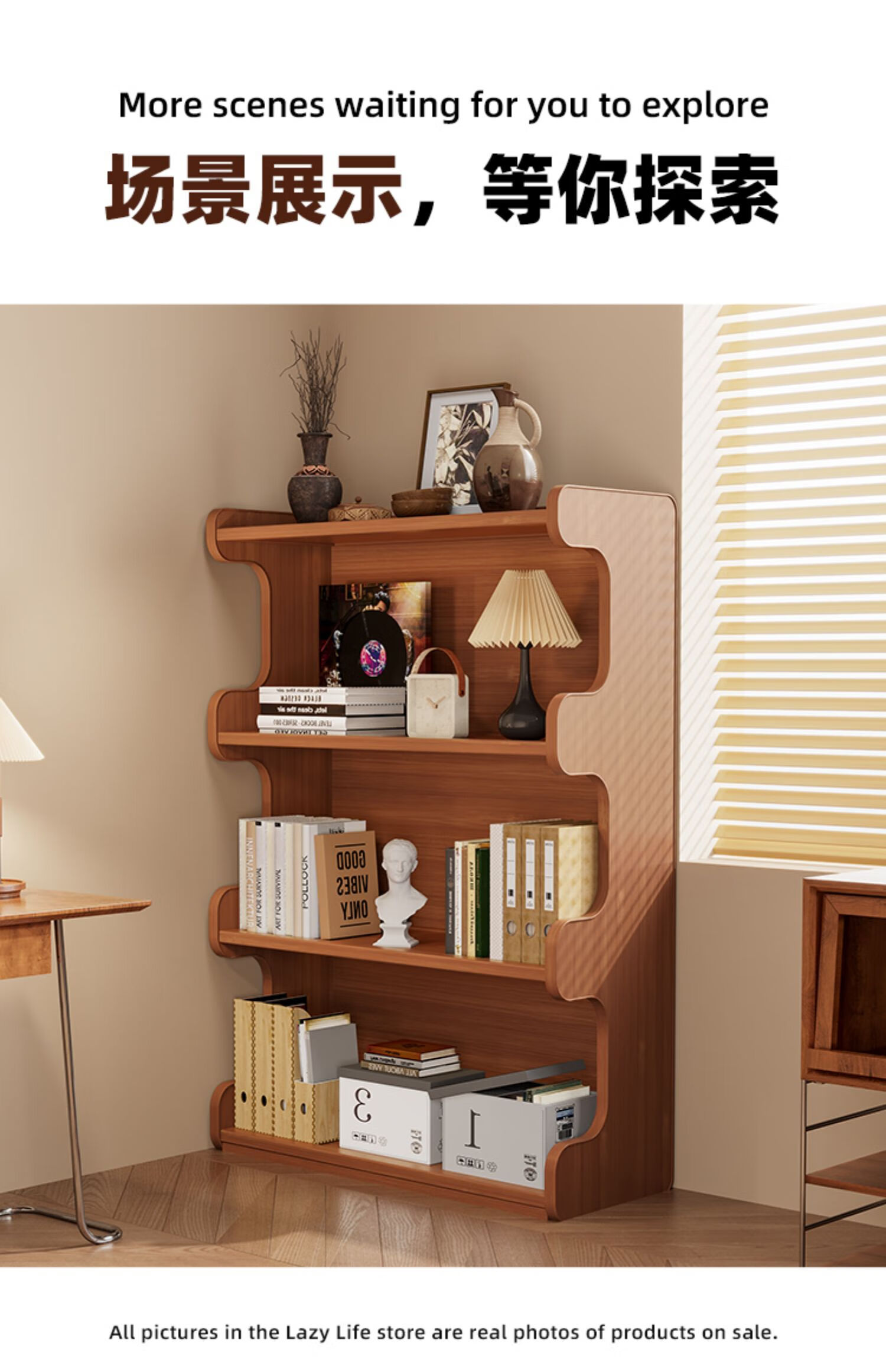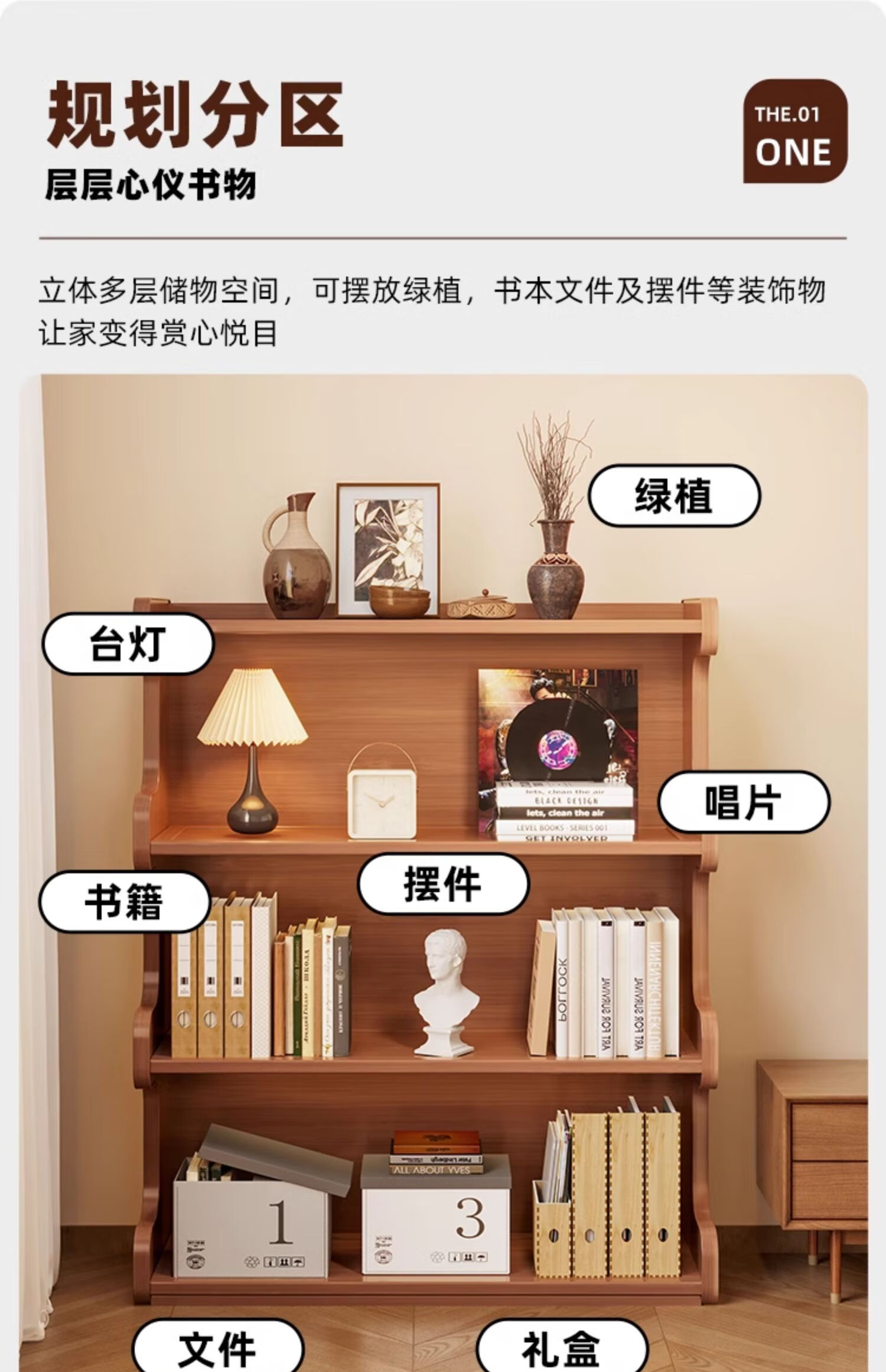 Nifeng bookshelf storage rack floor-standing bookcase simple living room storage cabinet integrated wall-mounted multi-layer home storage display cabinet brown-3 layers 60-curved bookcase