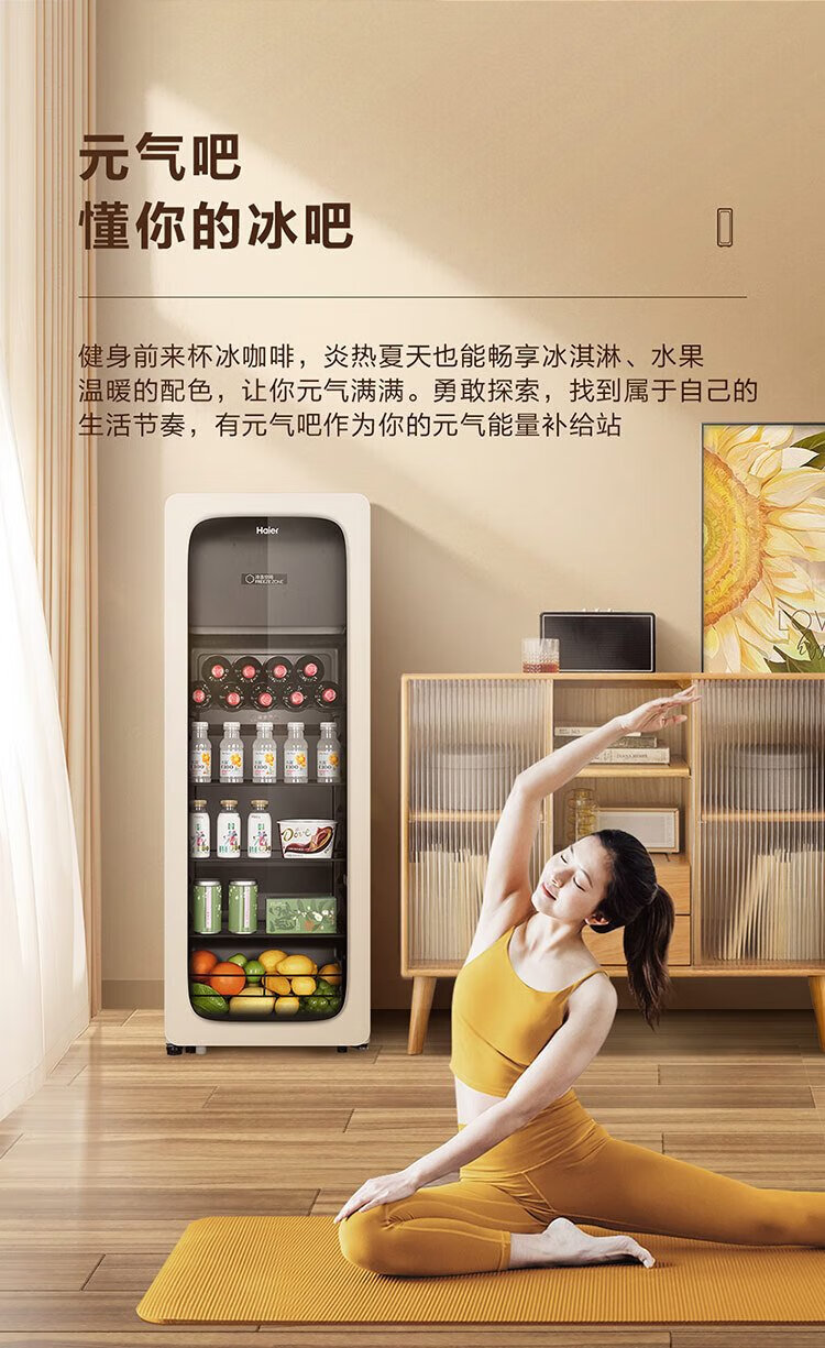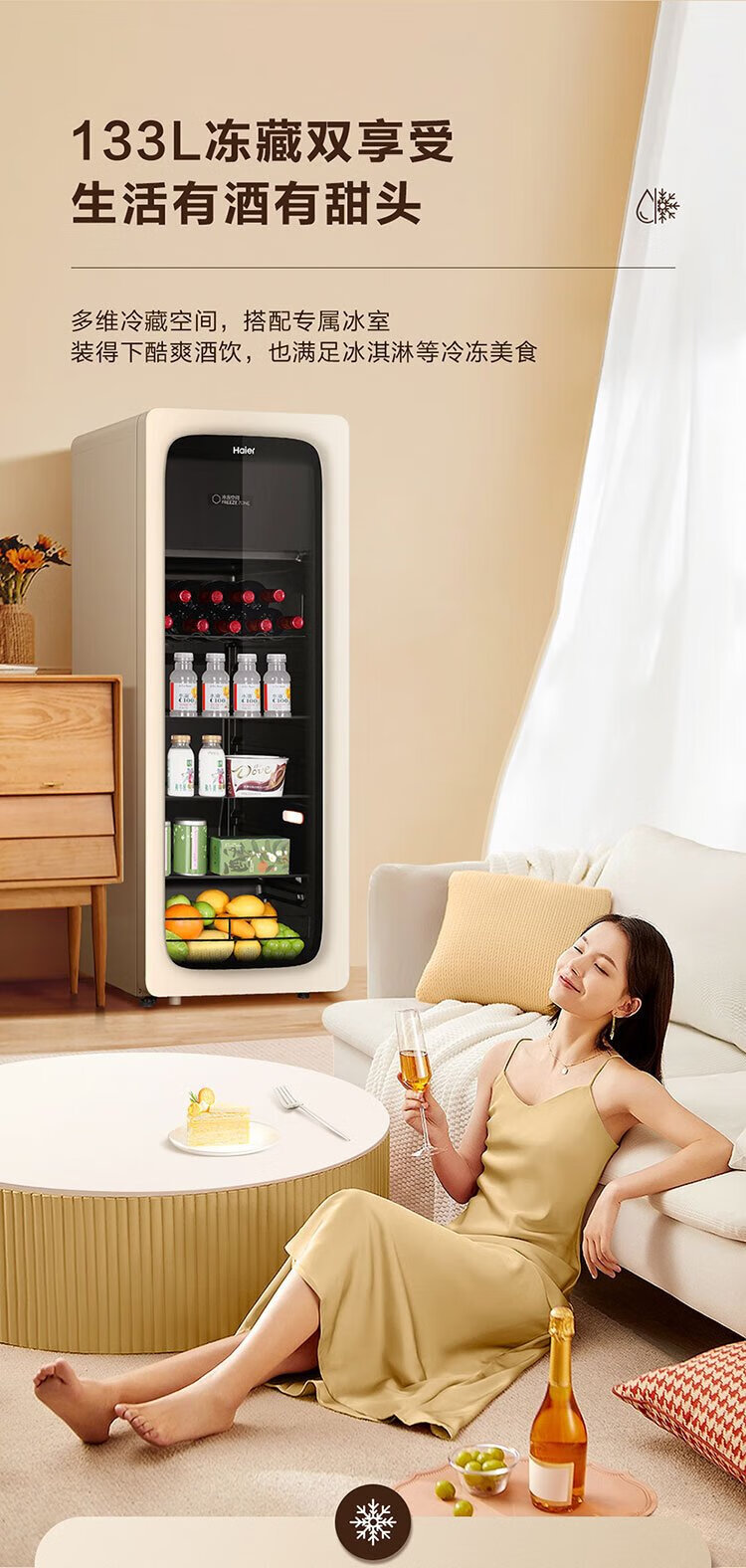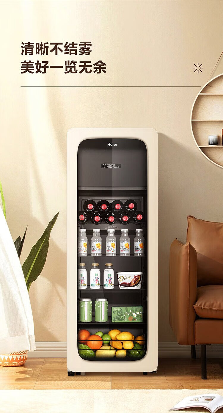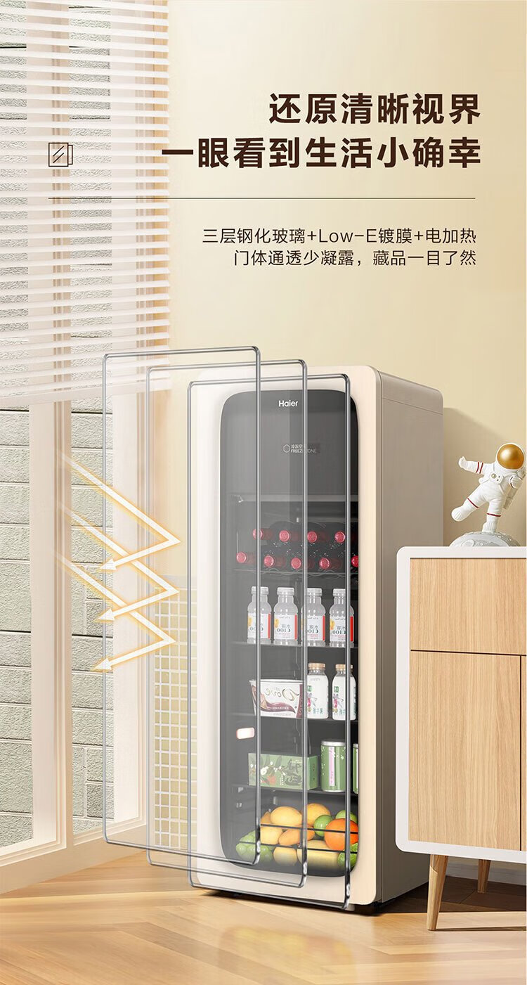 Haier home red wine cabinet, vertical humidifier, refrigerated fresh-keeping cabinet, air-cooled cabinet, wine wine cabinet, refrigerated fresh-keeping display cabinet, tea cigar cabinet, first-class energy efficiency, 150 liters, 52 bottles, uniform temperature throughout the space + hanging cup area, piano black