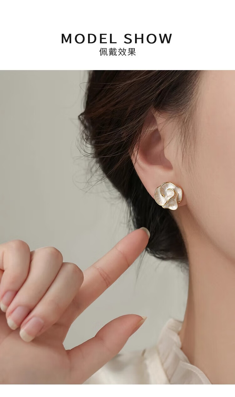 Kaximu 925 silver needle camellia earrings for women 2025 new earrings niche design light luxury high-end temperament earrings camellia earrings gift box