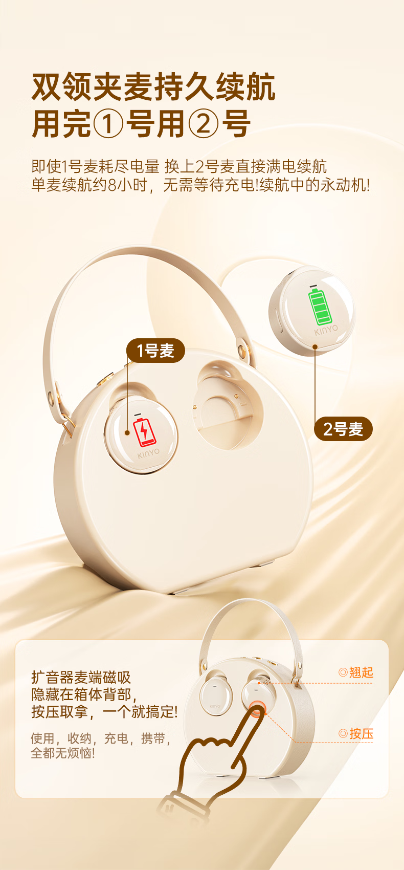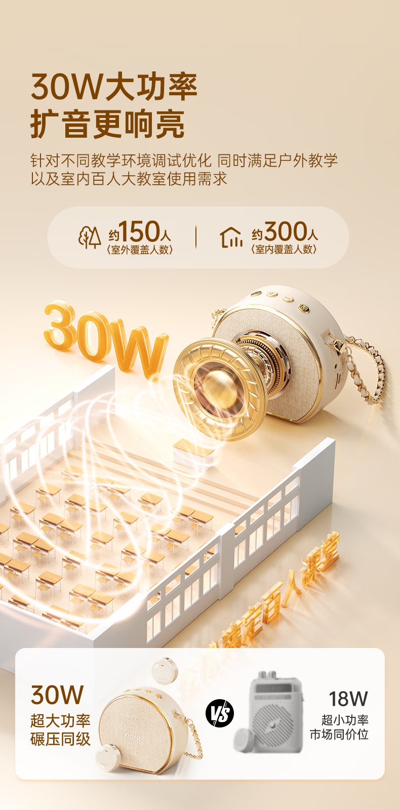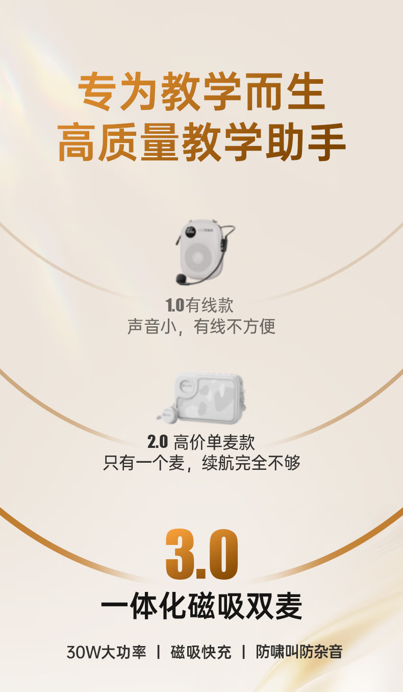 Jinyun Recommended by famous New Oriental teachers丨30W high volume Little Bee amplifier teacher-specific wireless lavalier microphone one-to-two teaching guide anti-whistle M20 new product launch丨magnetic dual microphone Velvet off-white Suitable for 300 people classroom 30W peak power