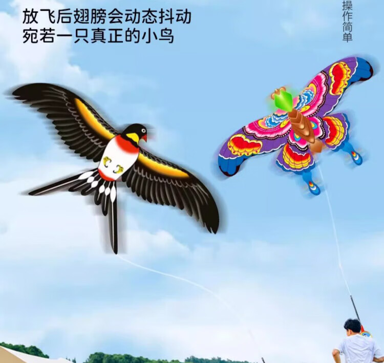 Shenwo fishing rod small kite 2025 new dynamic kite outdoor sports Kapibala national style animal style kite dynamic swallow + 50 meter line set