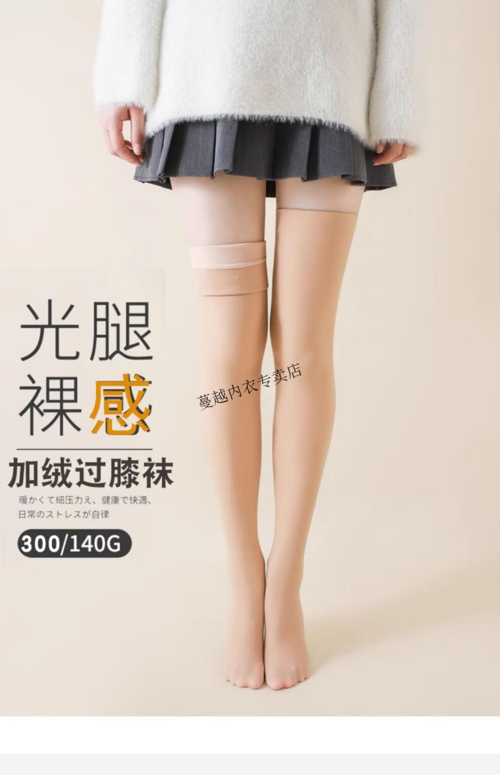 Modal socks for women winter warm thickened velvet over-the-knee socks black skin color stockings non-slip thigh socks water gloss stockings 140g thin velvet skin color (5-15 C) 1 pair one size