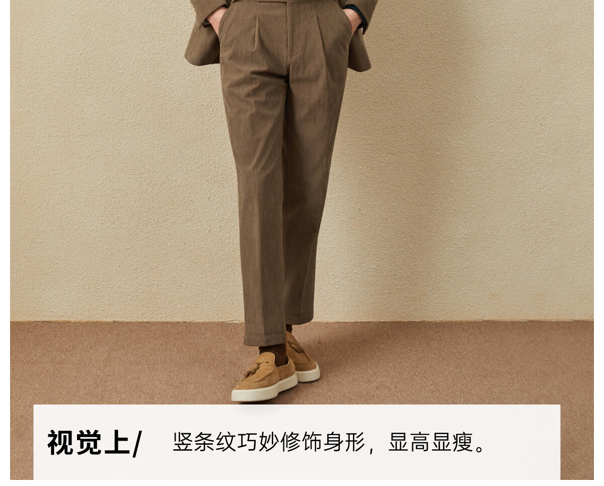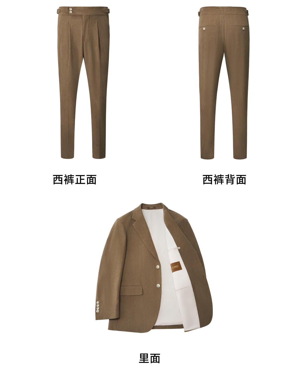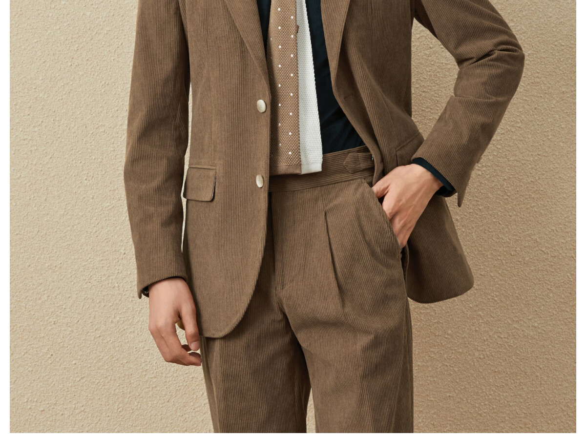 Guillaume Corduroy Suit Men's Jacket Brown Casual Unisex Commuting Naples Retro Suit Khaki Green Top + Pants 50