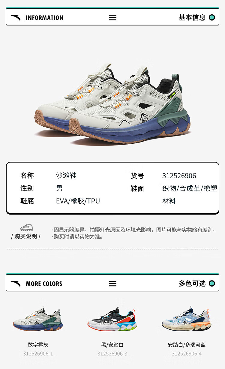 ANTA children's sandals, boys' shoes, 2025 autumn new off-road frame shoes, outdoor sports shoes, beach shoes, digital fog gray-1 34, inner length 21.5cm
