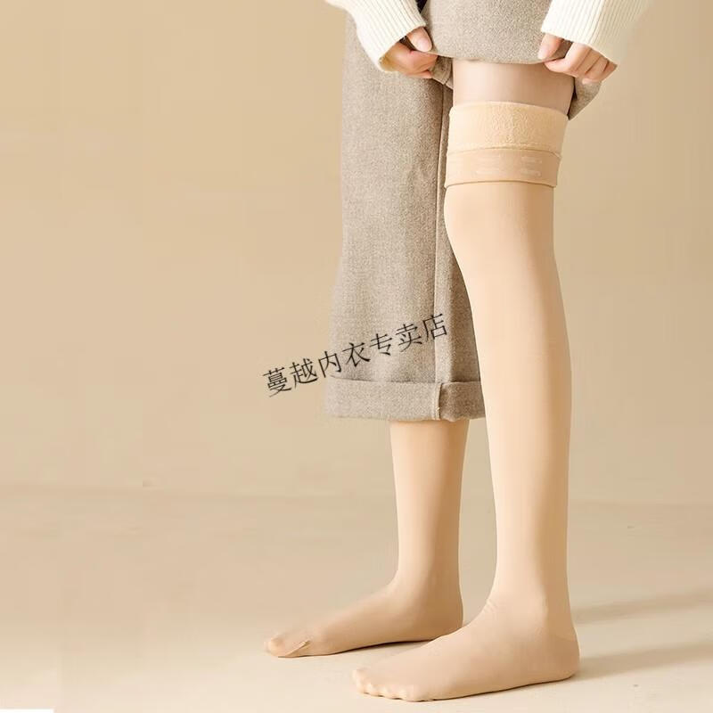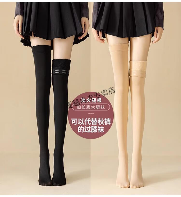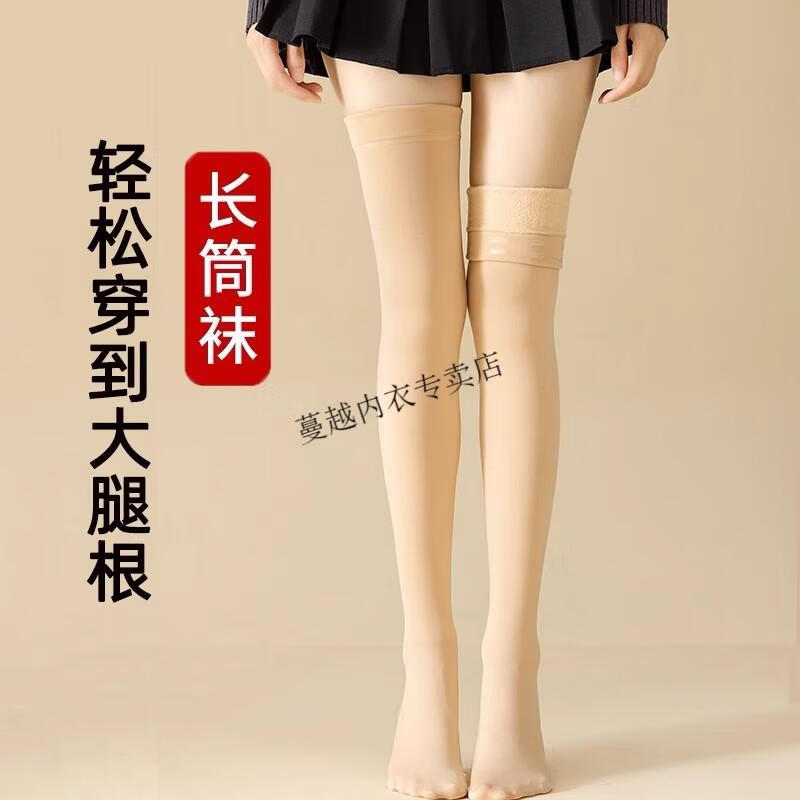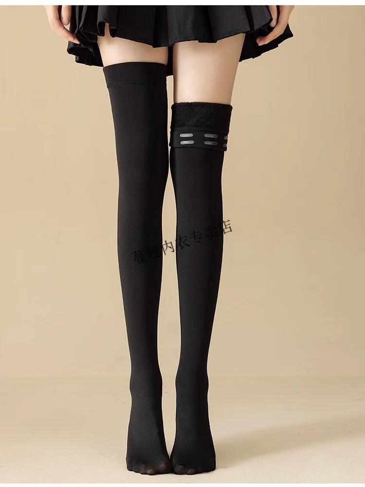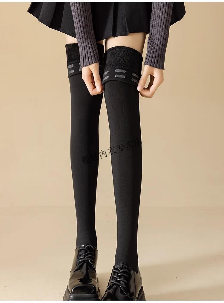 Modal thigh-high over-the-knee socks for women in autumn and winter 75cm plus velvet and thickened to keep warm silicone anti-slip tall flesh-colored stockings, black with feet, 1 pair, one size fits all, extra long, silicone anti-slip socks