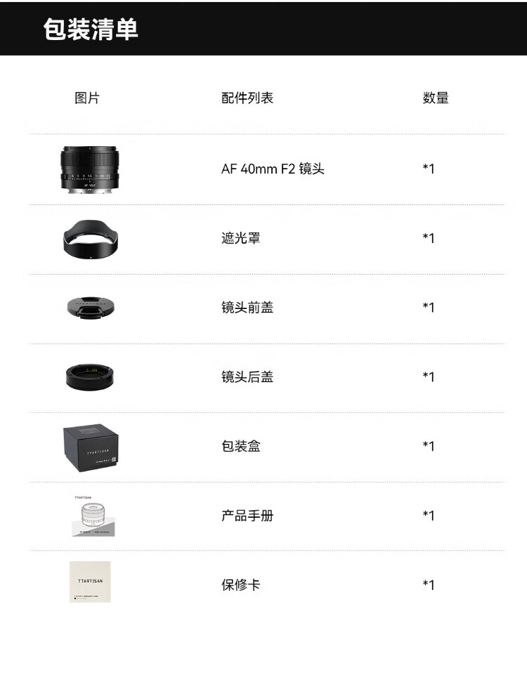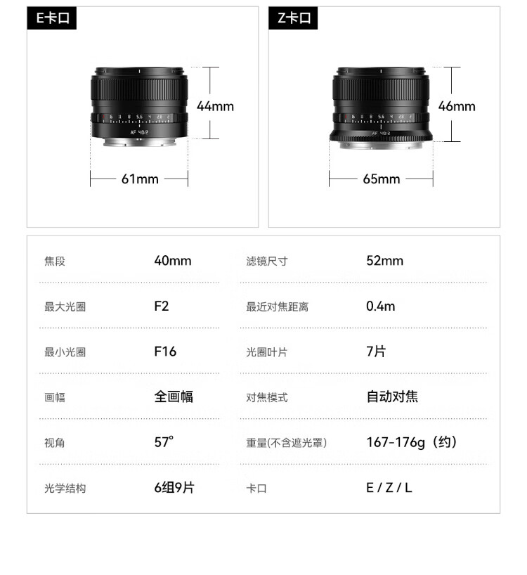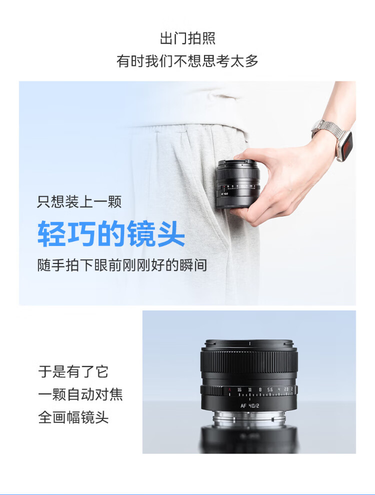 TTArtisan AF 40mm F2 full-frame fixed-focus automatic lens for humanities and travel photography, suitable for Sony E-mount Nikon Z Sony E-mount 52mm