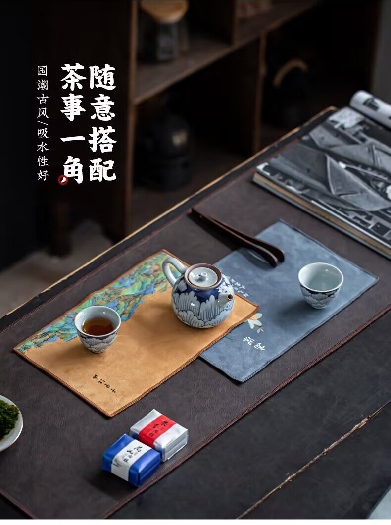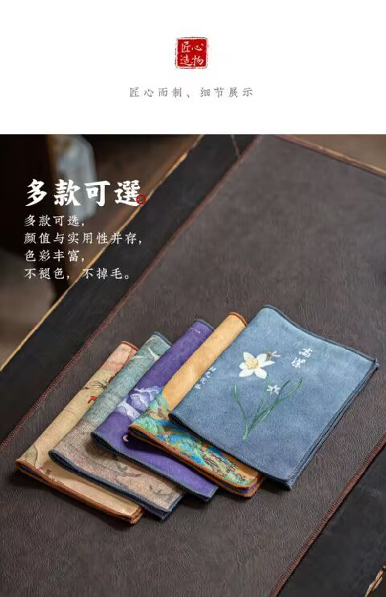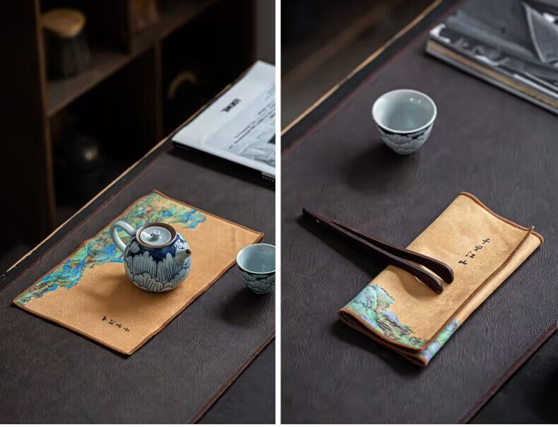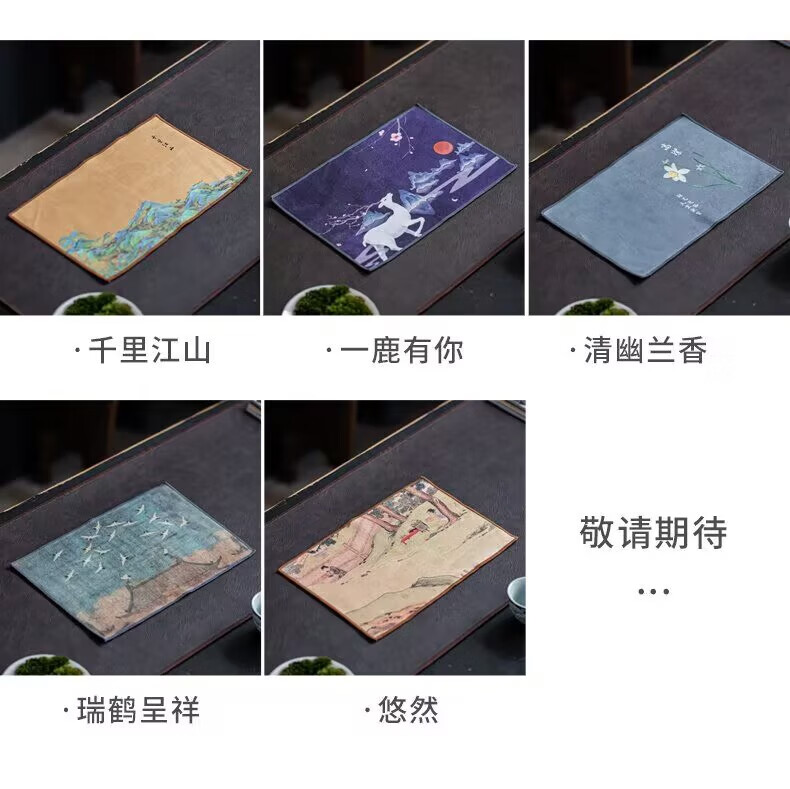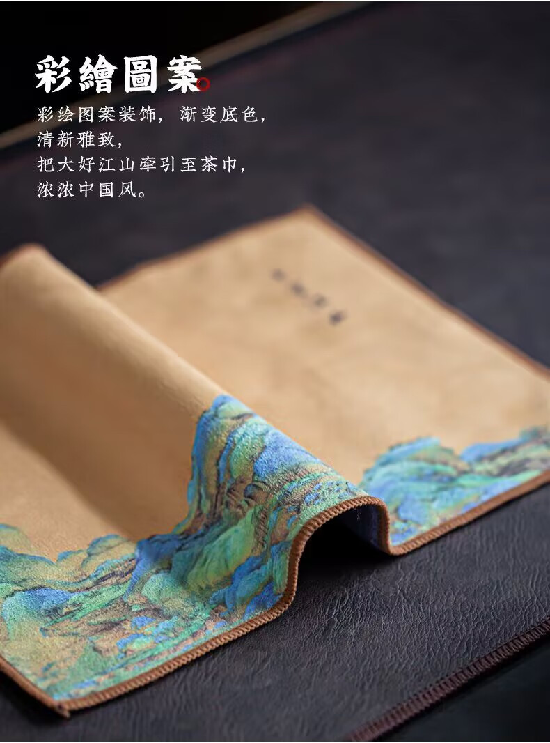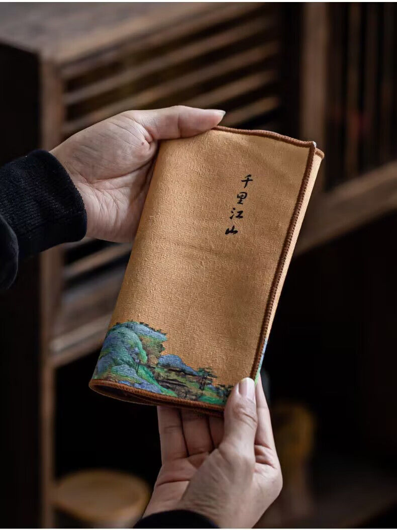 Yipin Workshop tea towel, tea cloth, absorbent, high-end tea table towel, light luxury suede pot towel, tea mat, kung fu tea set accessories, suede thickened (Qianli Jiangshan) 29_18cm