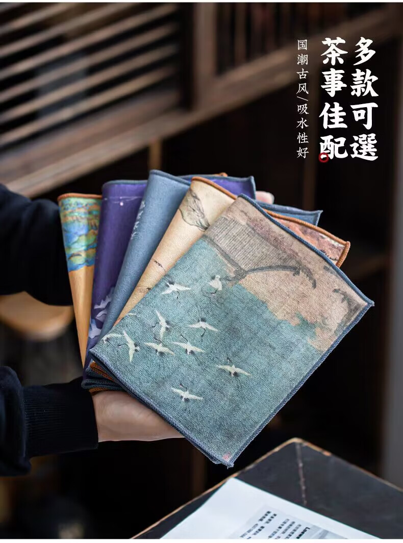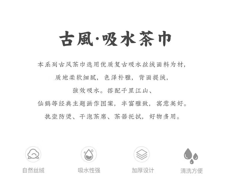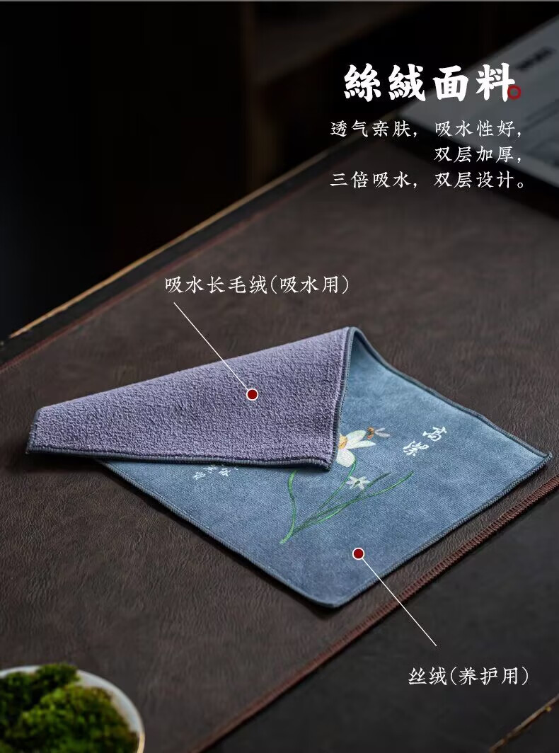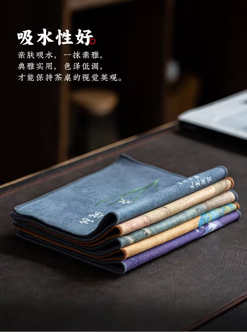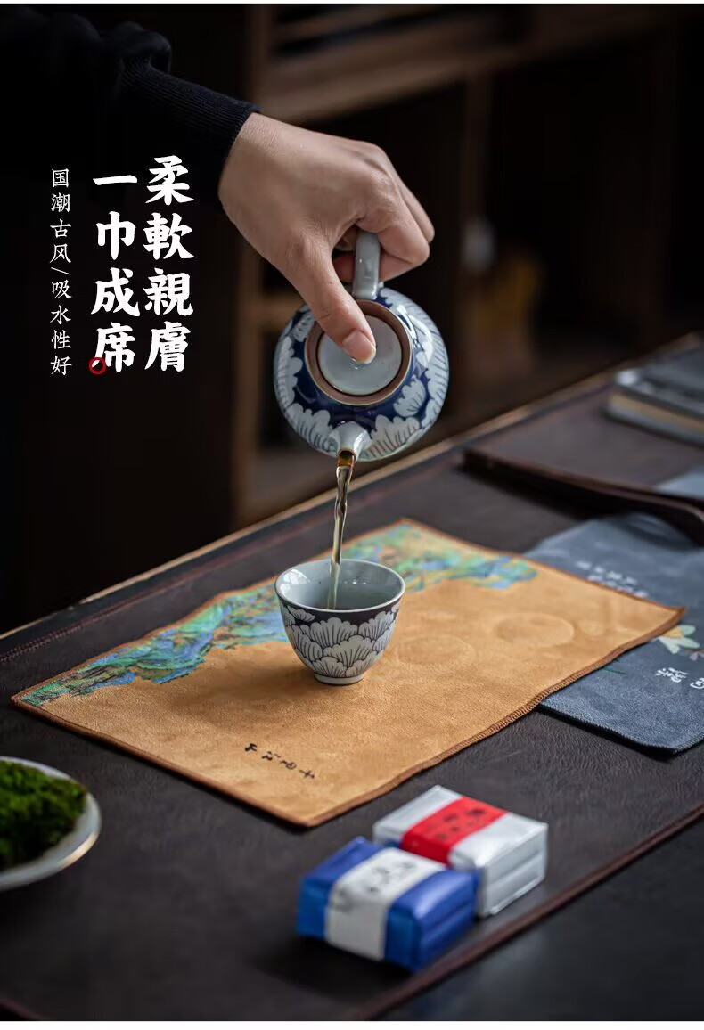 Yipin Workshop tea towel, tea cloth, absorbent, high-end tea table towel, light luxury suede pot towel, tea mat, kung fu tea set accessories, suede thickened (Qianli Jiangshan) 29_18cm