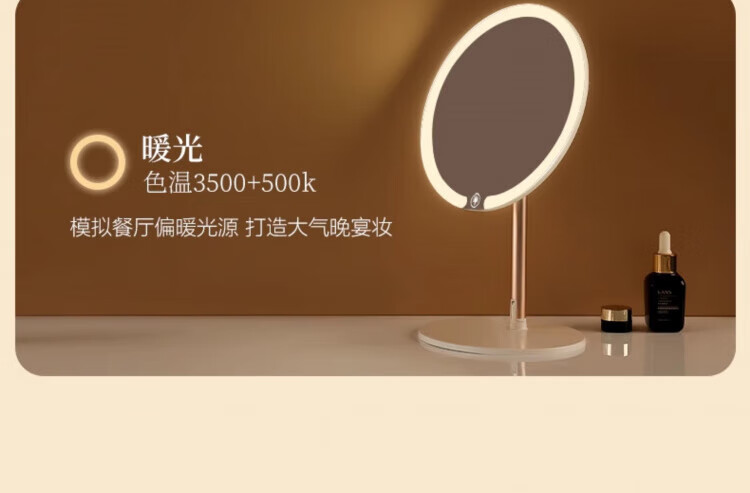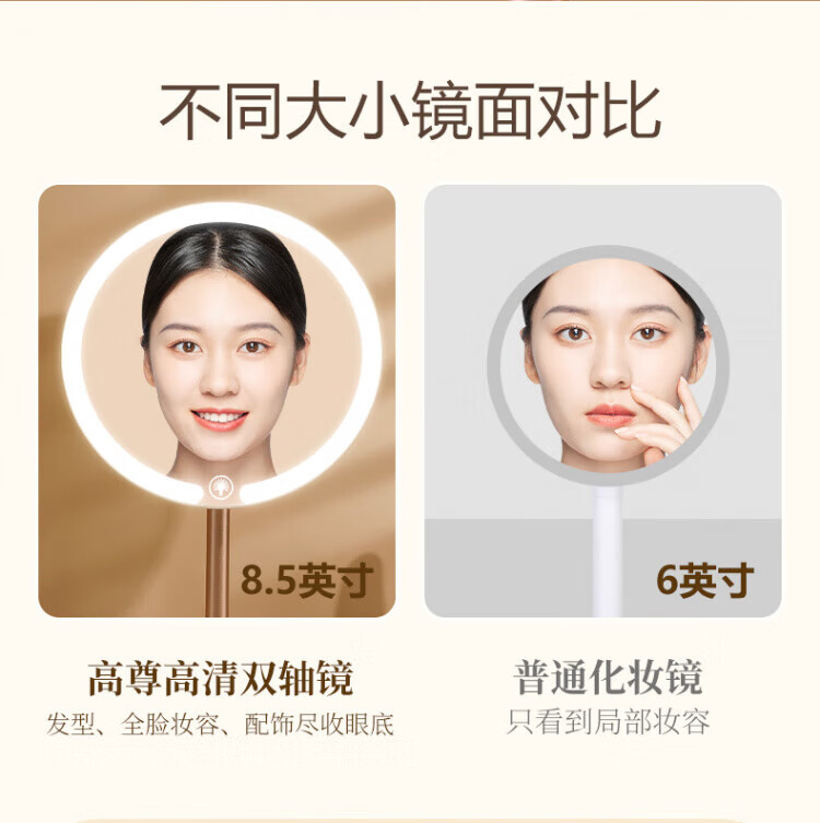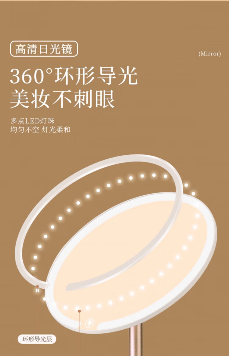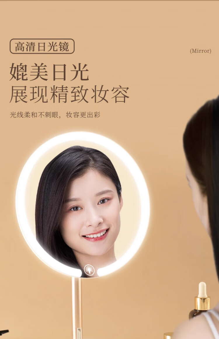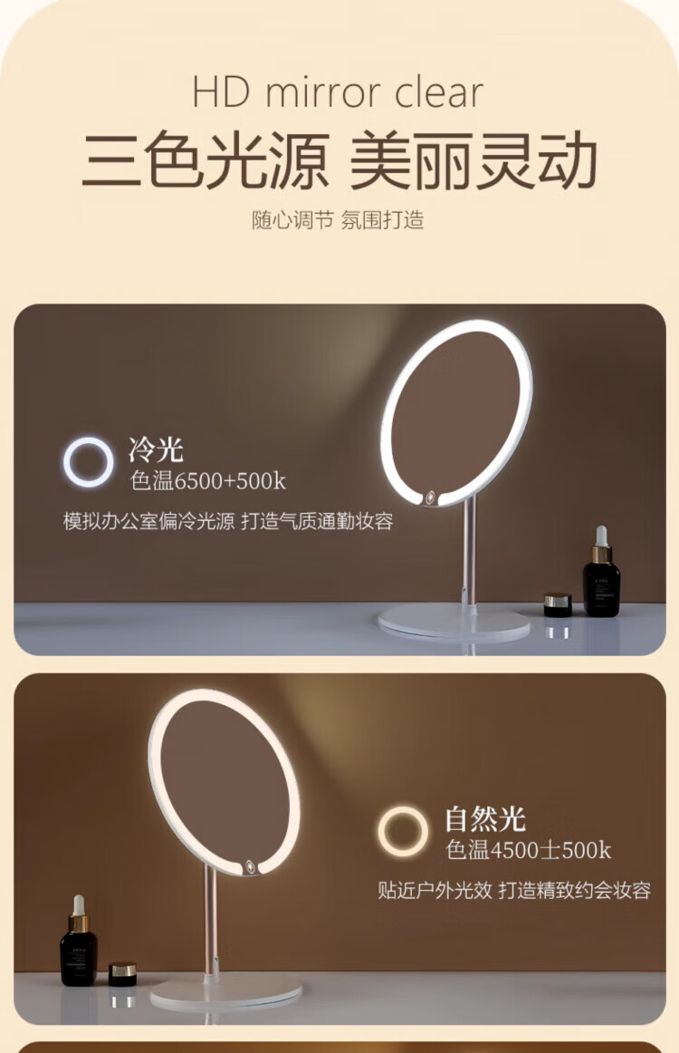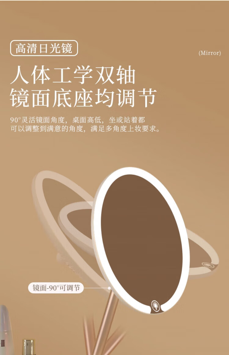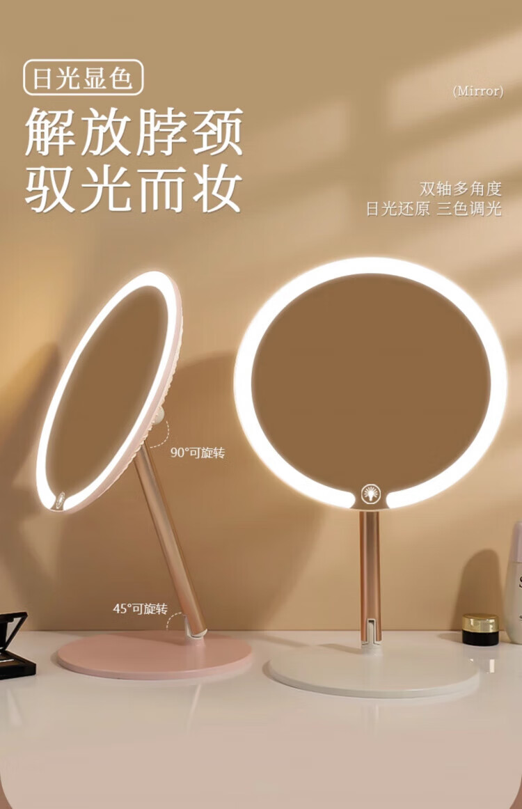 Skingcond double-axis makeup mirror with light desktop desktop student dormitory led makeup mirror folding portable rechargeable light mirror standard jade porcelain white alloy bracket 2400AH