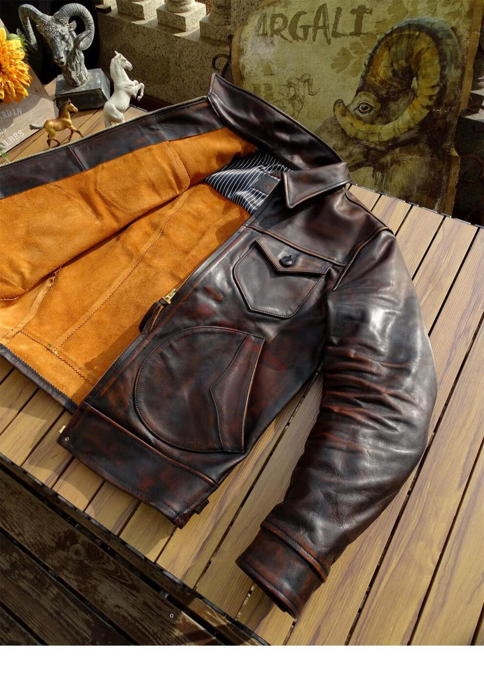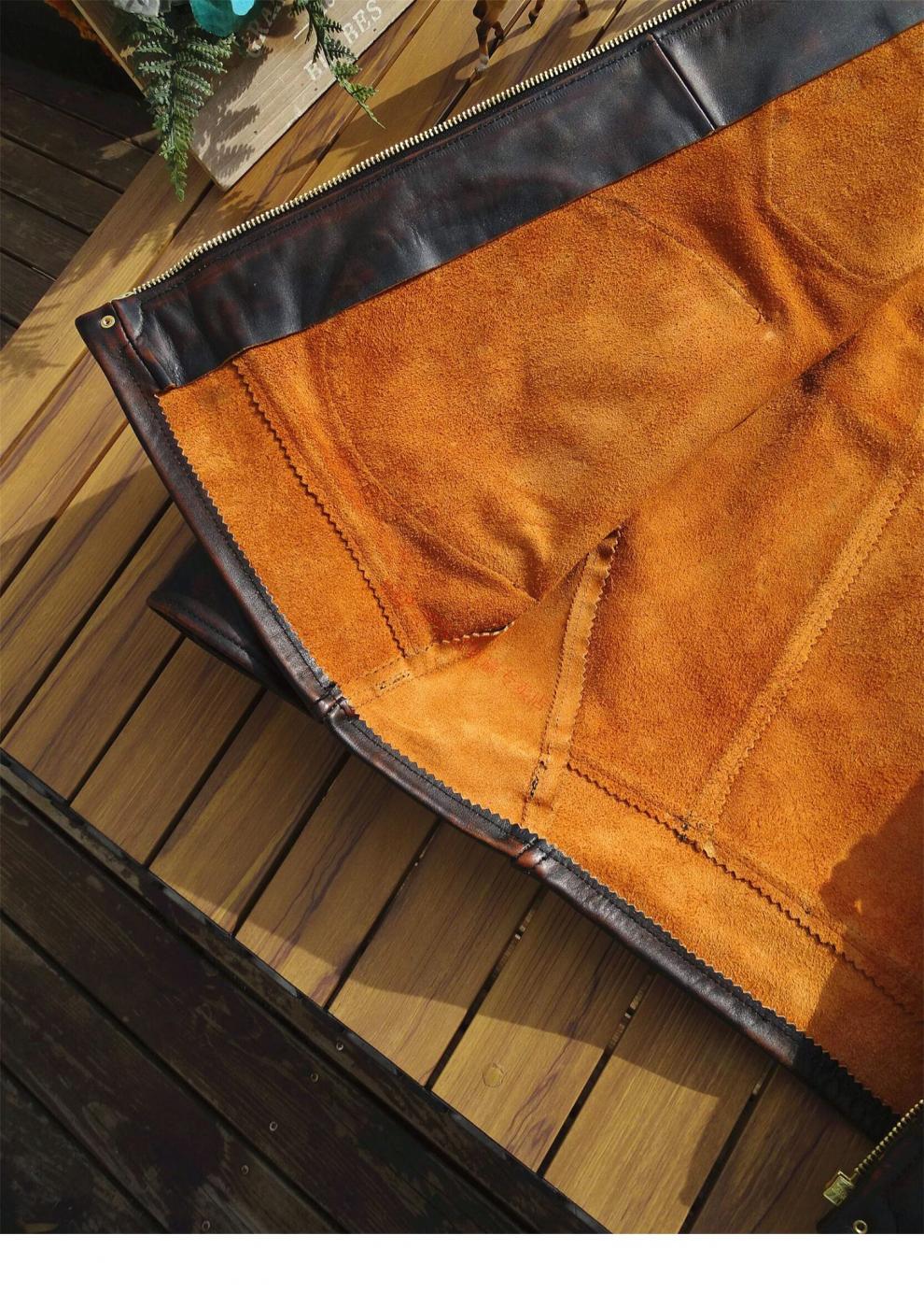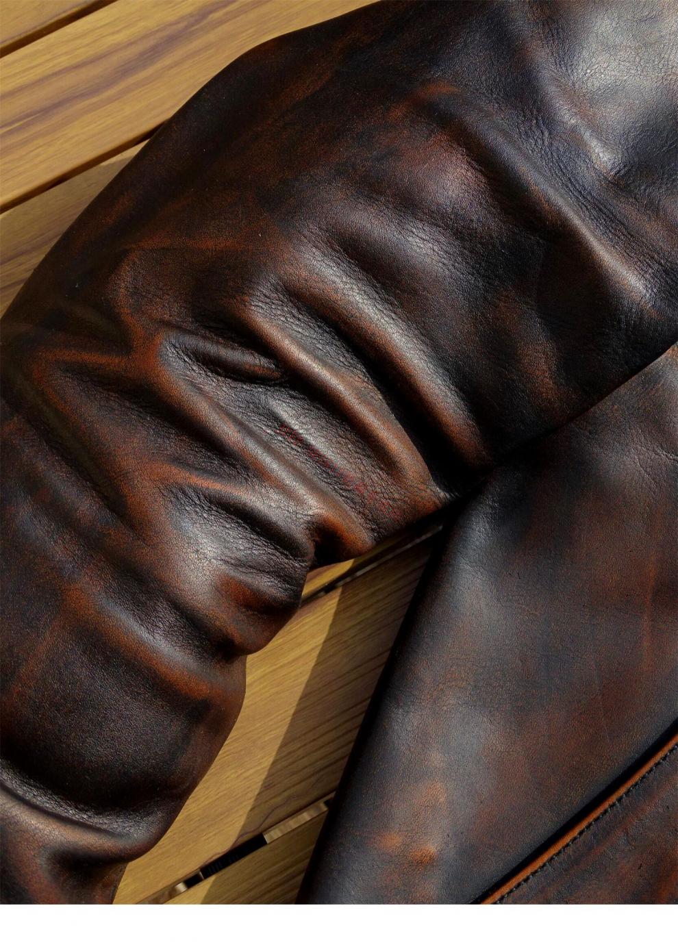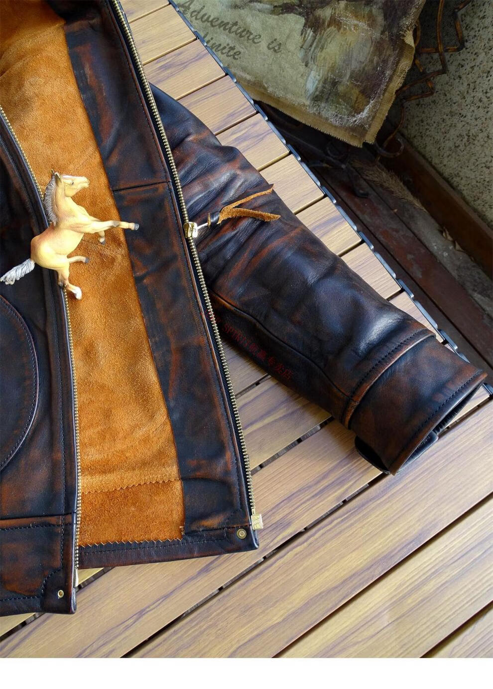JEEP SPIRIT Mendoza Heavy Industry Washed Distressed Horseskin Leather Jacket Retro Workwear Leather Jacket Ami Khaki Genuine Leather Jacket Men Unlined M