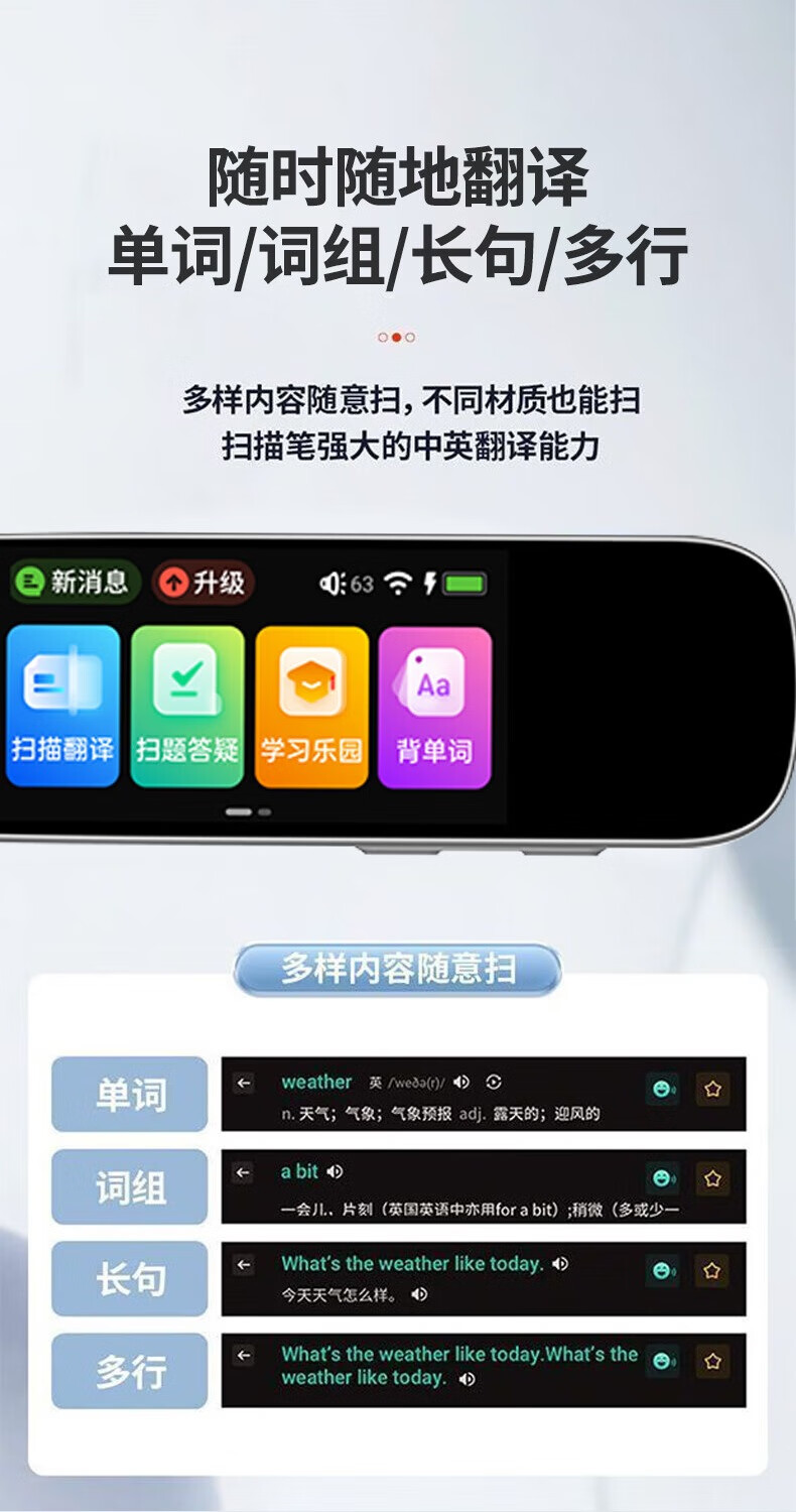 Zhuangyuanlang English reading pen learning artifact primary school and high school full subject synchronized textbook knowledge point dictionary pen translation pen dictionary translator word machine portable Xingyao White S6 speed scanning/multi-national translation/dictation/intelligent question answering