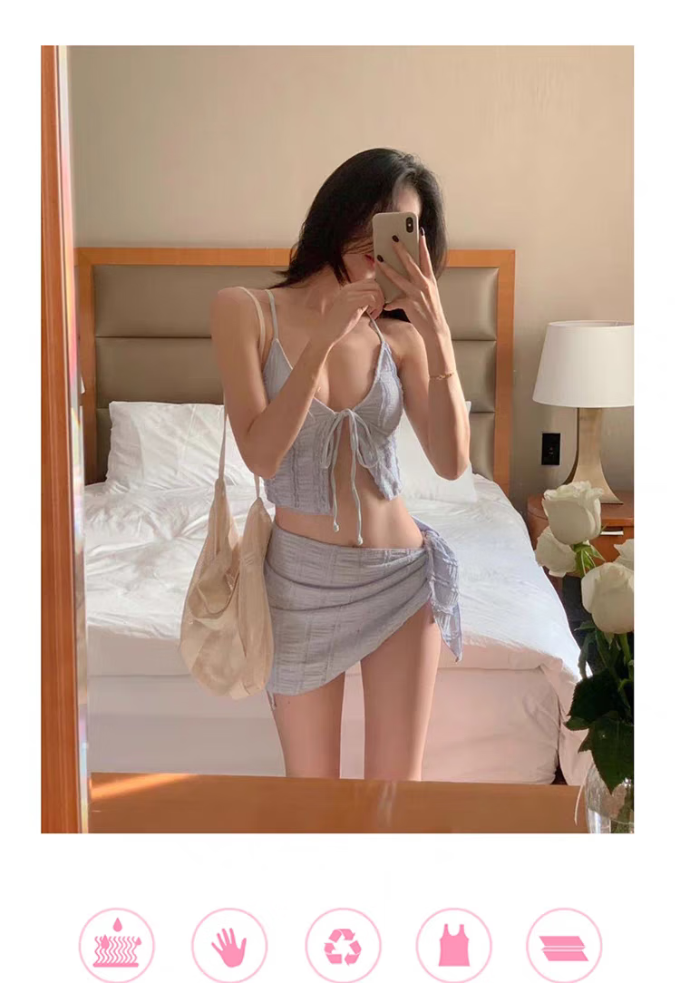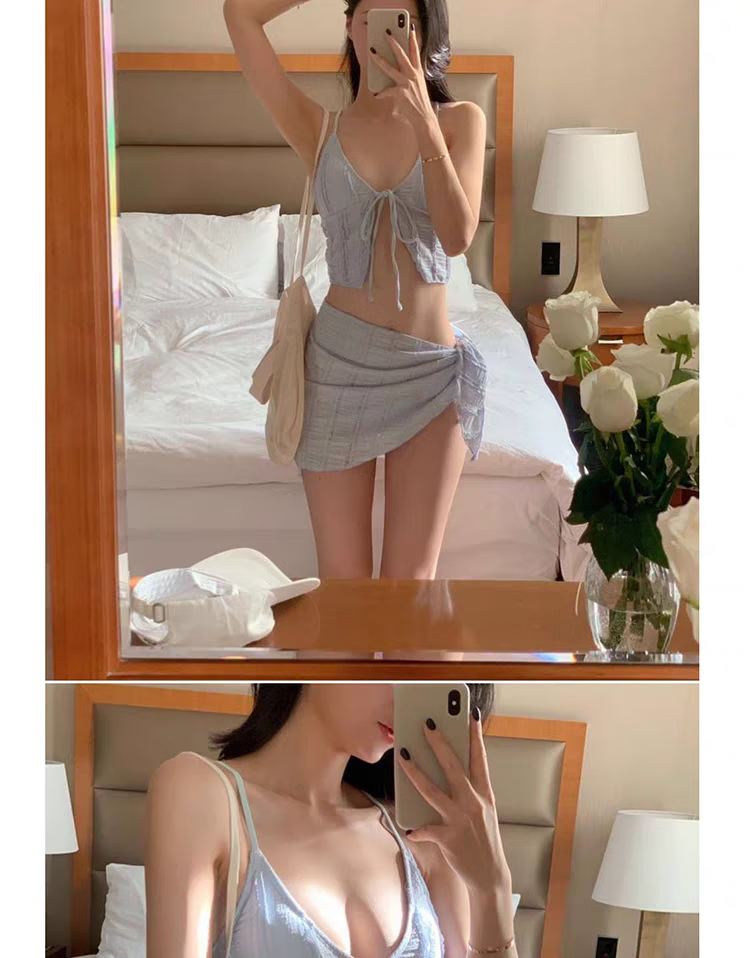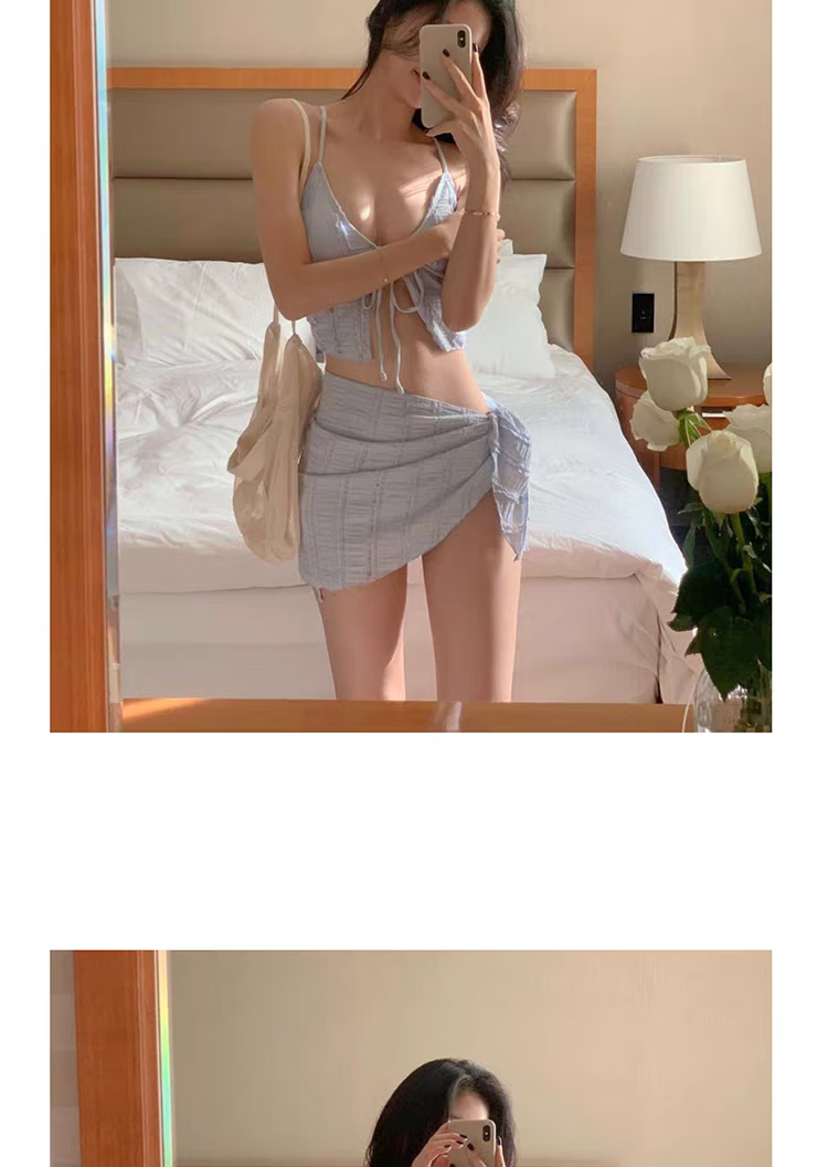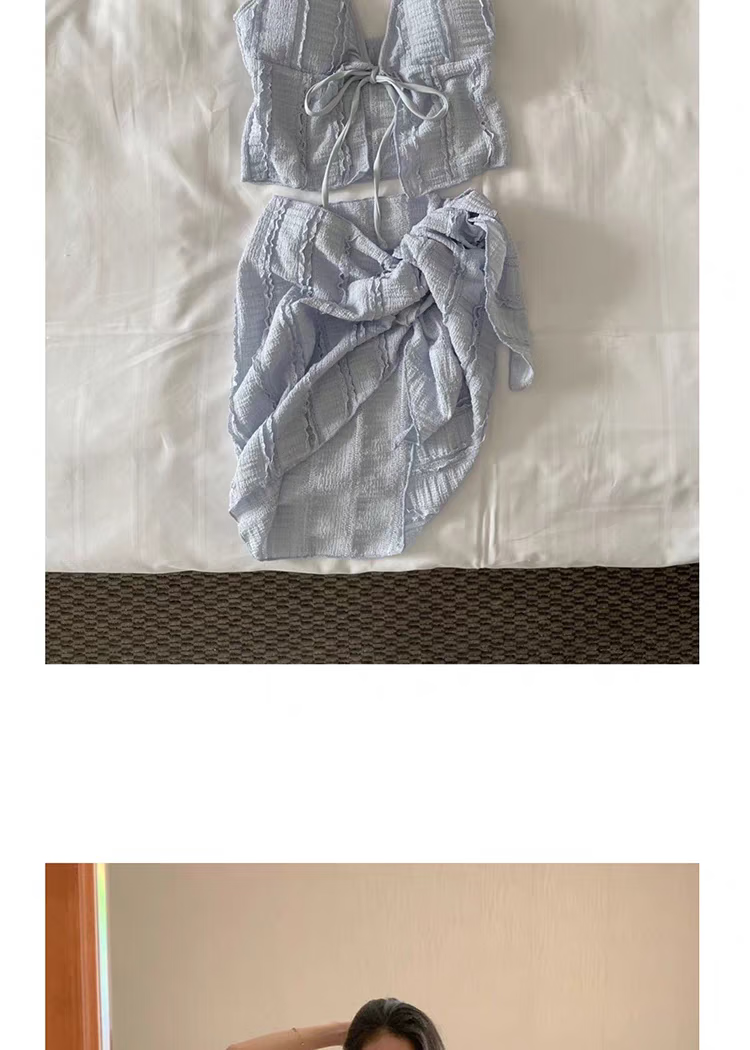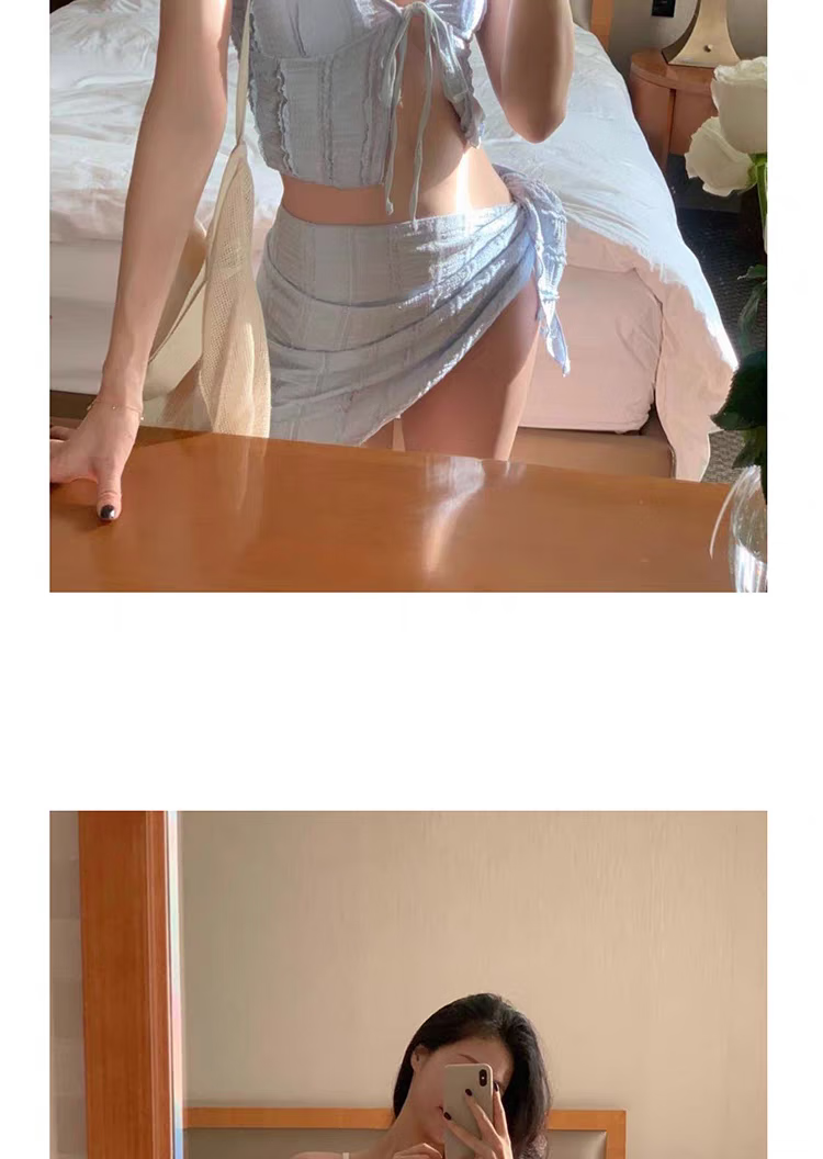 Ono Seven Days Swimsuit Women's Bikini Push Up Resort Hot Spring Sexy High-Level Split Three-Piece Slimming Set Fat Covering Belly Royal Blue Upgraded High-Quality Nylon Fabric L