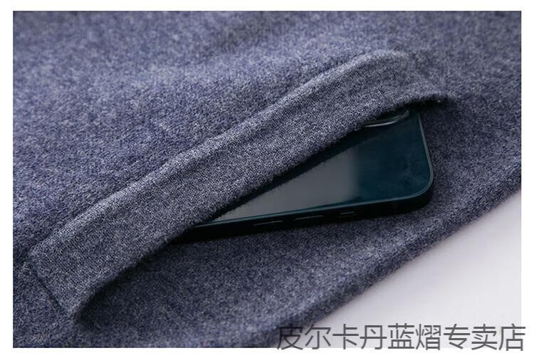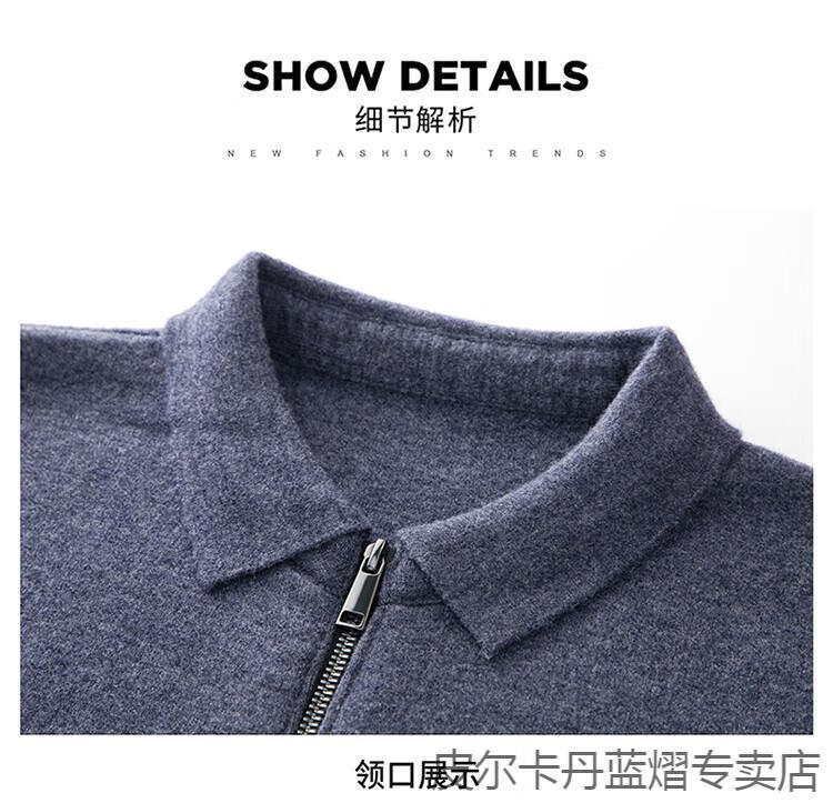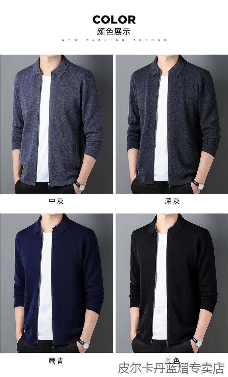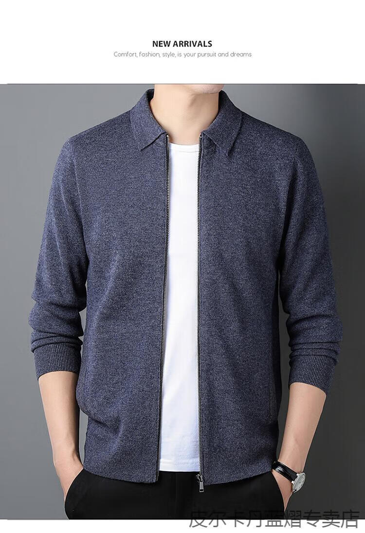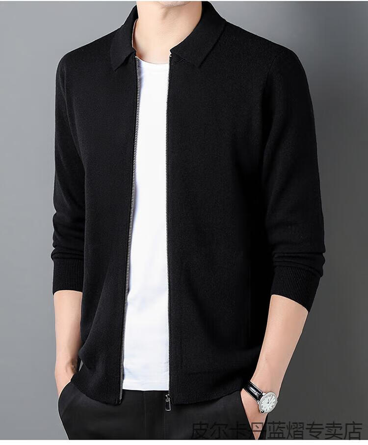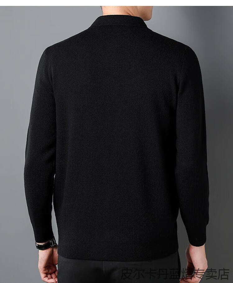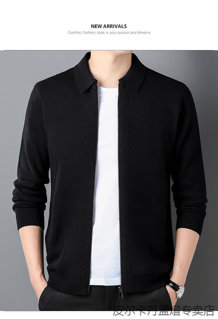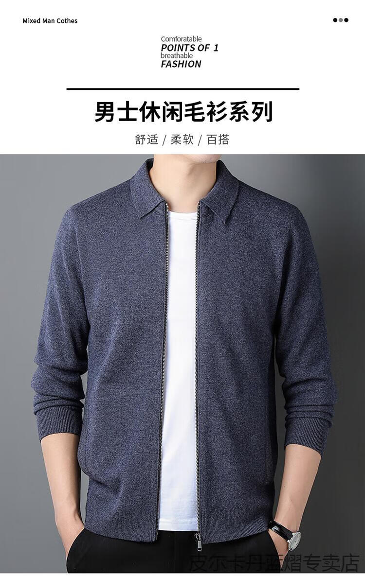 Pierre Cardin 100% pure cashmere sweater men's full zipper cardigan sweater autumn and winter thickened warm lapel sweater jacket navy blue high-end gift box packaging L recommended 120-135 Jin Jin equals 0.5 kg