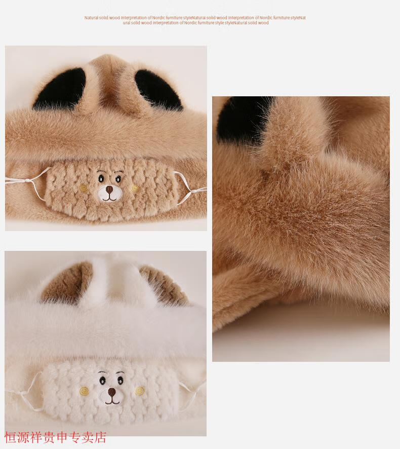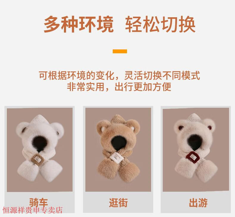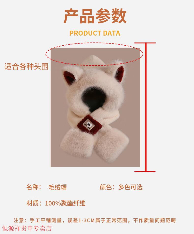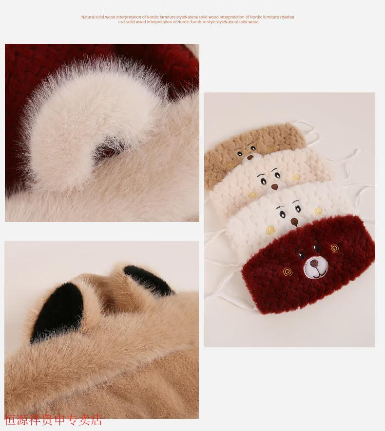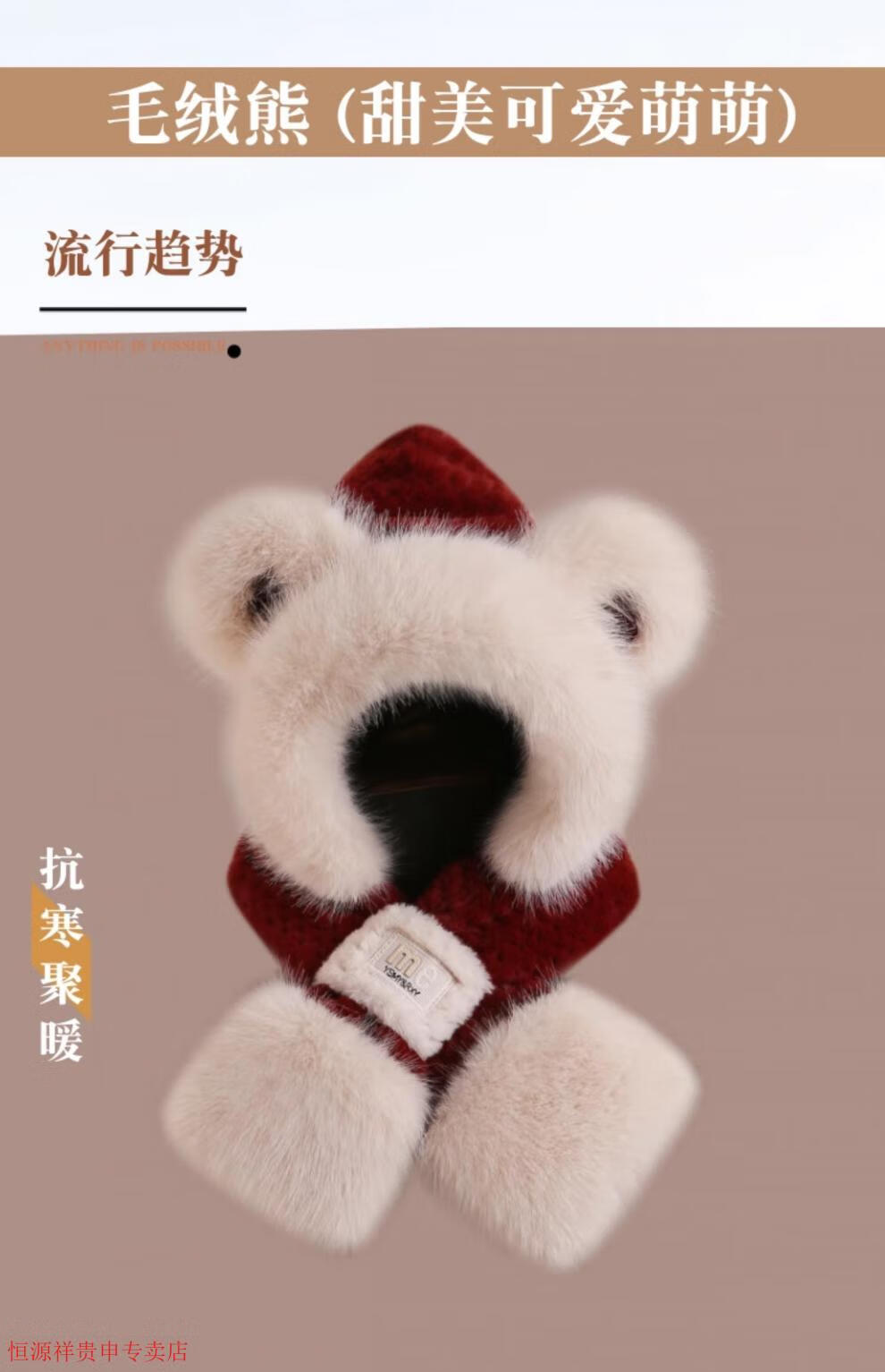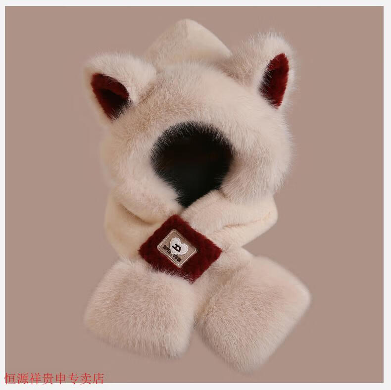 Hengyuanxiang cute bear hat and scarf all-in-one women's winter new thickened headgear, ear protection hat, neck scarf plush hat, Angora red--AN color matching bear hat + mask, one size fits all head sizes