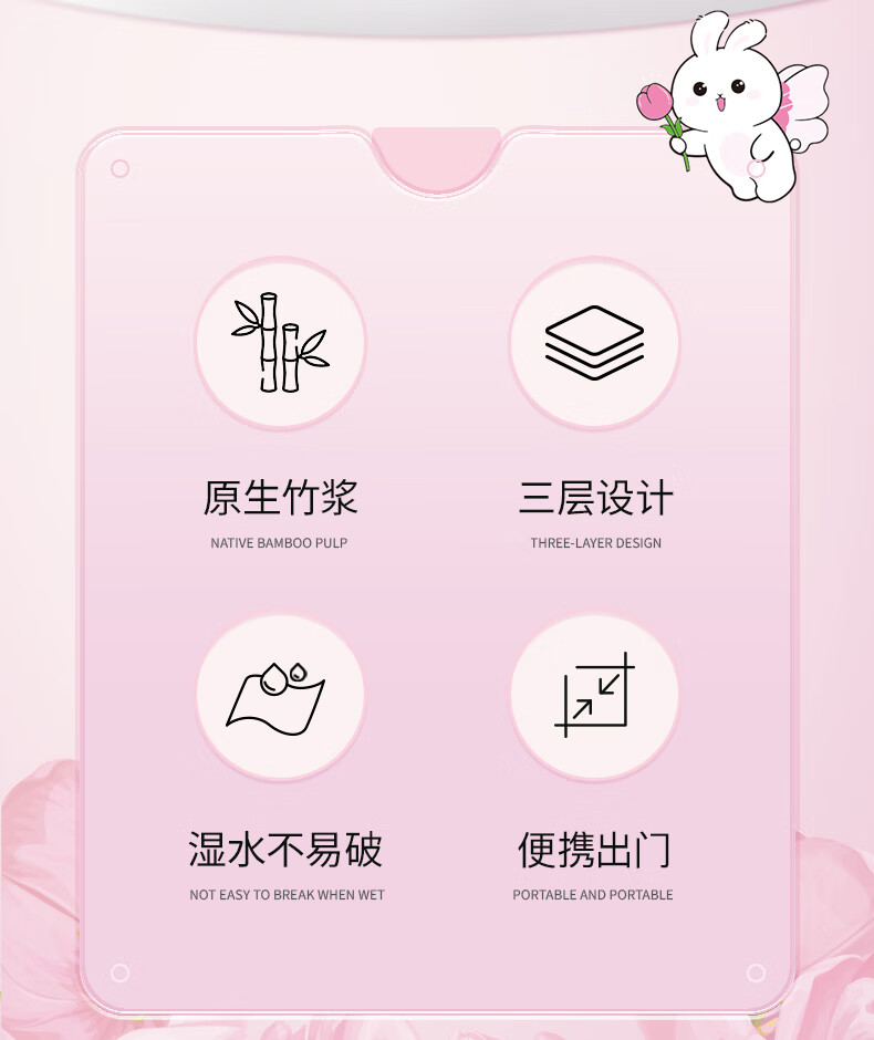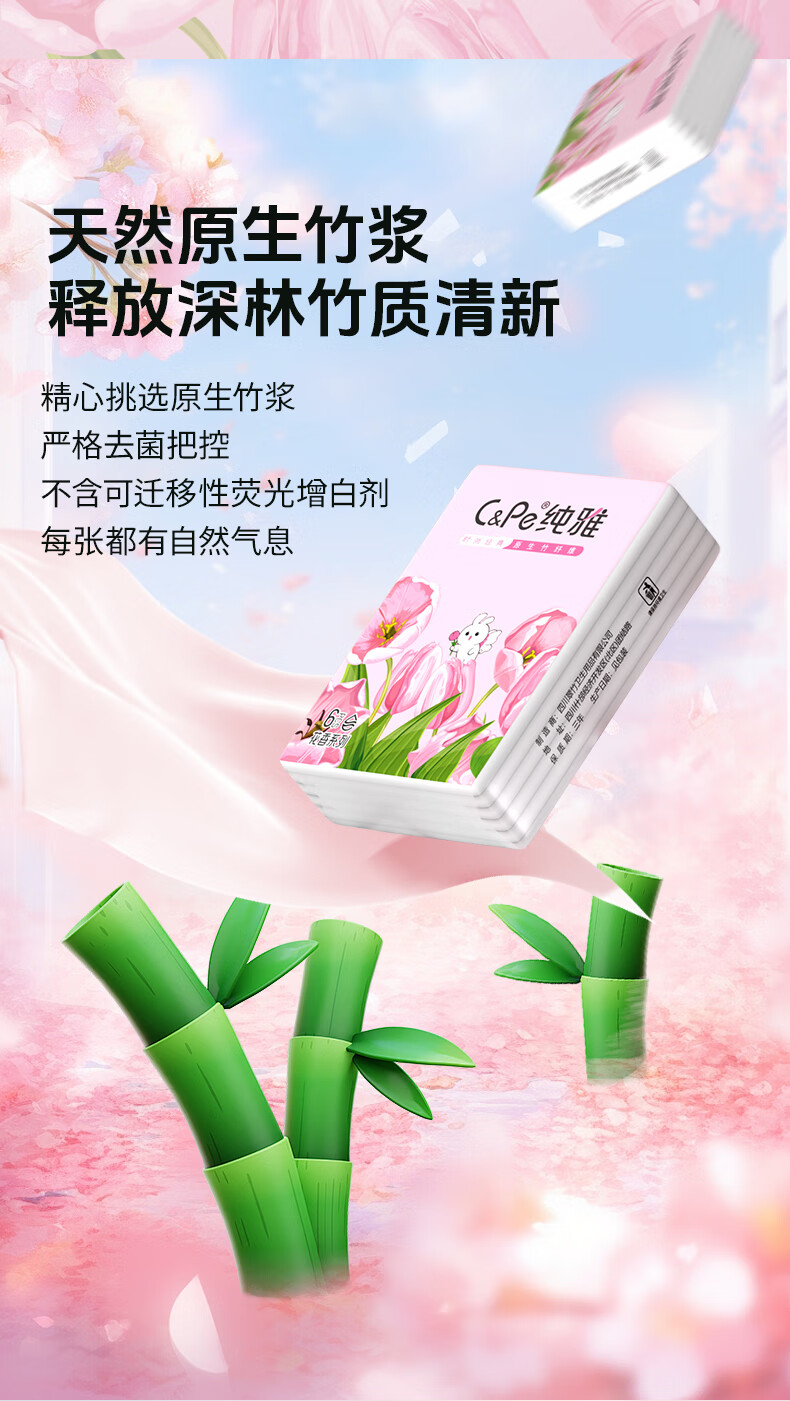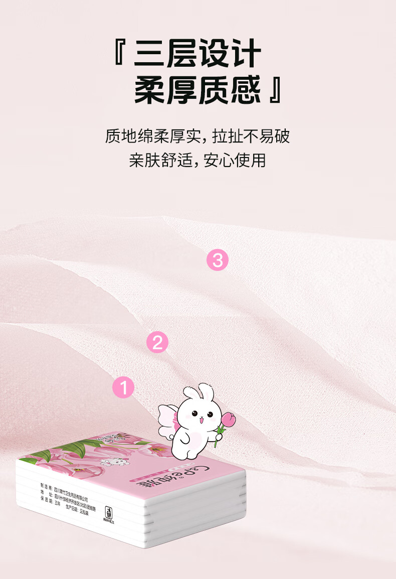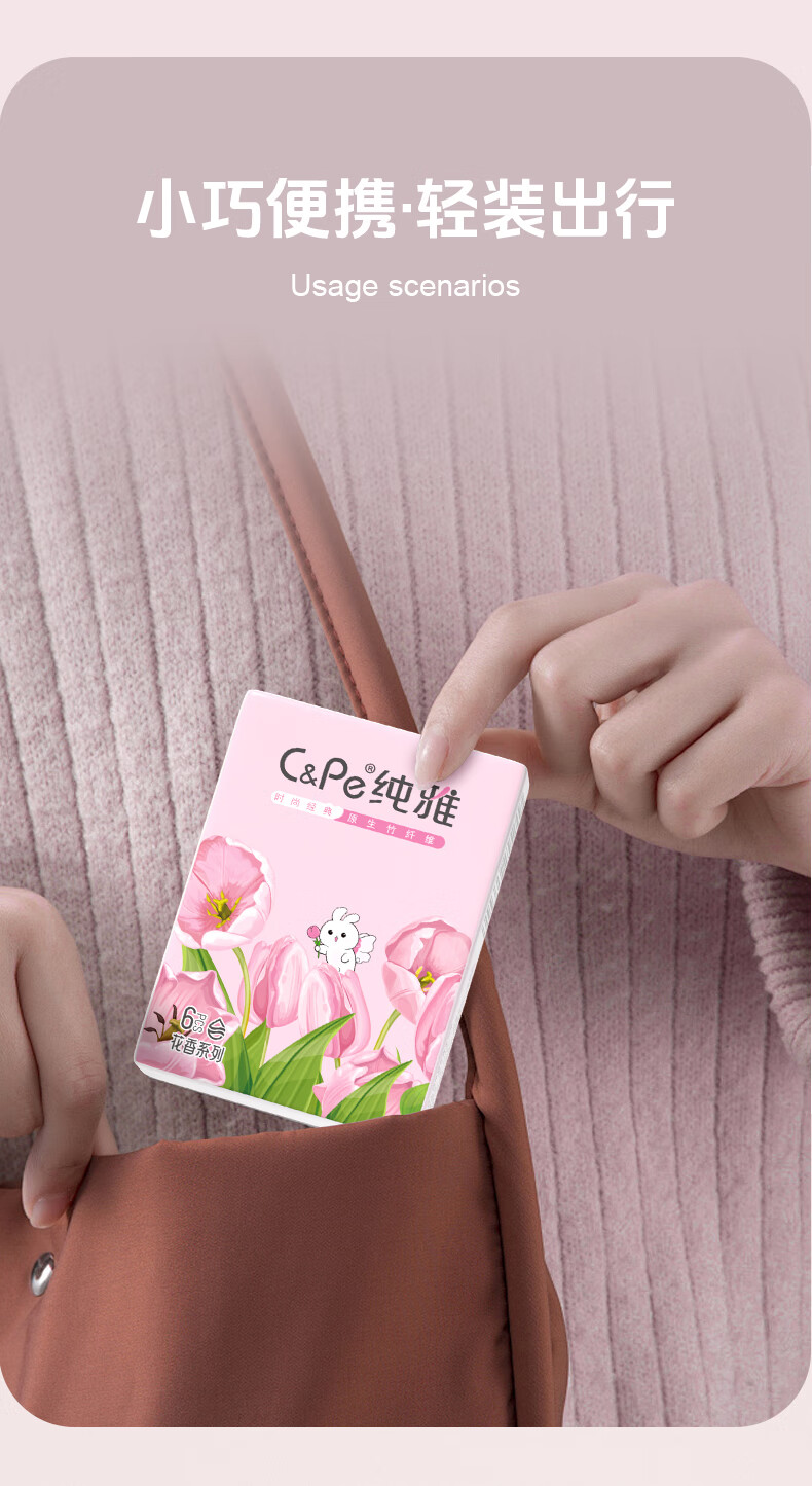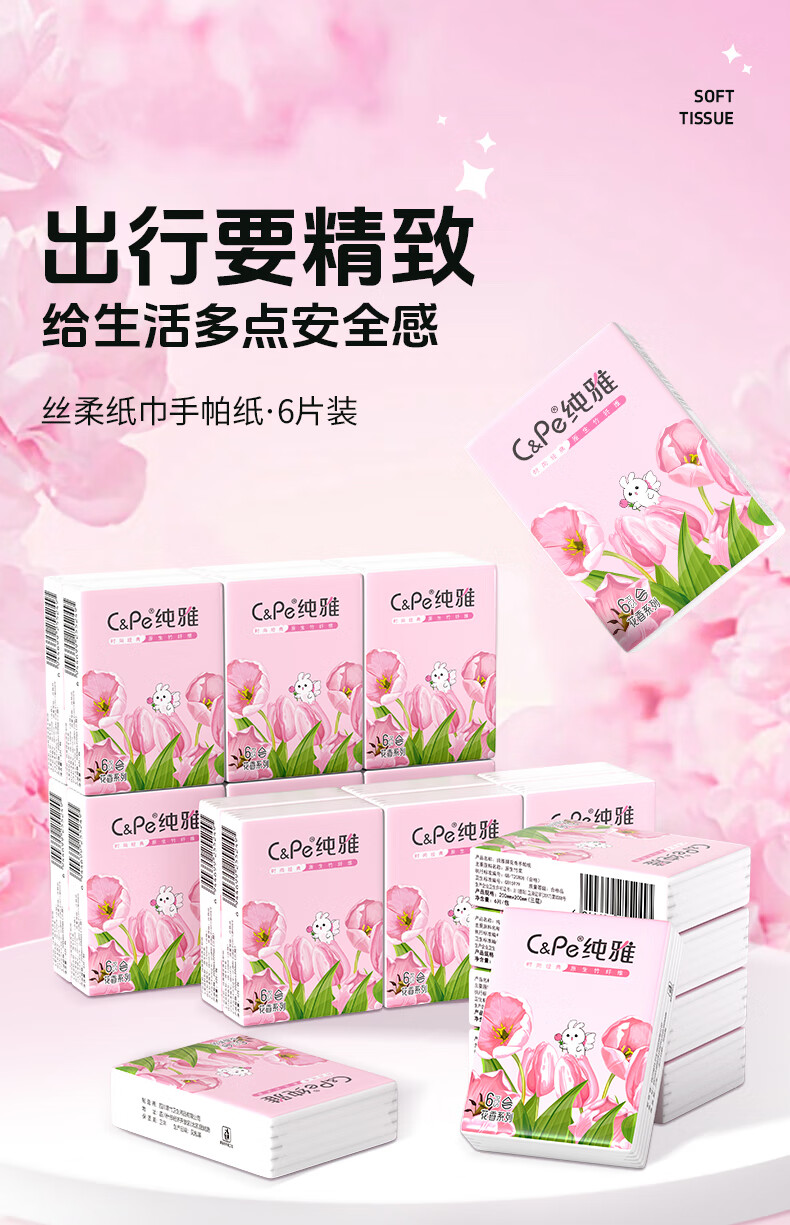 Chunya Tutu handkerchief paper small pack tissue paper bamboo pulp toilet paper mother and baby portable flexible napkin facial tissue 3 layers 6 pieces * 10 pack