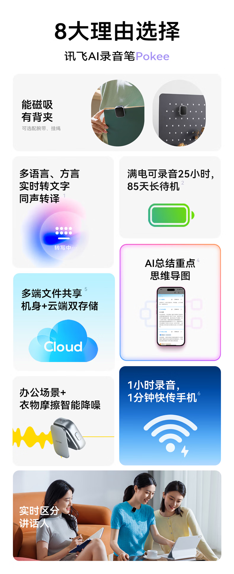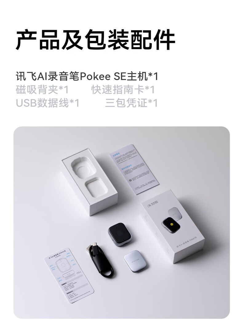 IFLYTEK AI Recording Pen Pokee/Pokee SE multi-lingual transliteration meeting recording to text translation Portable magnetically attached back clip Fast charging 85 days long standby New product launch AI Recording Pen Pokee